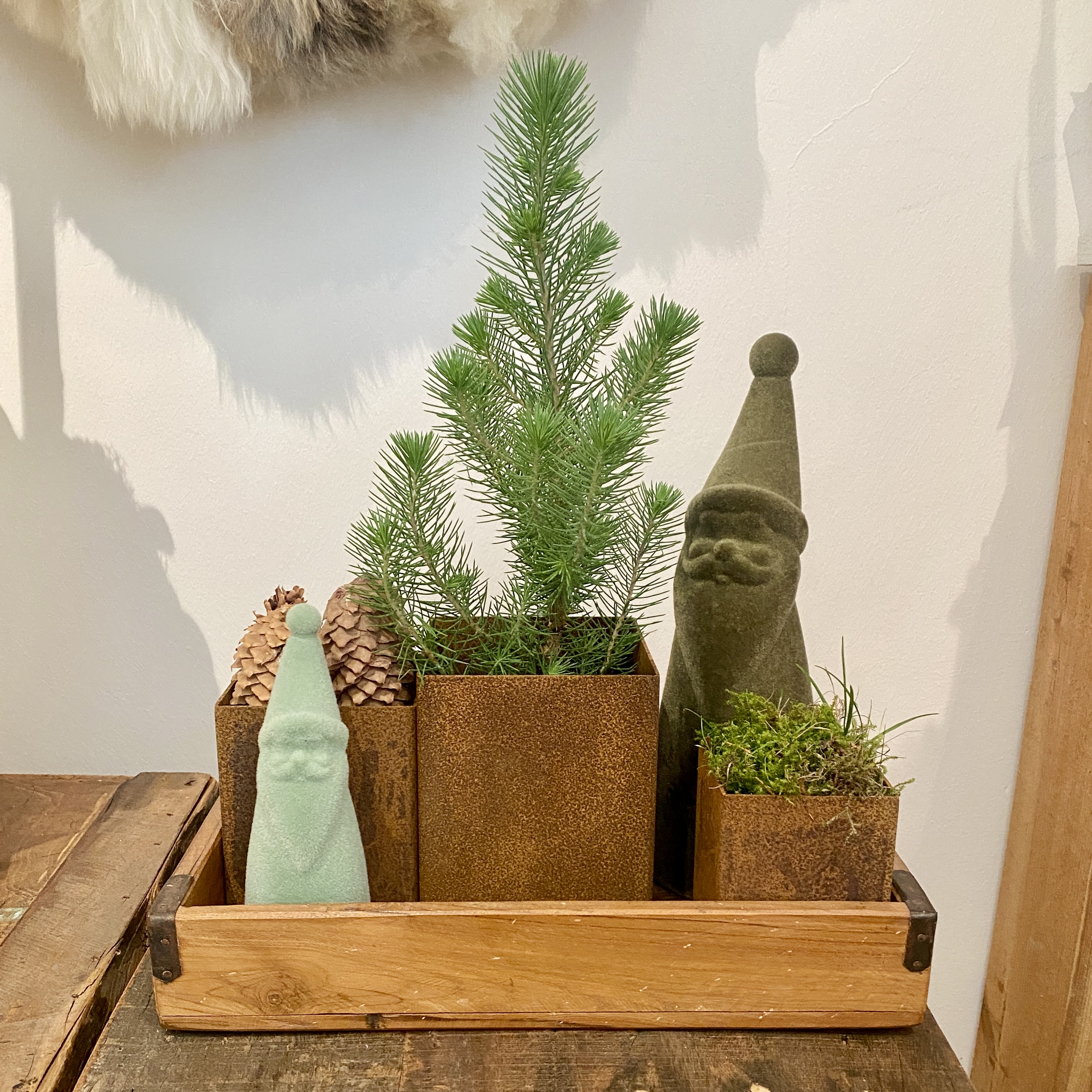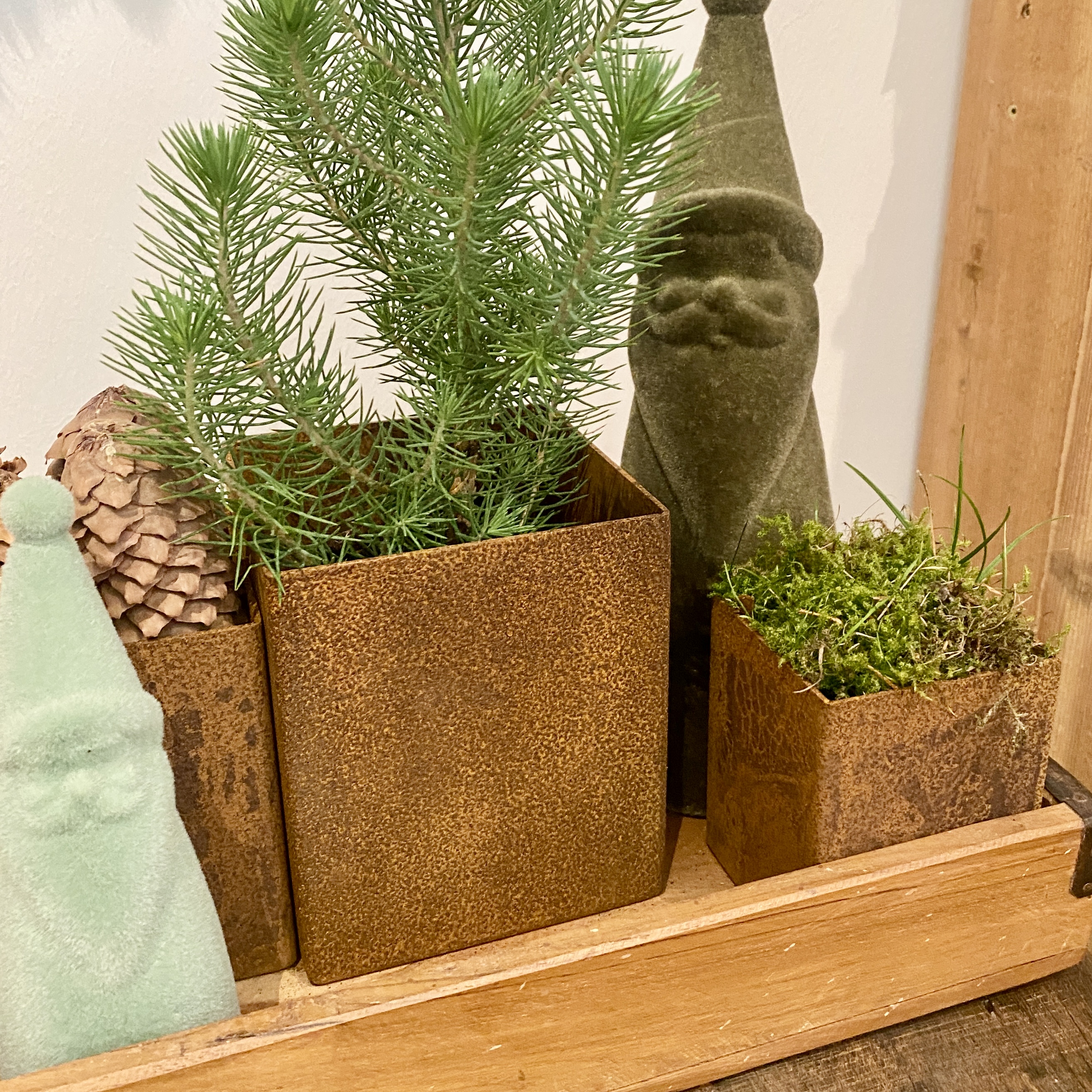3teiliges Set rostige Eisenpflanzgefäße kubisch