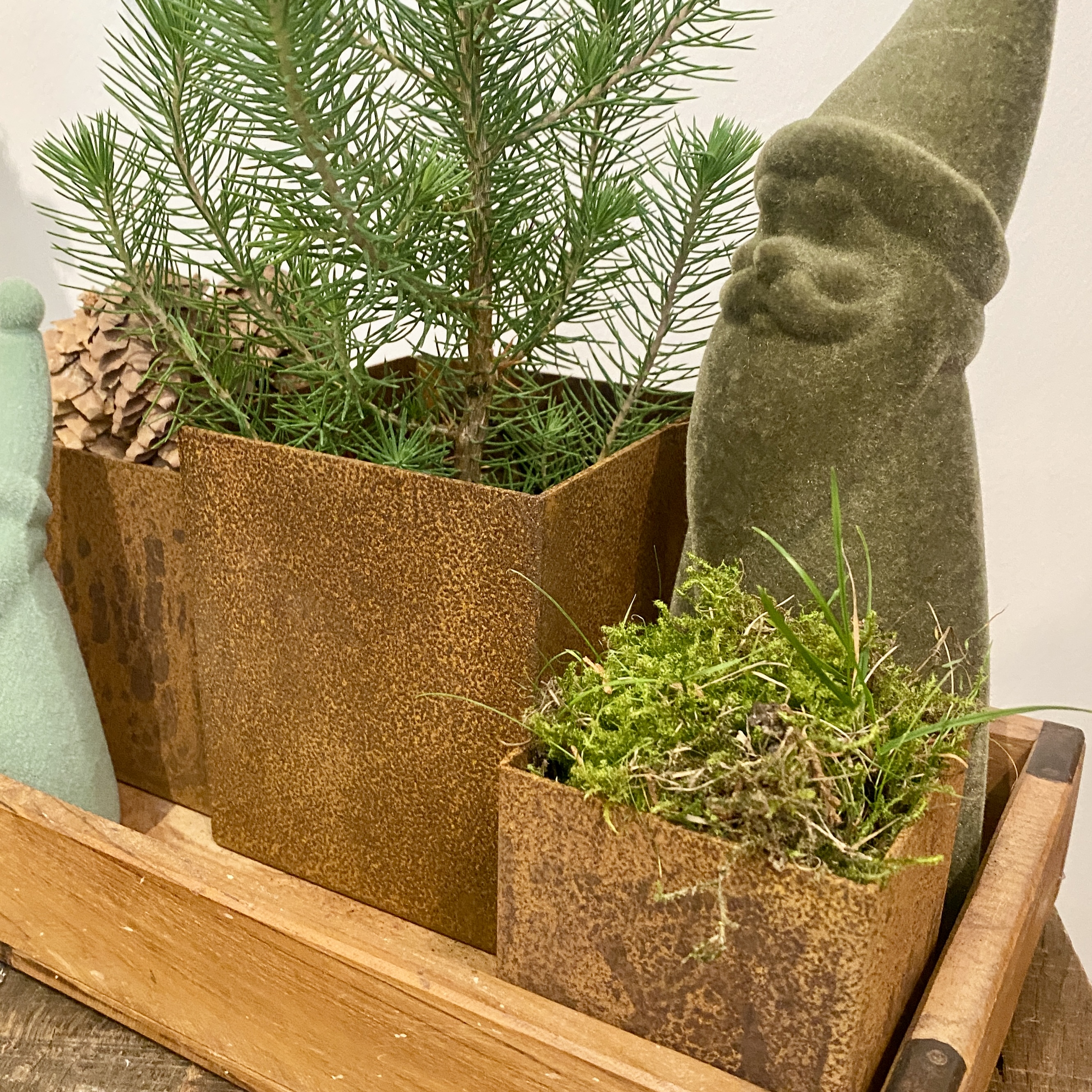 3teiliges Set Pflanzgefäße, rostig und schwer, handgearbeitet, Made in Germany, für draußen geeignet, wetterbeständig und hält jedem Wind stand.