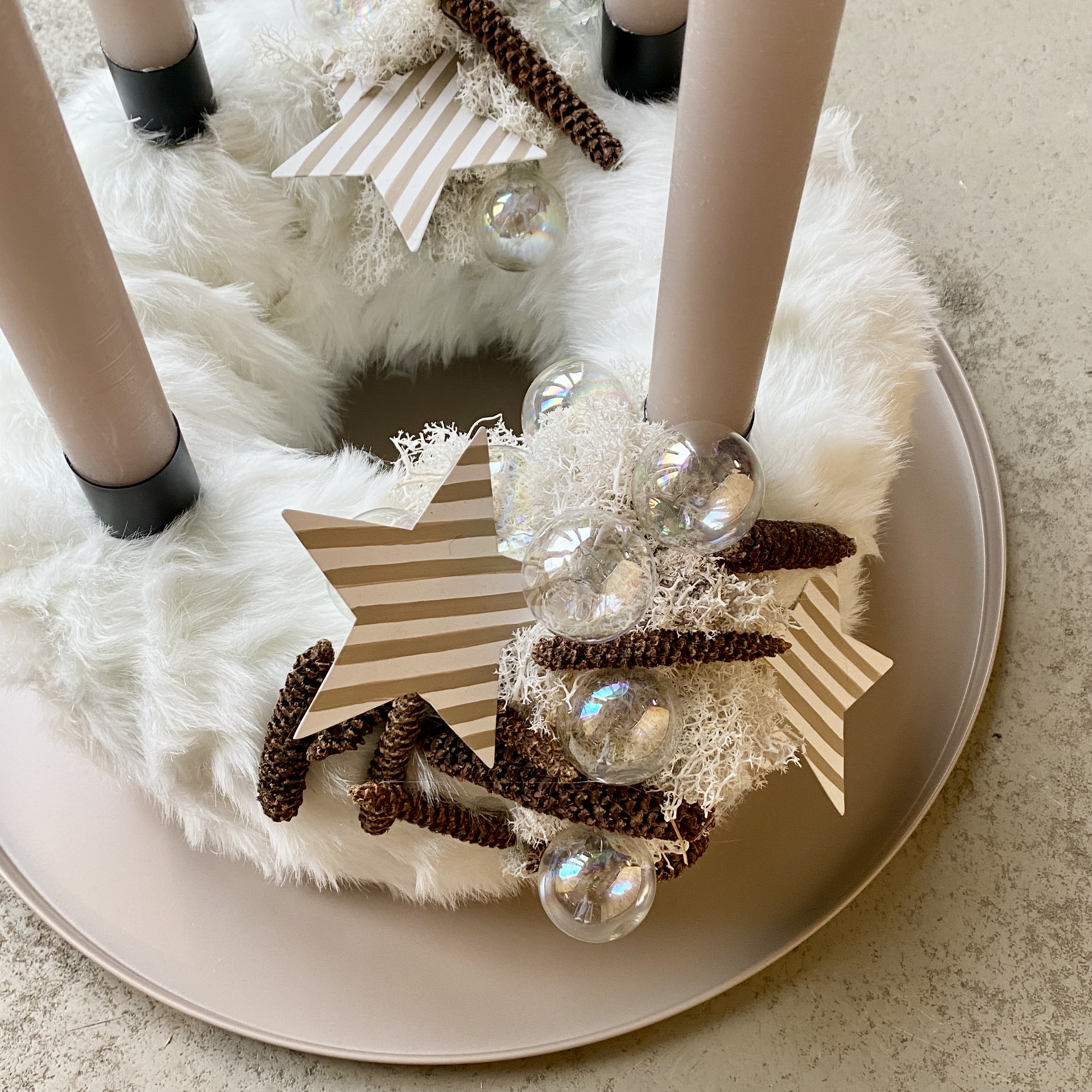 Adventskranz "Streifensterne" mit vier Kerzen D40cm, weiß/taupe/natur/klar