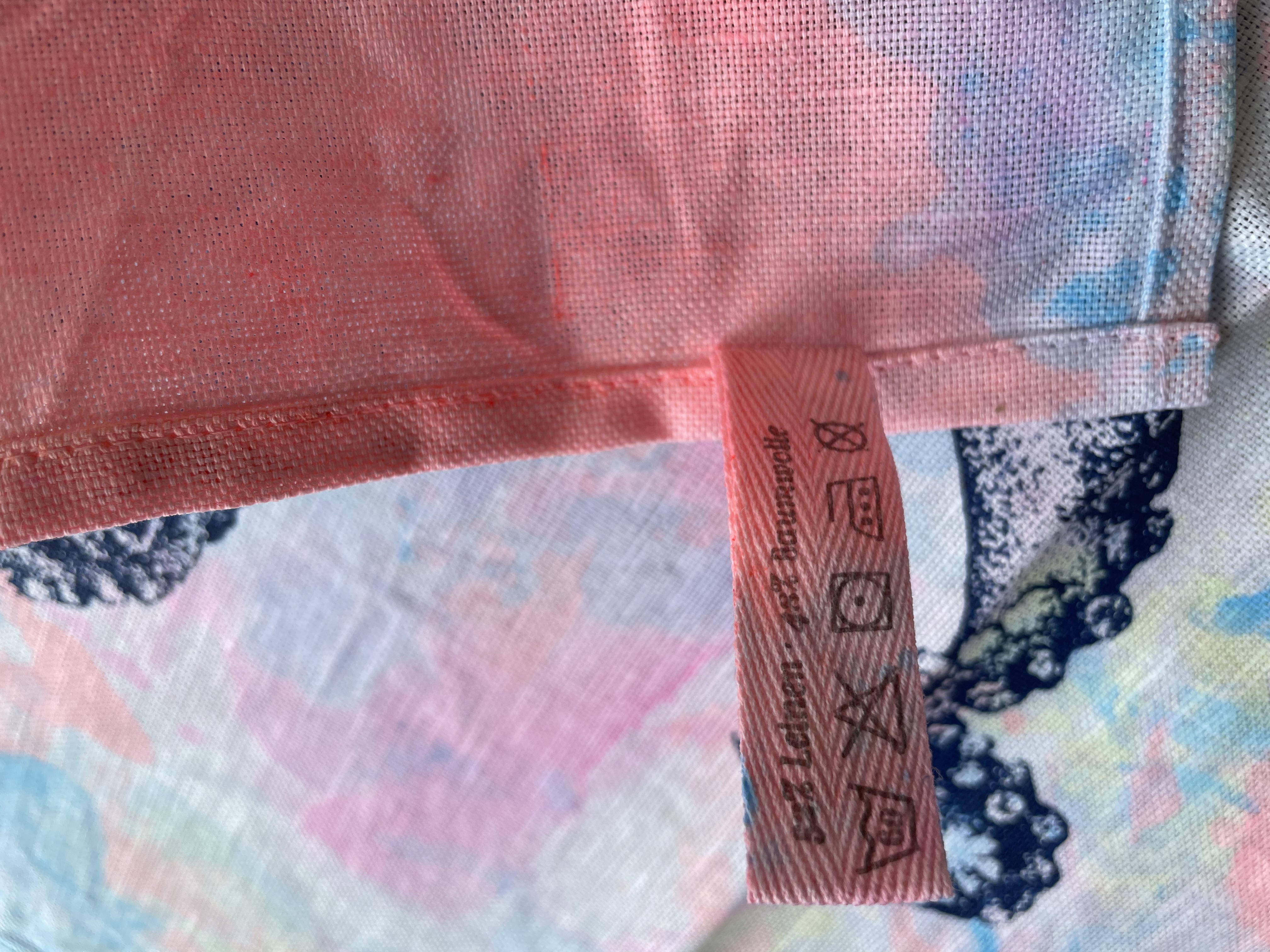 Atelier-Geschirrtuch in Handarbeit bedruckt, regional aus Hamburg. Kann auch als Mitteldecke verwendet werden. Jedes Tuch ein Unikat mit unterschiedlichen Farbverläufen.