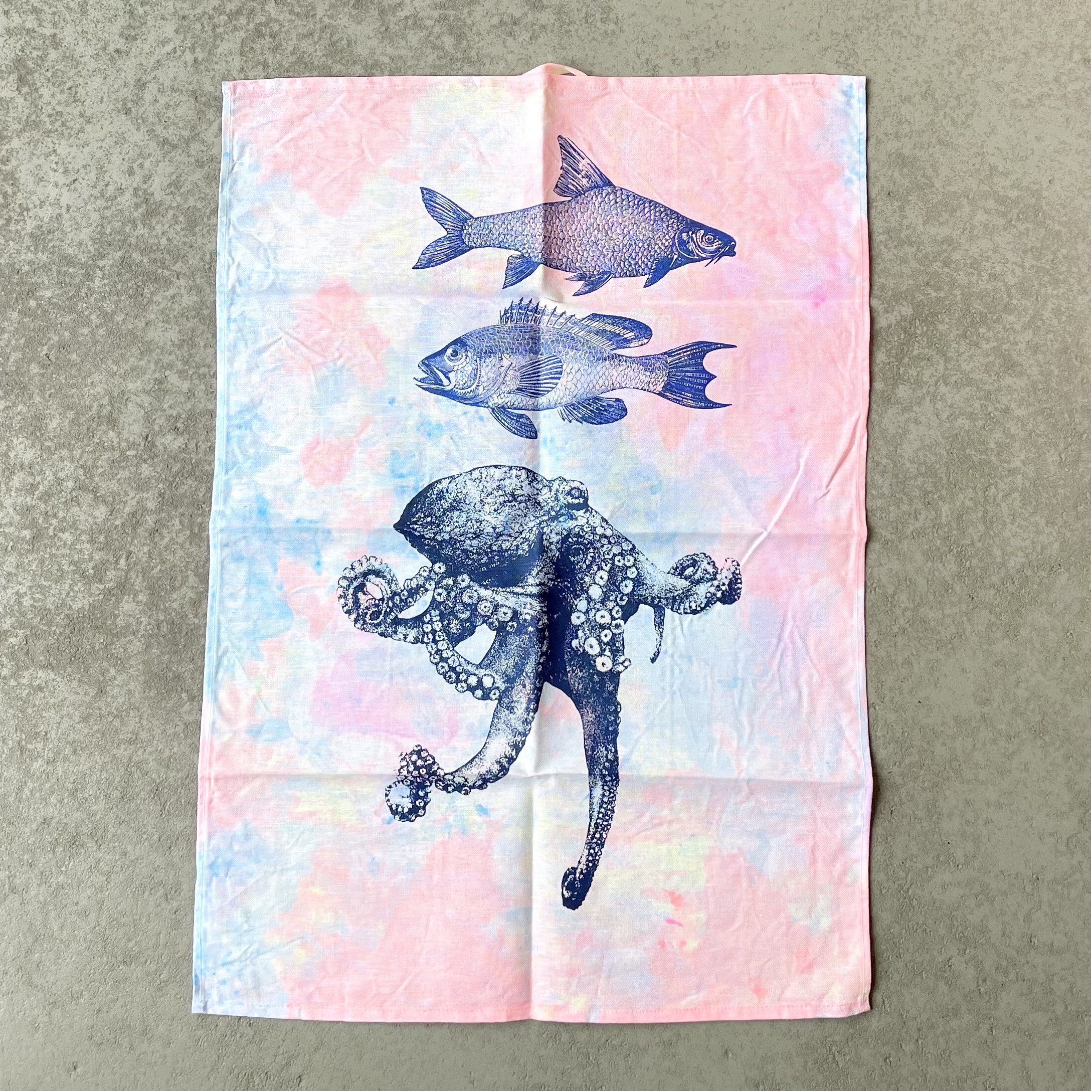 Atelier-Geschirrtuch "Oktopus + Fische" blau/multicolor