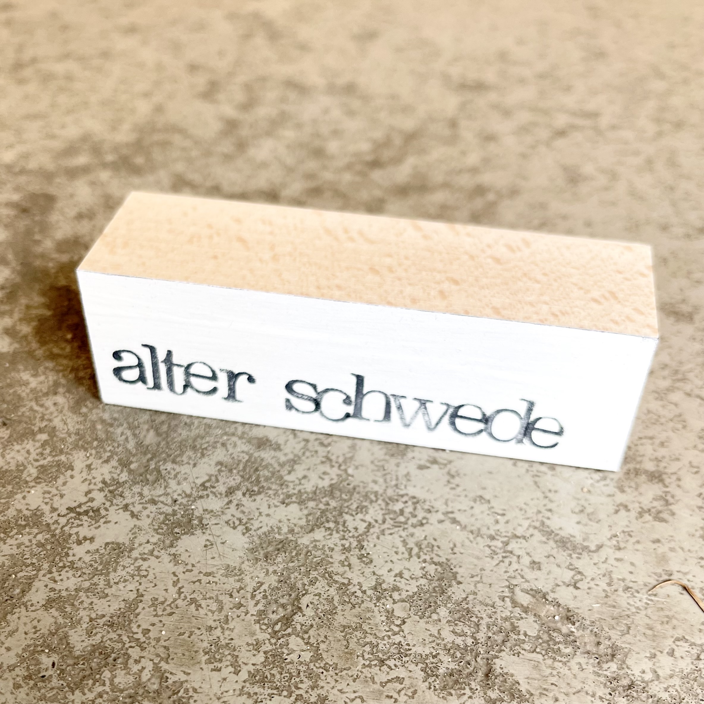 Diese kleinen Holzbausteine mit Schriftzug, sind in Werkstücken ein aussagekräftiger Eycatcher,