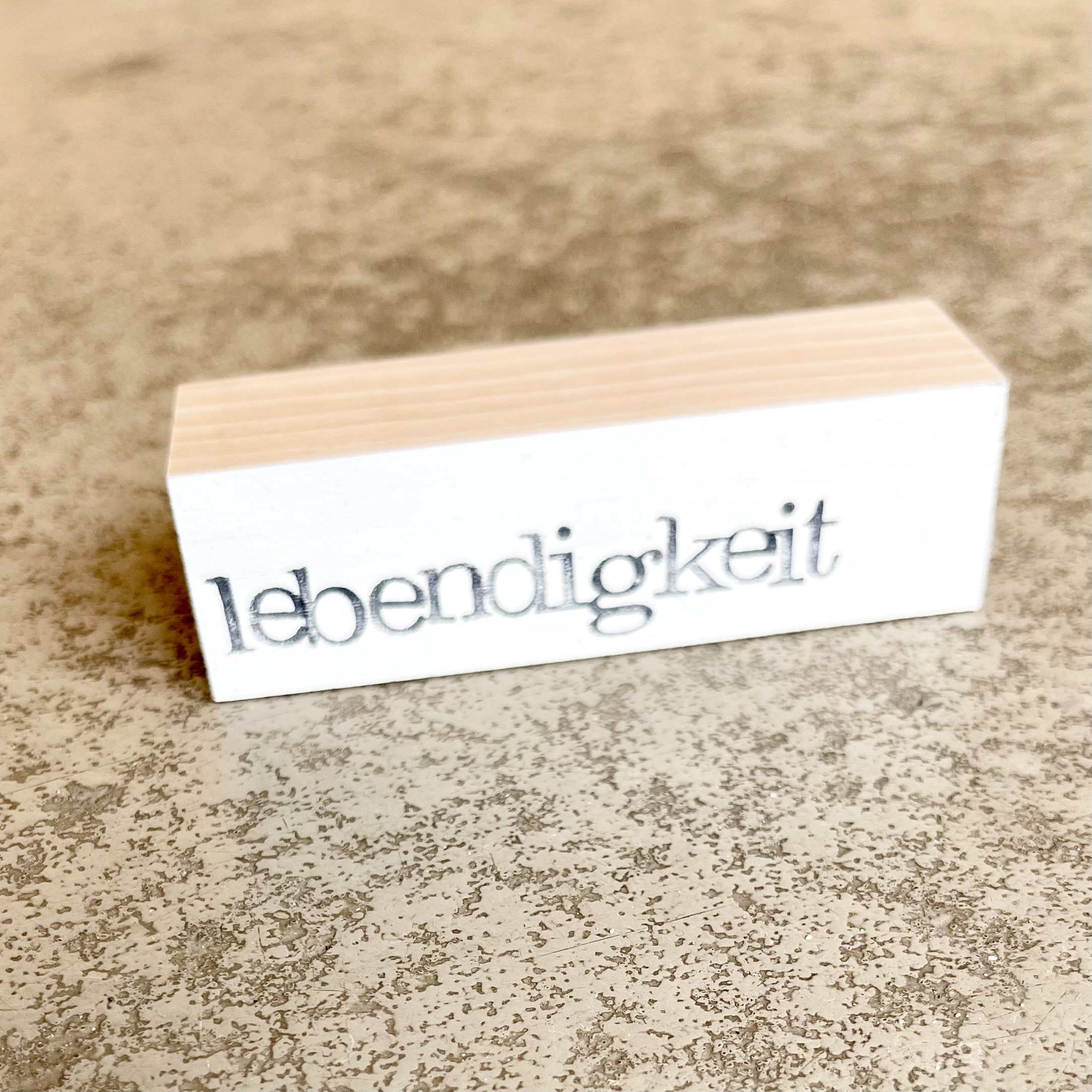 Diese kleinen Holzbausteine mit Schriftzug, sind in Werkstücken ein aussagekräftiger Eycatcher,