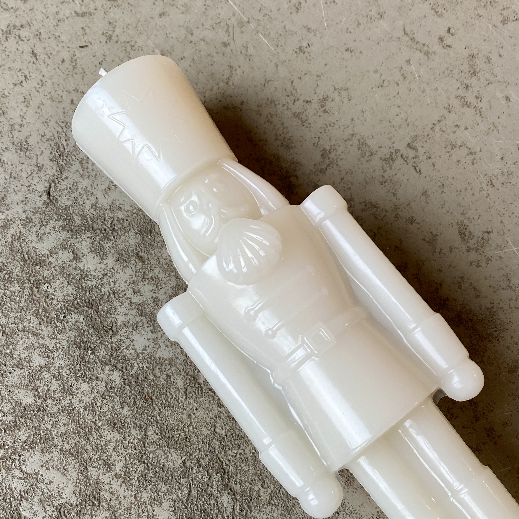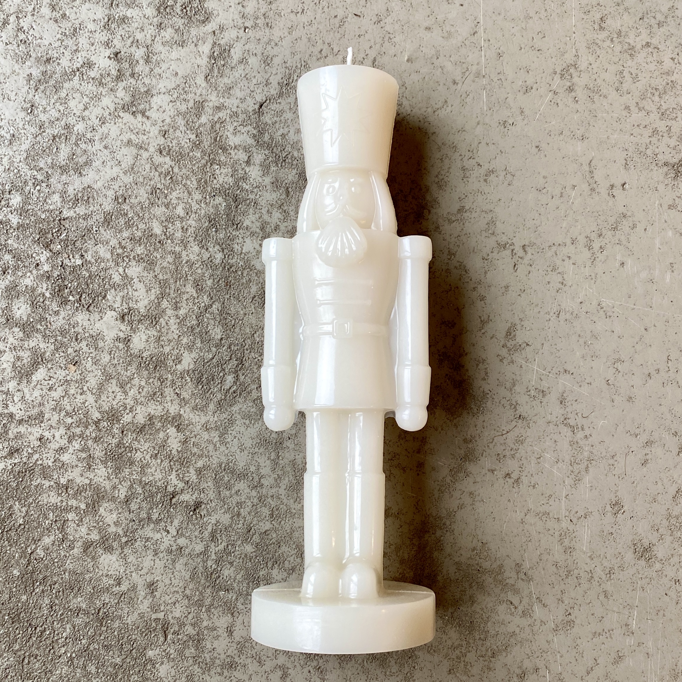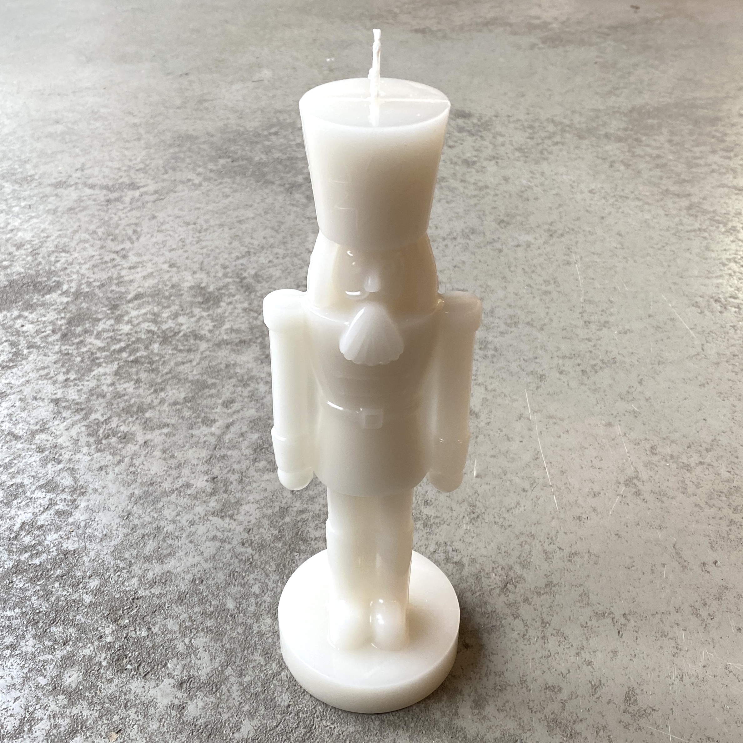 Nussknacker-Kerze in Beige. Die Kerze ist 28cm hoch.