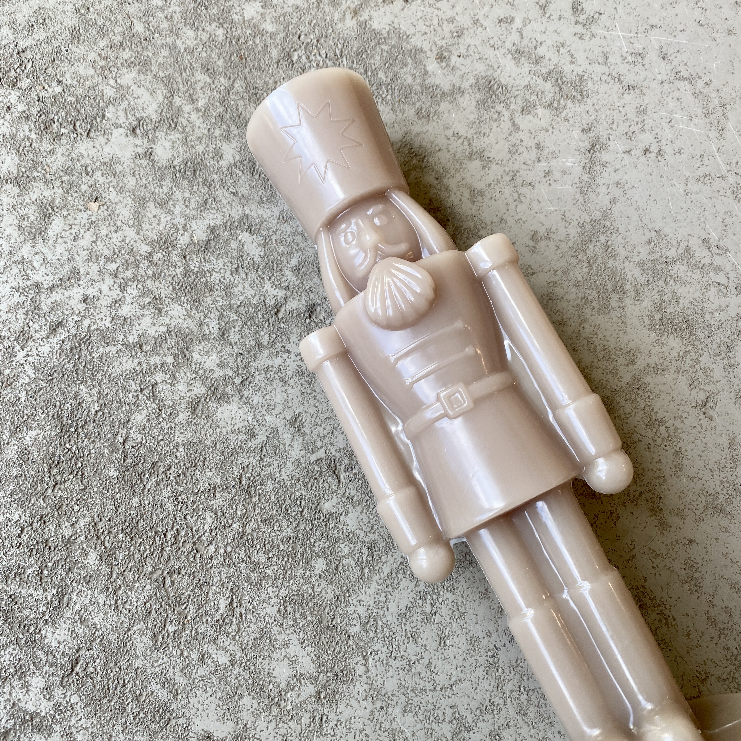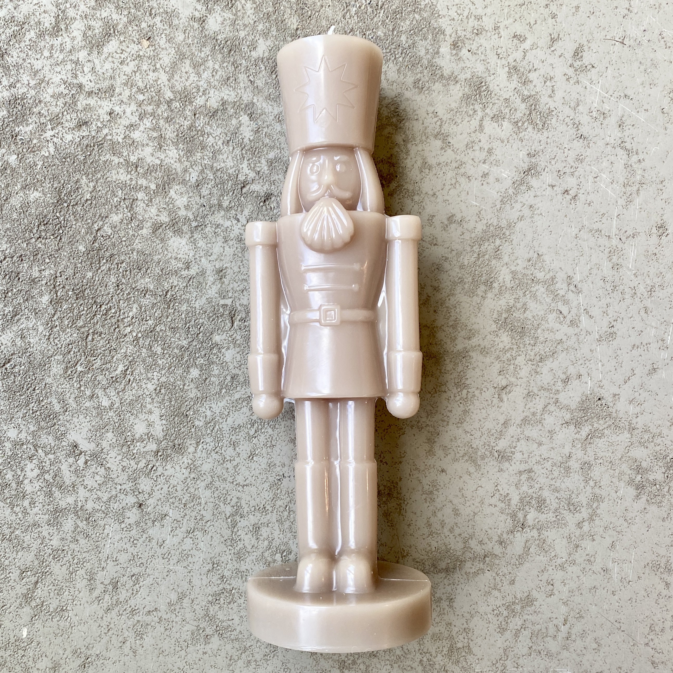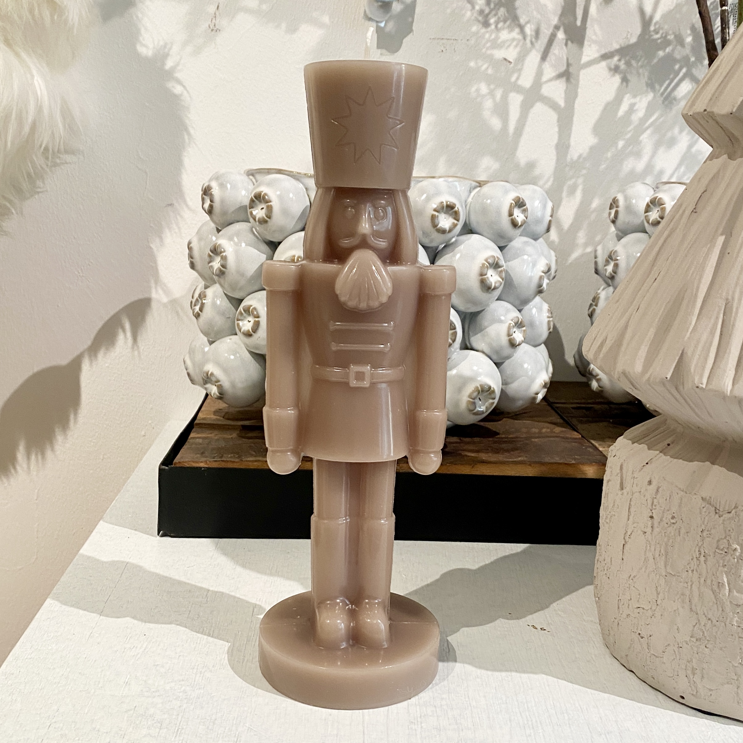 Nussknacker-Kerze in Taupe. Die Kerze ist 28cm hoch.