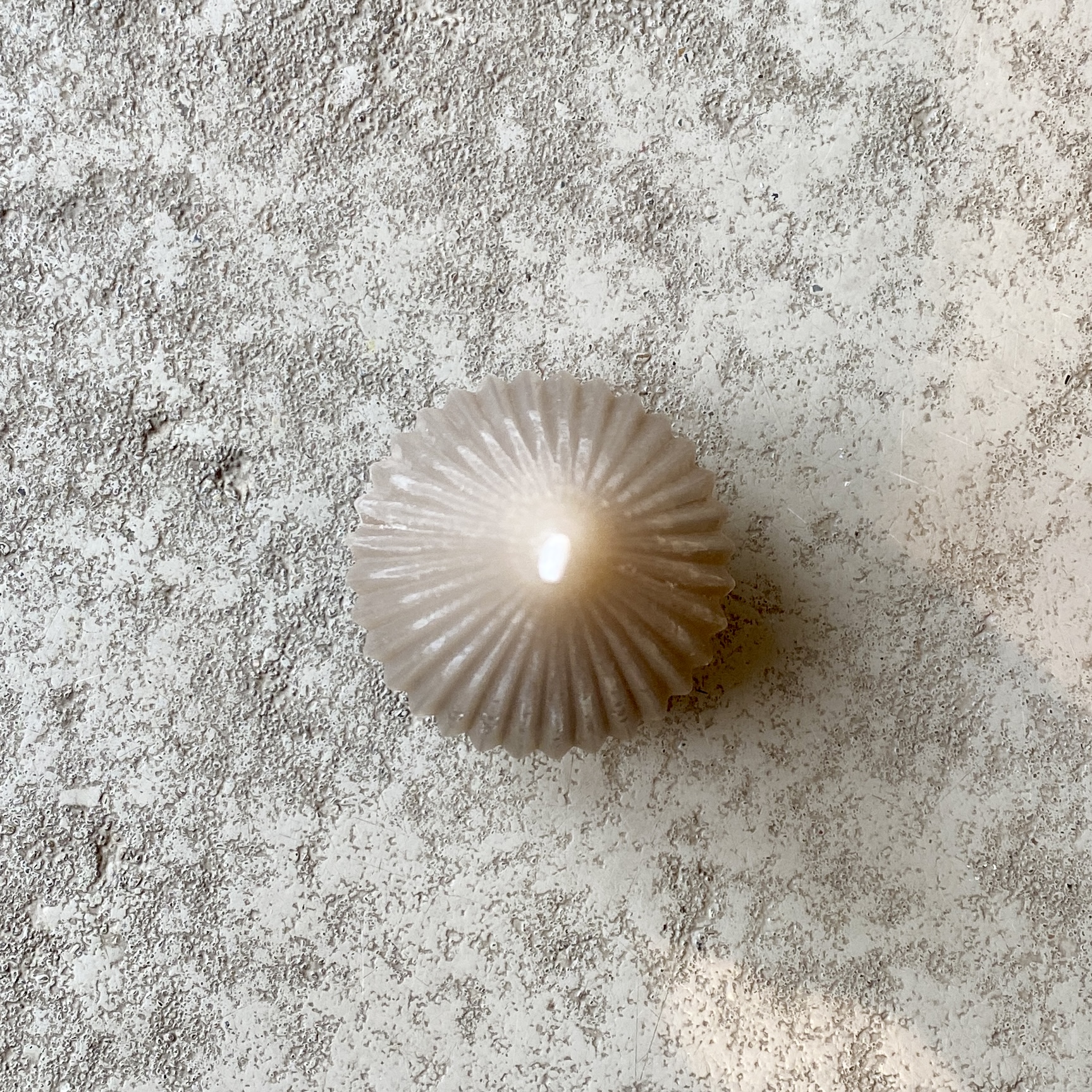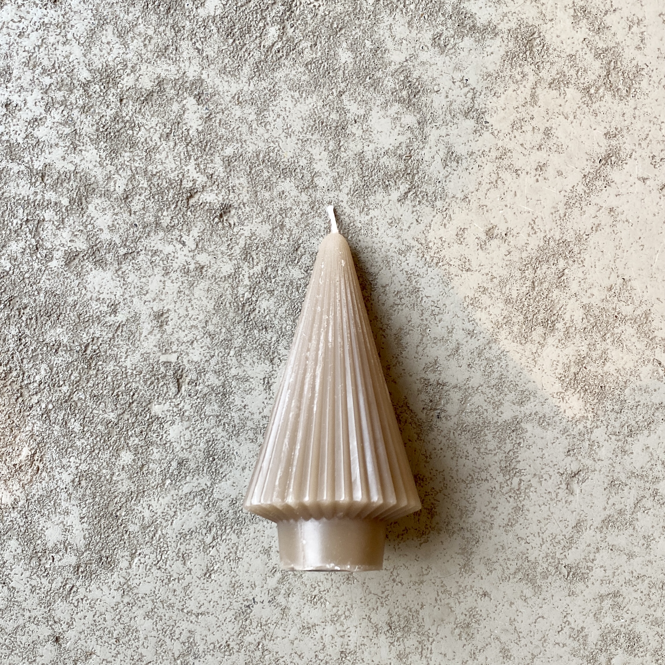 Kleine Deko-Kerze Tree Stripe 12cm hoch in Taupe.
