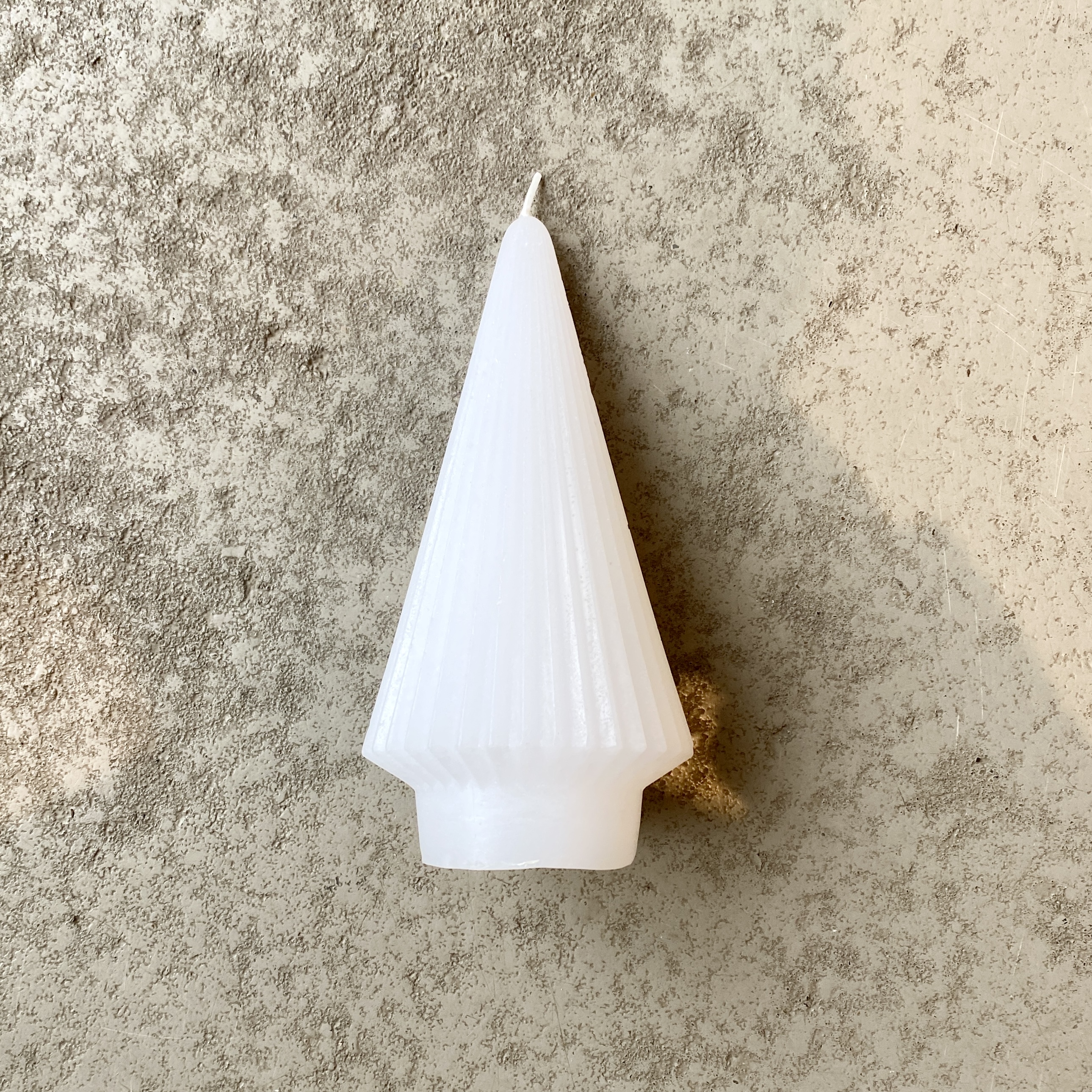 Deko-Kerze Tree Stripe 18cm hoch in Weiß.