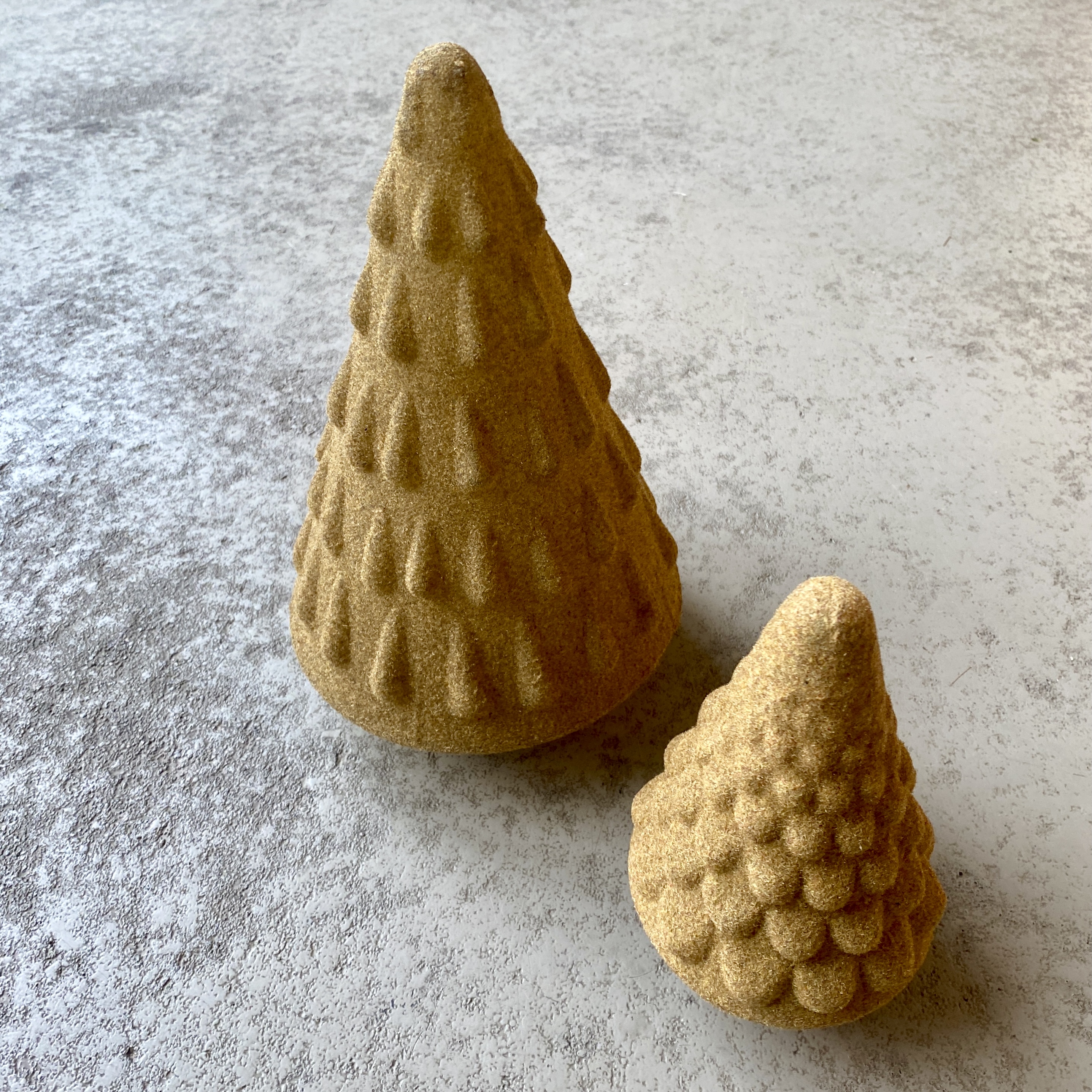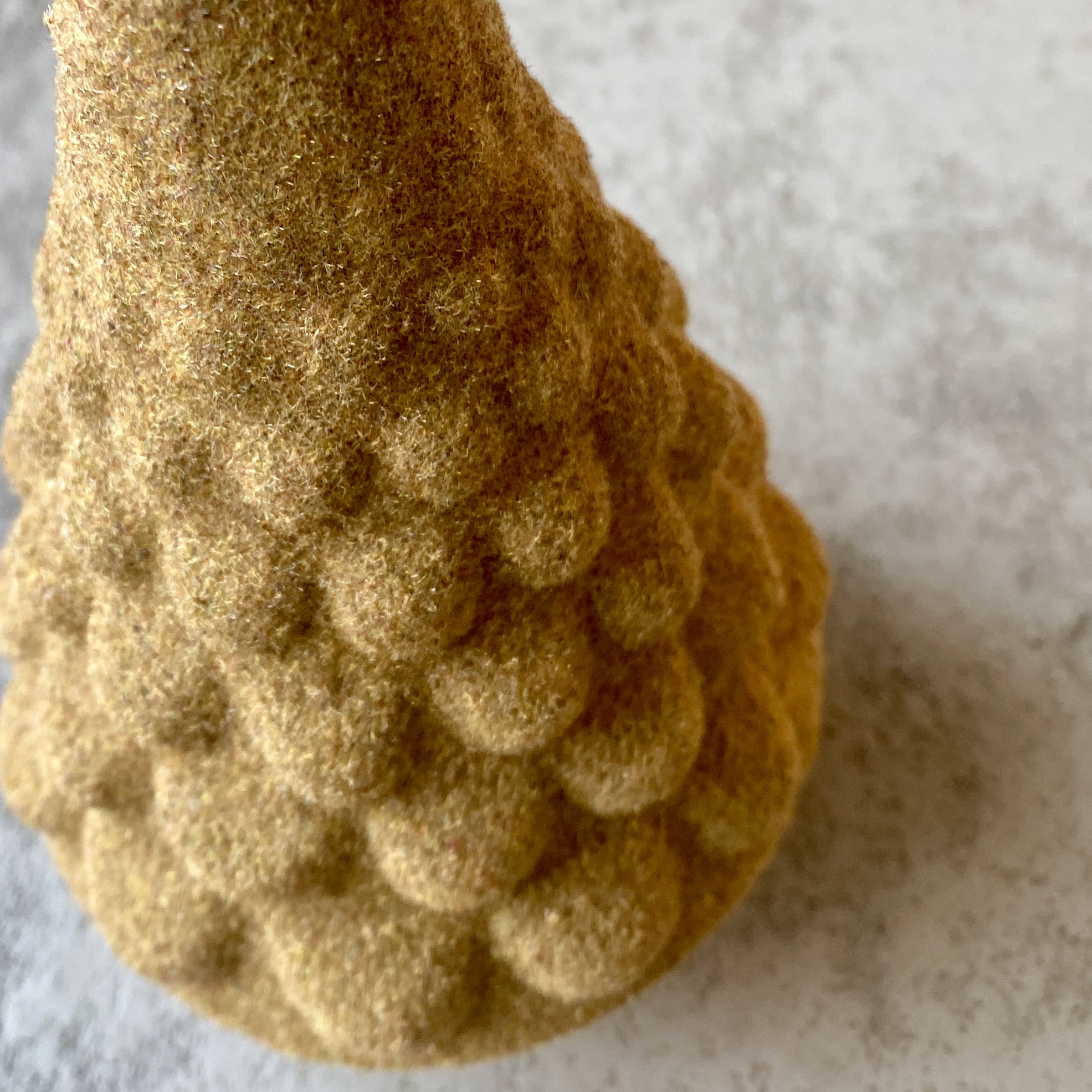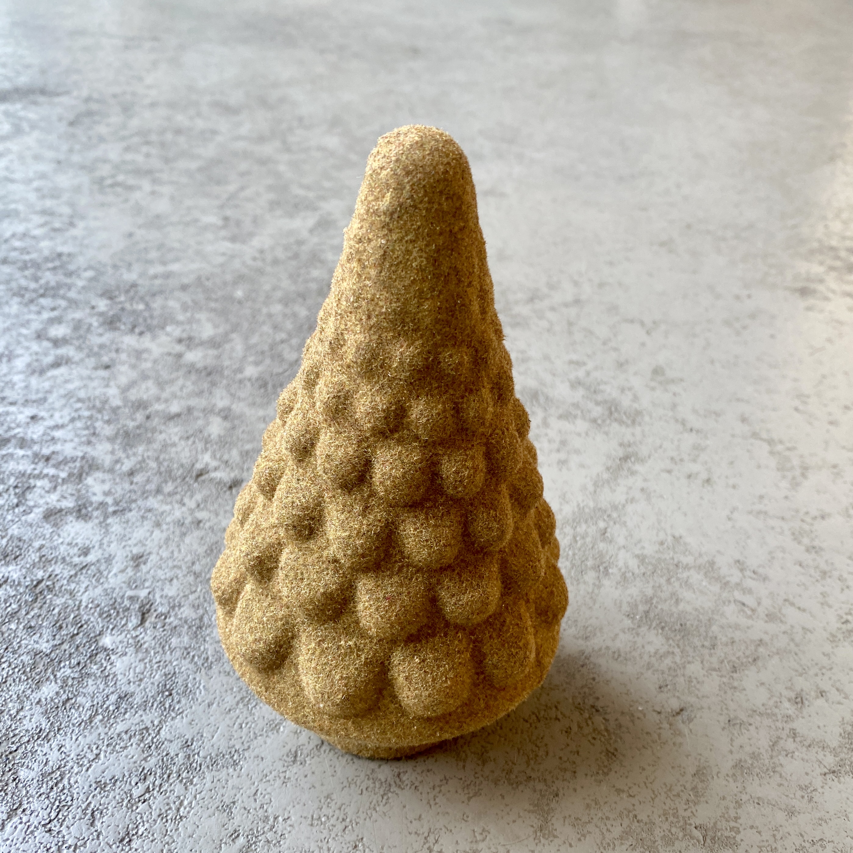 Ein kleiner Deko Tannenbaum aus Glas mit Velvetüberzug in Gold.