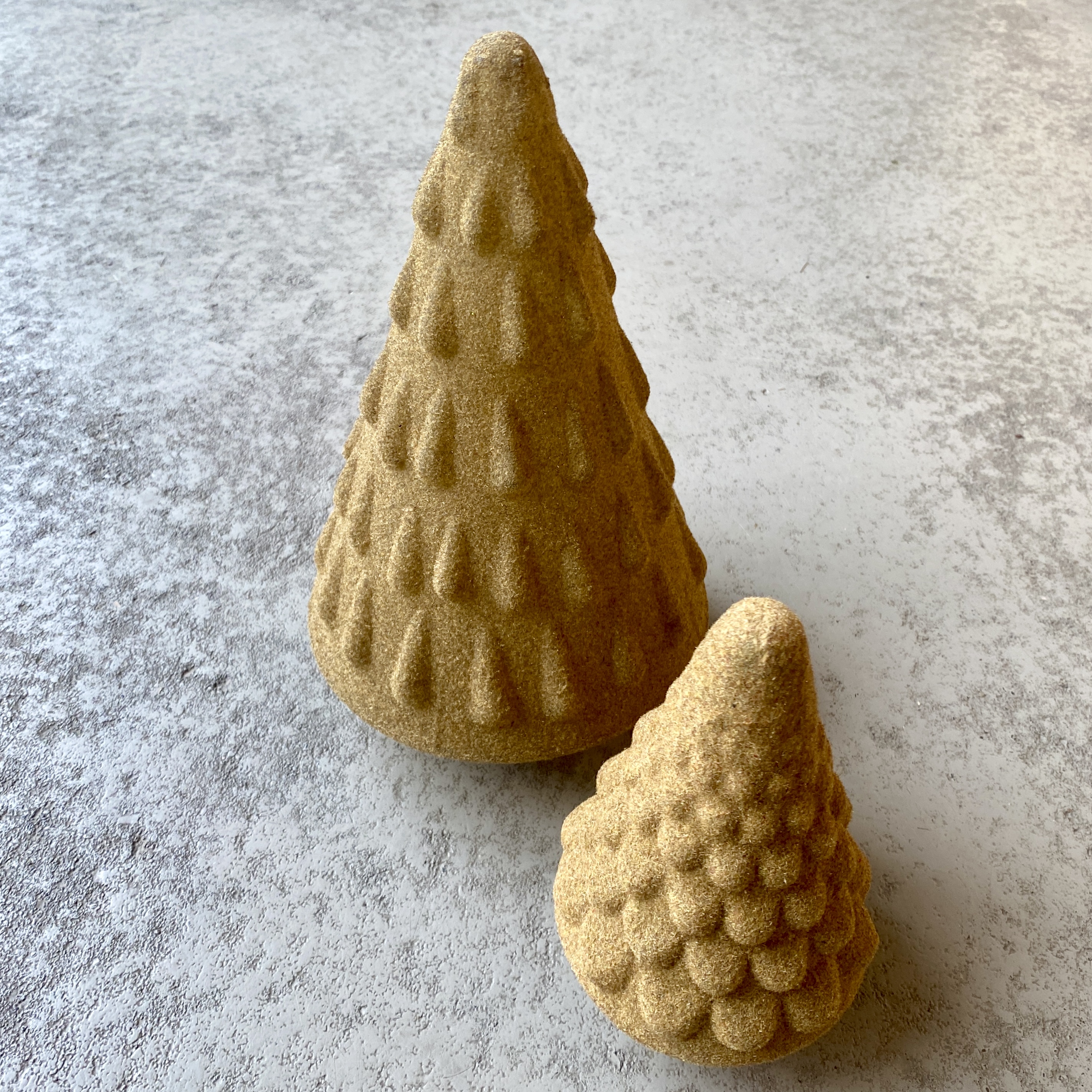 Ein großer Deko Tannenbaum aus Glas mit Velvetüberzug in Gold.