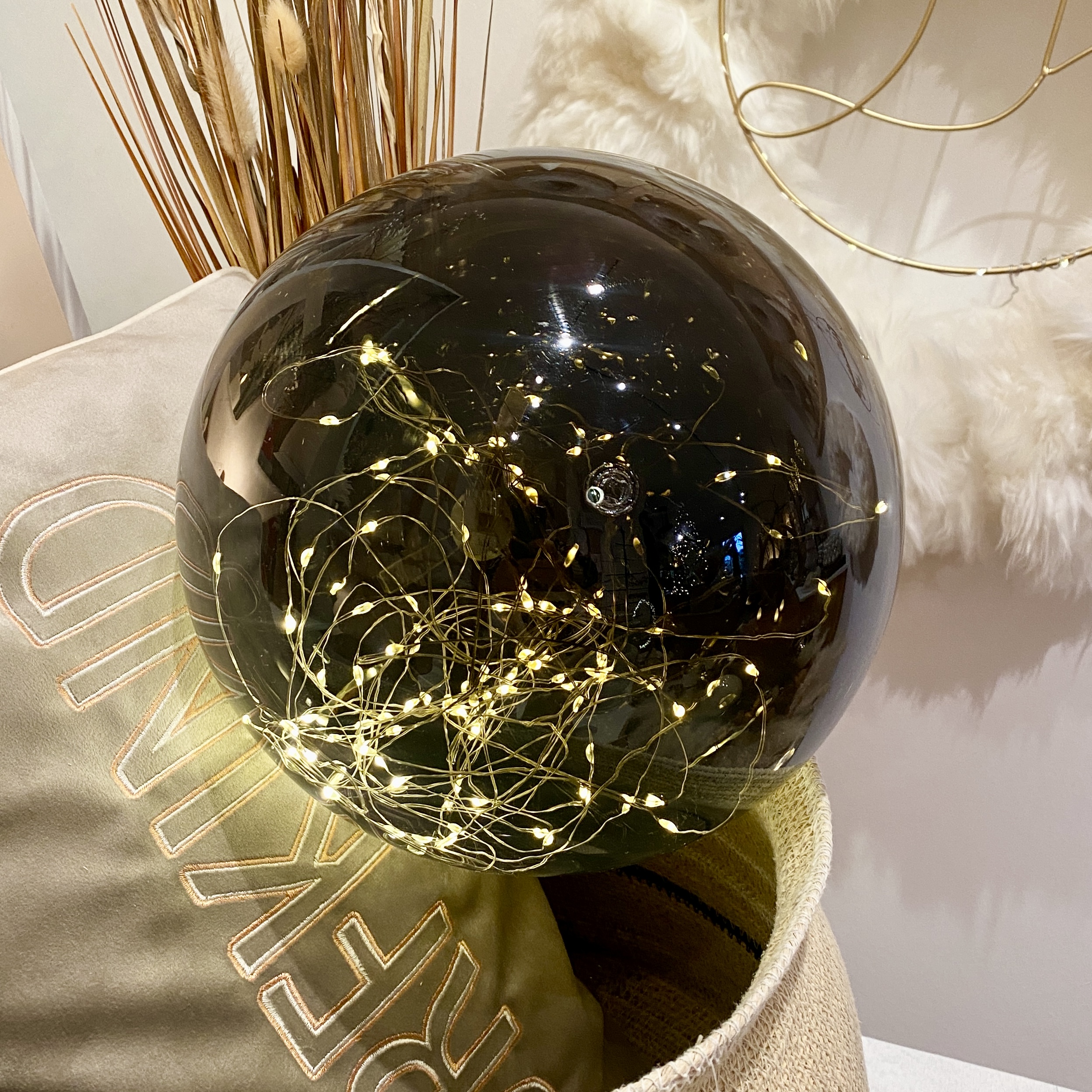 Wunderschöne Deko-Leuchte in Schwarz mit innenliegender Lichterkette, Durchmesser 26cm mit Stecker und Kabel 4m lang. Die Leuchte ist ganzjährig einsetzbar.