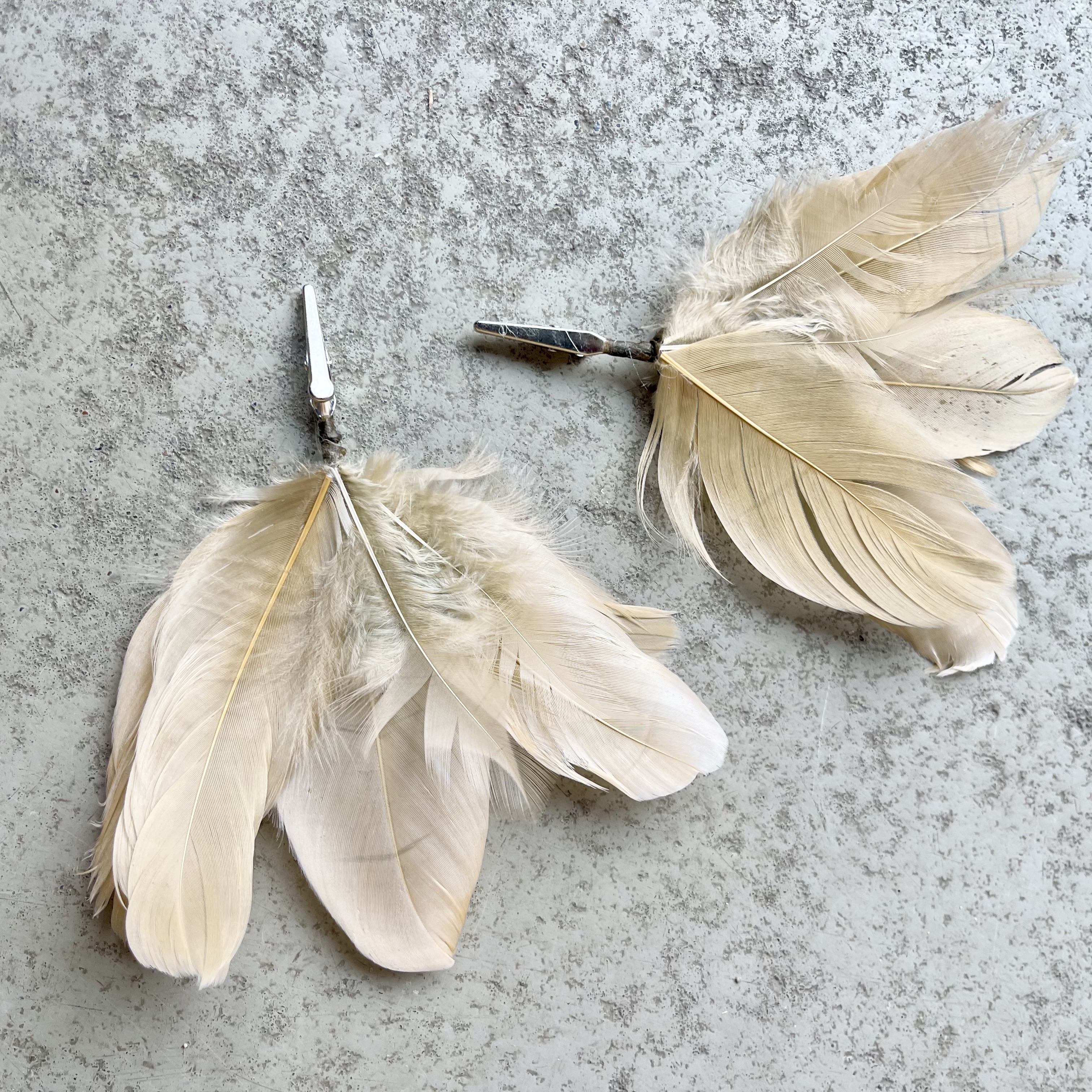 Zwei Camel farbende Federclip´s zum Anheften an Zweige, ideal für deinen Osterstrauch.