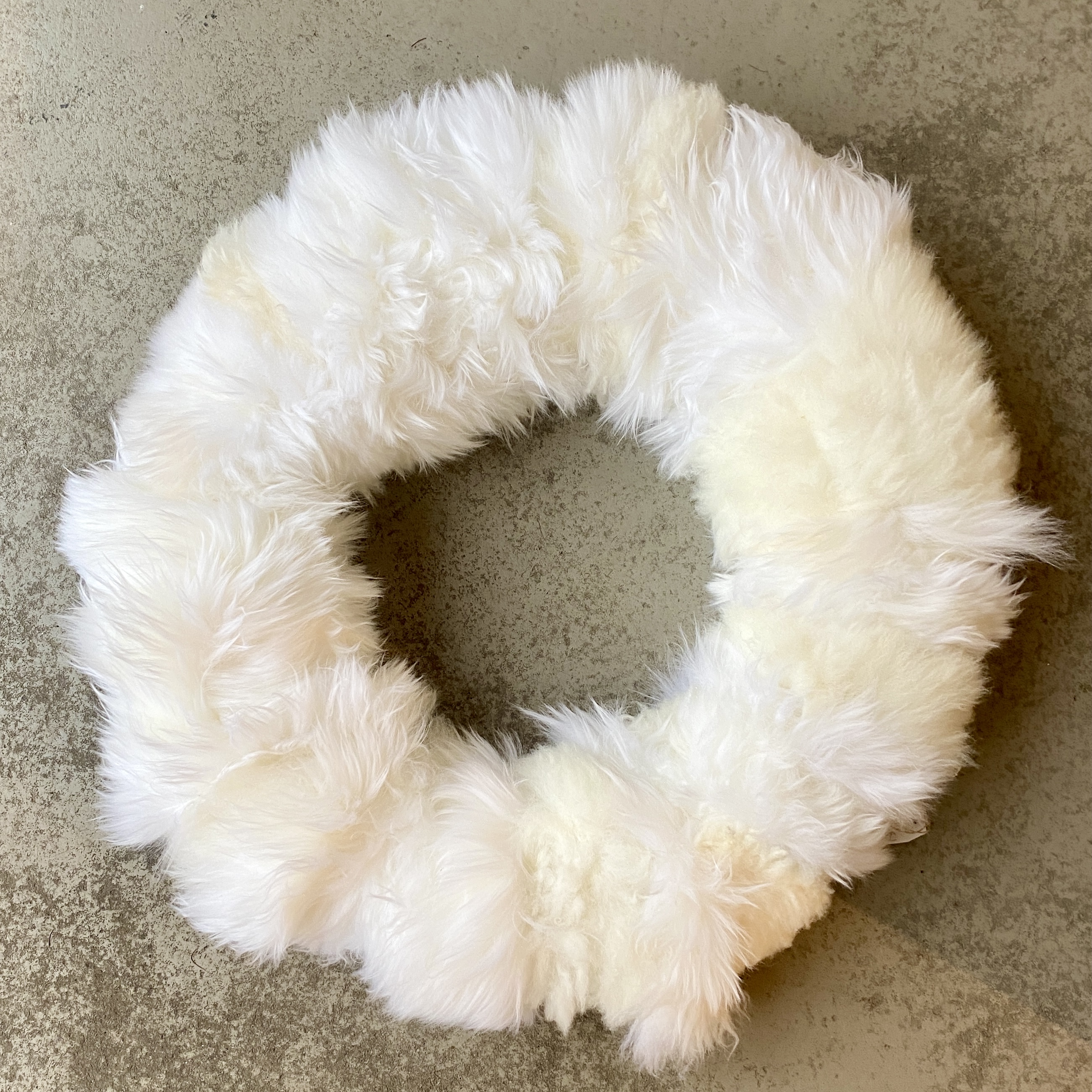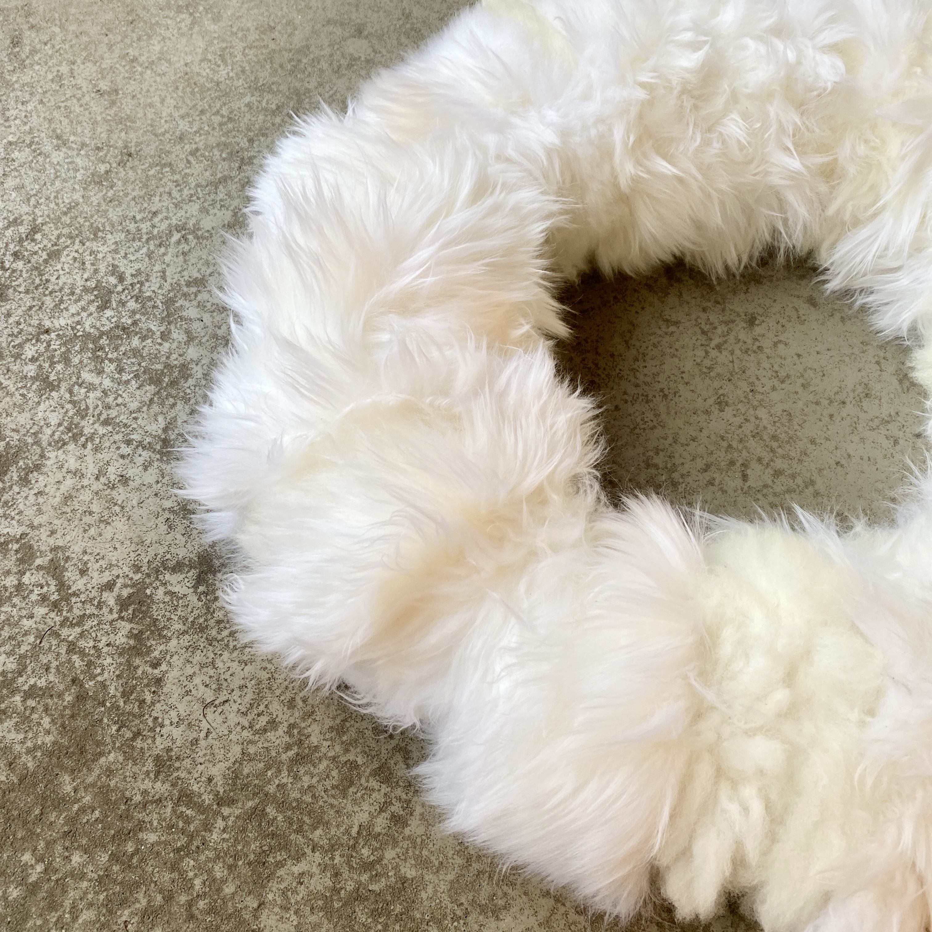 Ein Hingucker für die Wand. Wollkranz aus verschiedenen Stücken natürlichen Schaffels. Durchmesser ca. 60cm. Verwandelt jeden Raum in ein Winterwunderland.