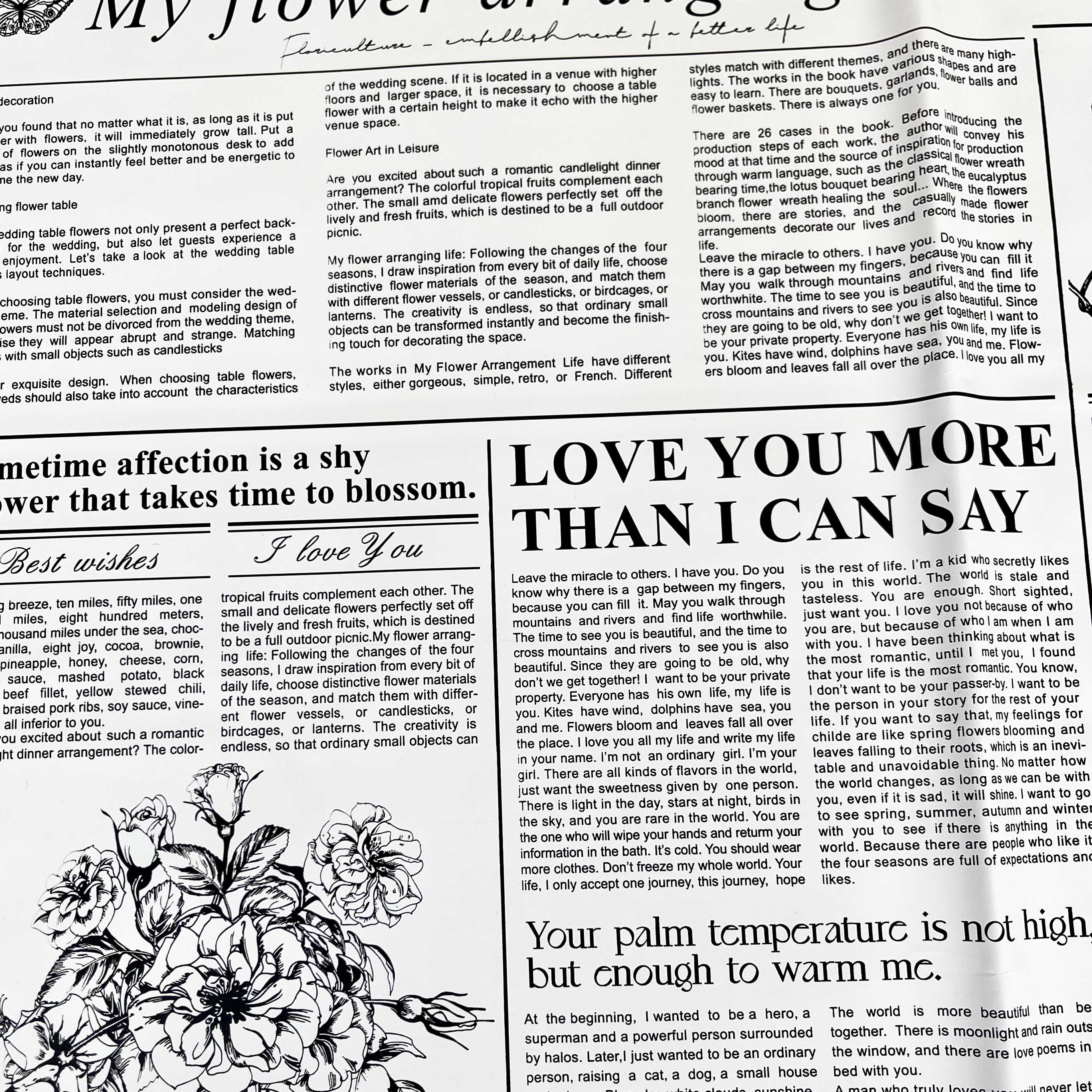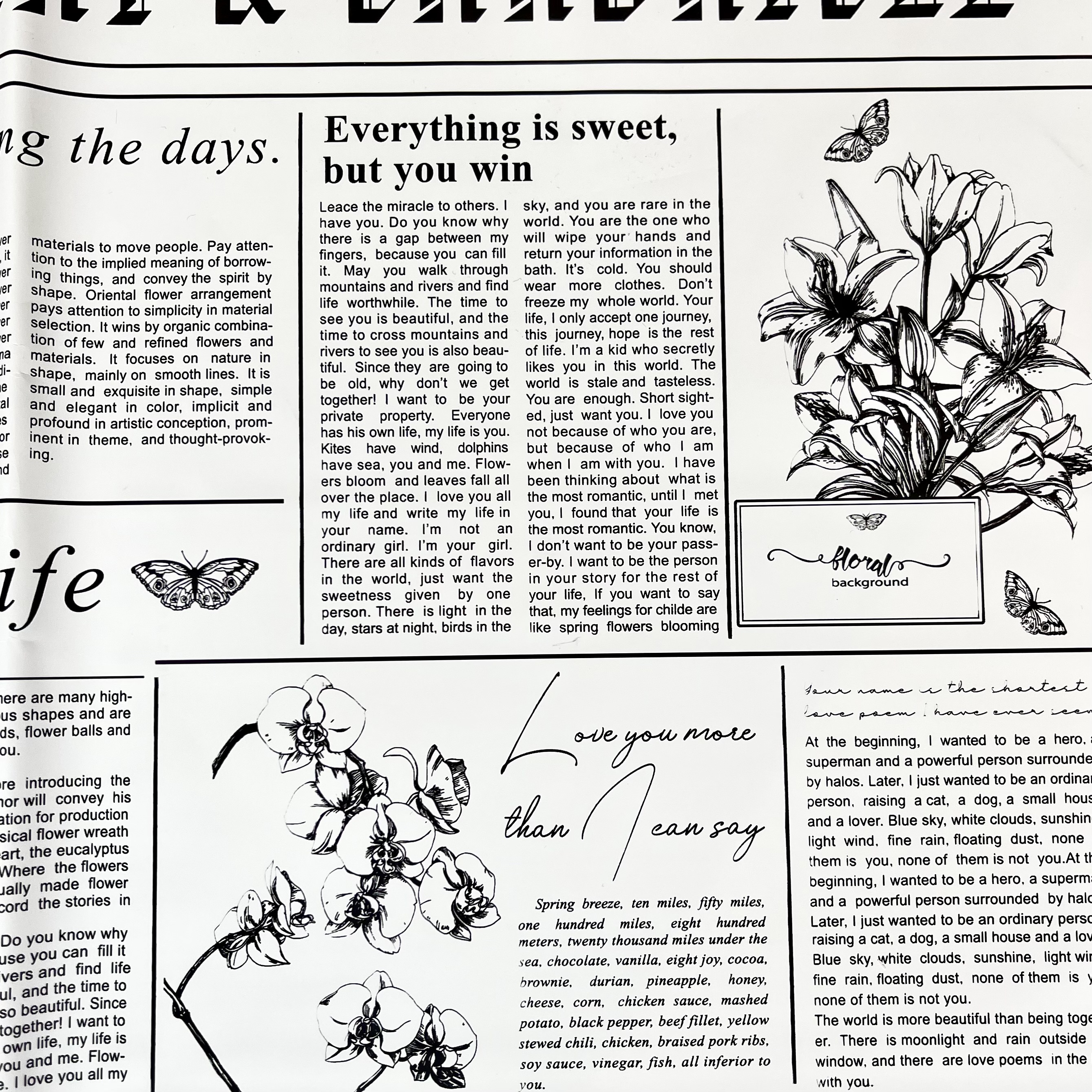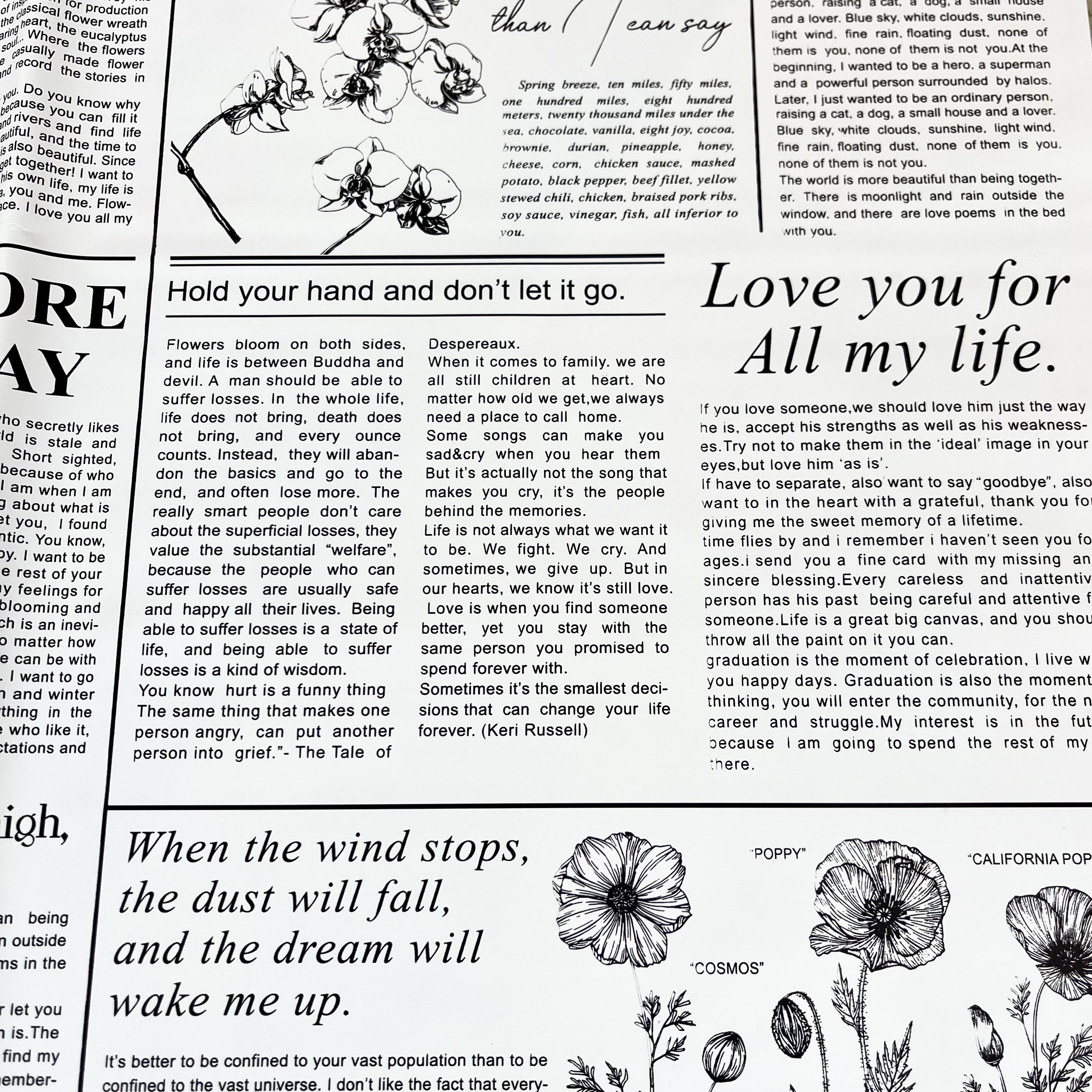 Geschenk- und Gestaltungspapier in Zeitungs-Optik. Besonders gut geeignet für Glasfüllungen und