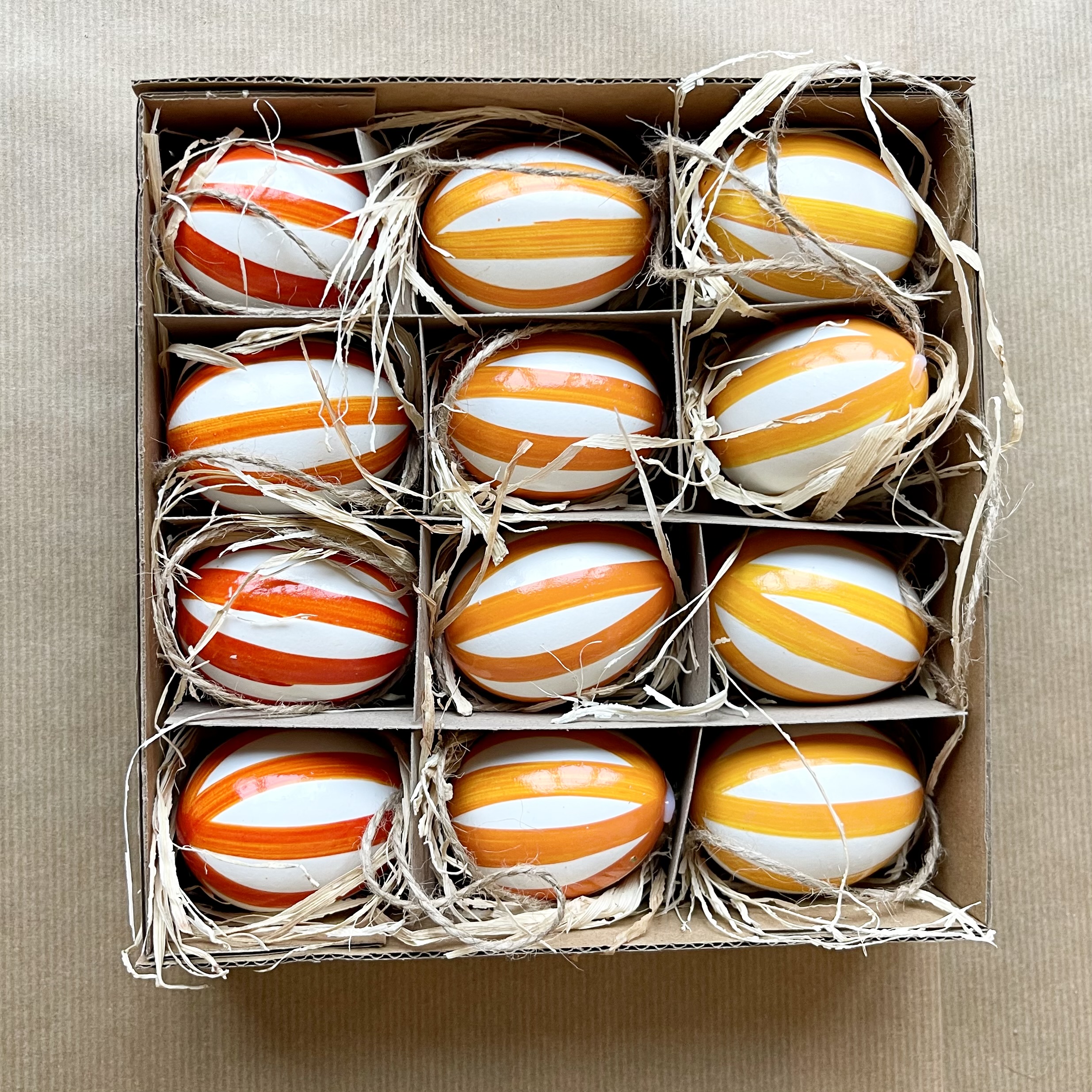 12 Gänseeier, so bunt gestreift wie das Leben, modern lackiert bringen sie die gewünschte Frische in dein