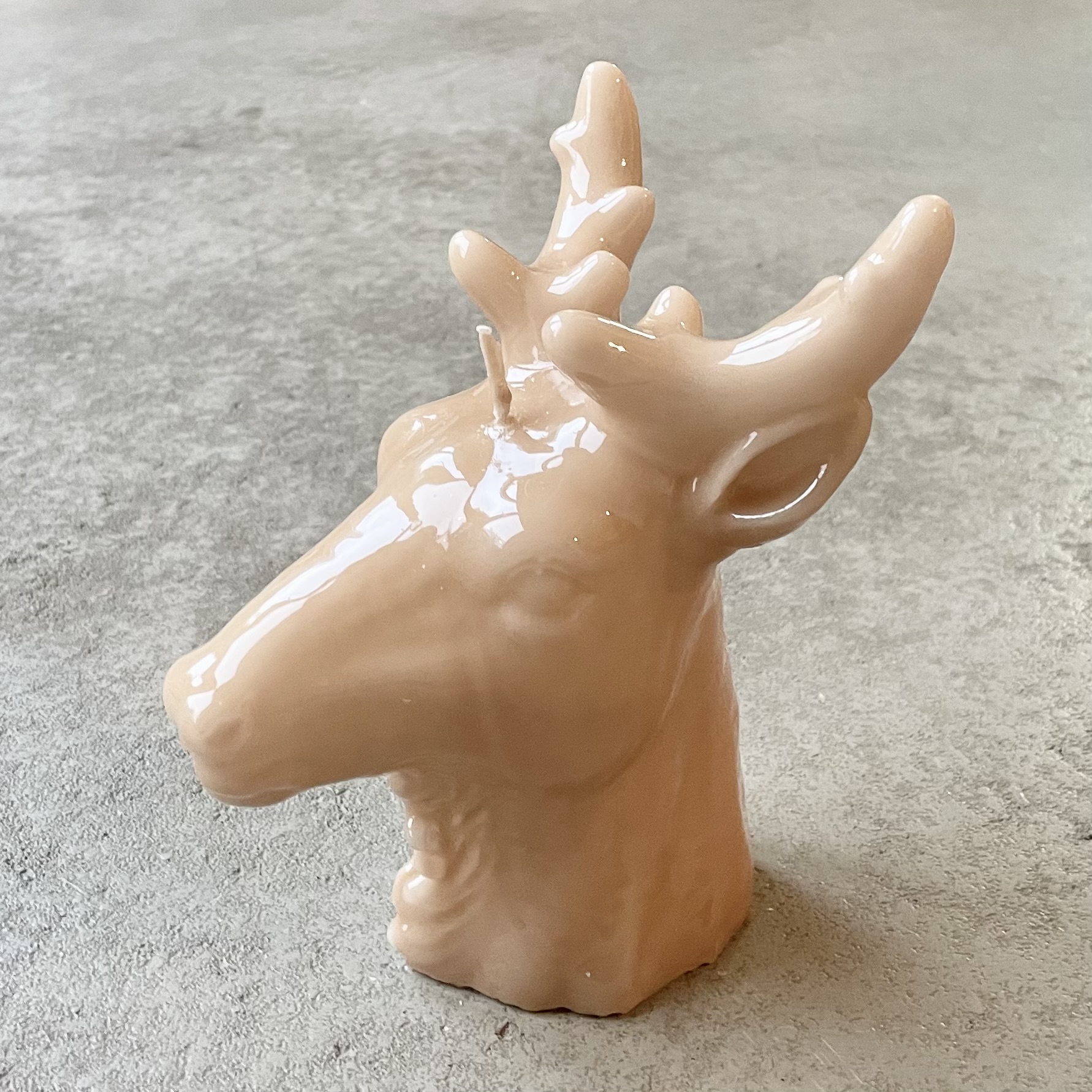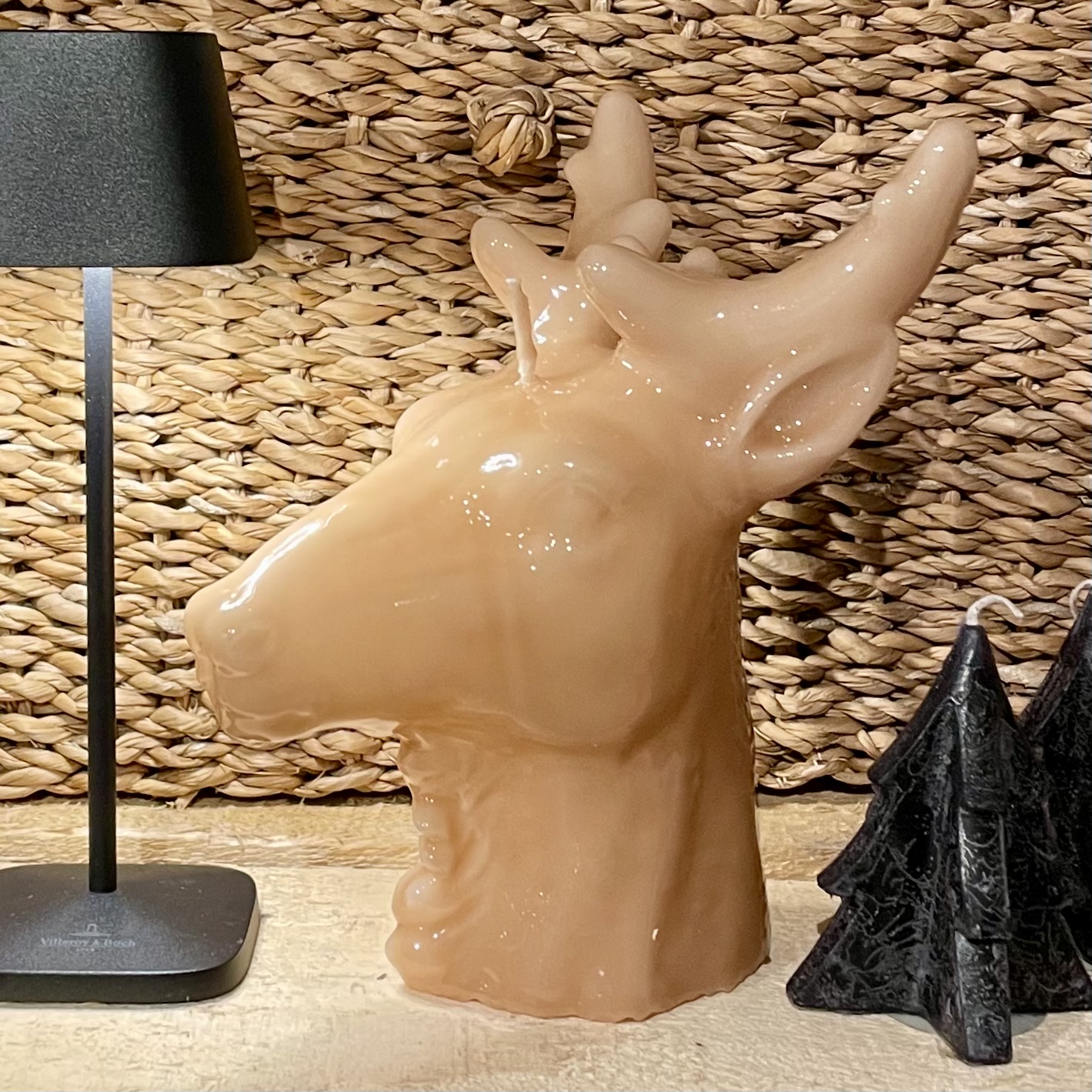 Gelackte Objektkerze "Hirsch" H19cm, Sand