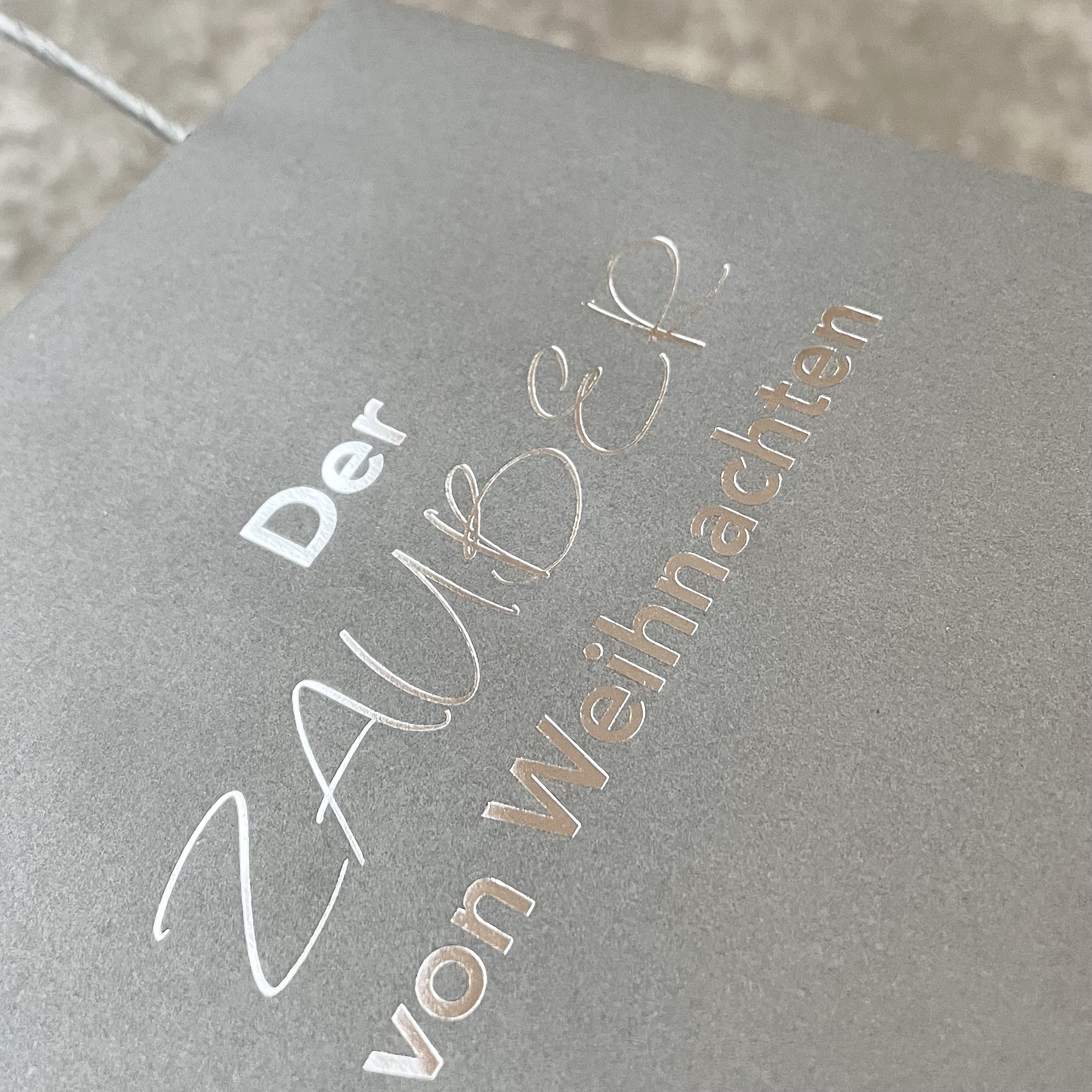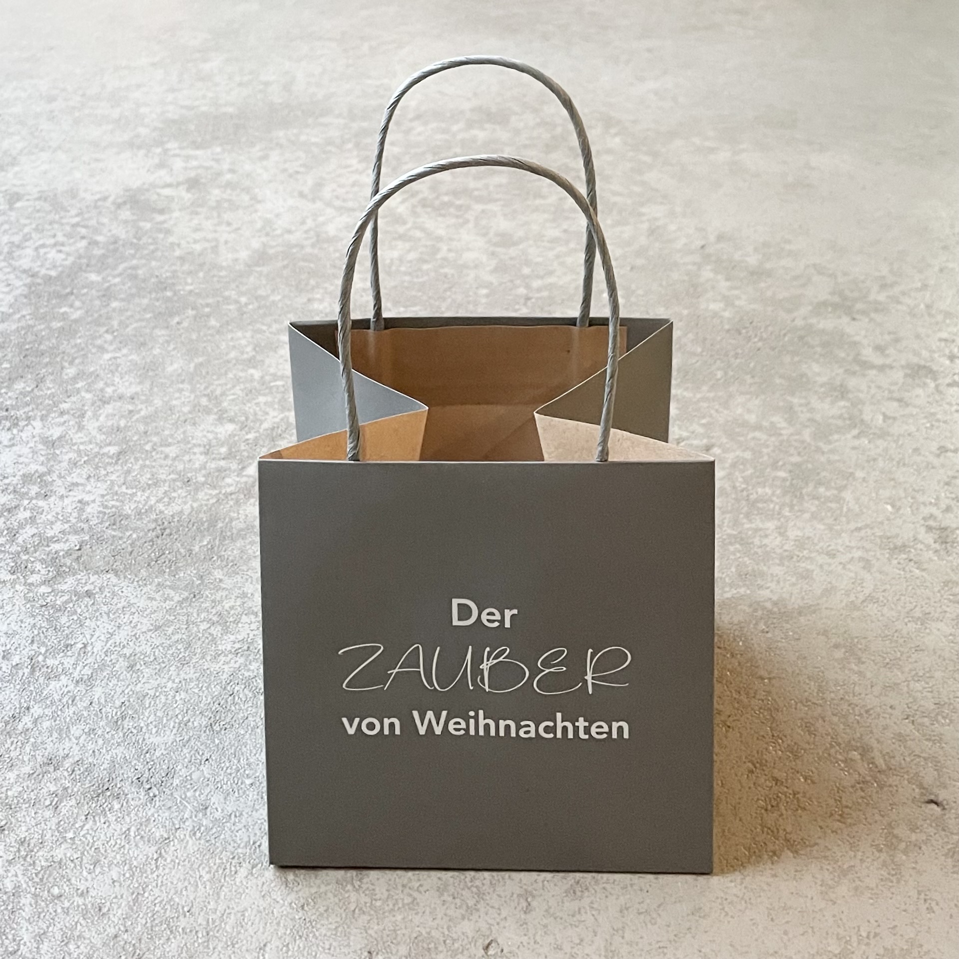 Geschenk-Papiertasche "Der Zauber von Weihnachten" 14x14cm, grau/silber