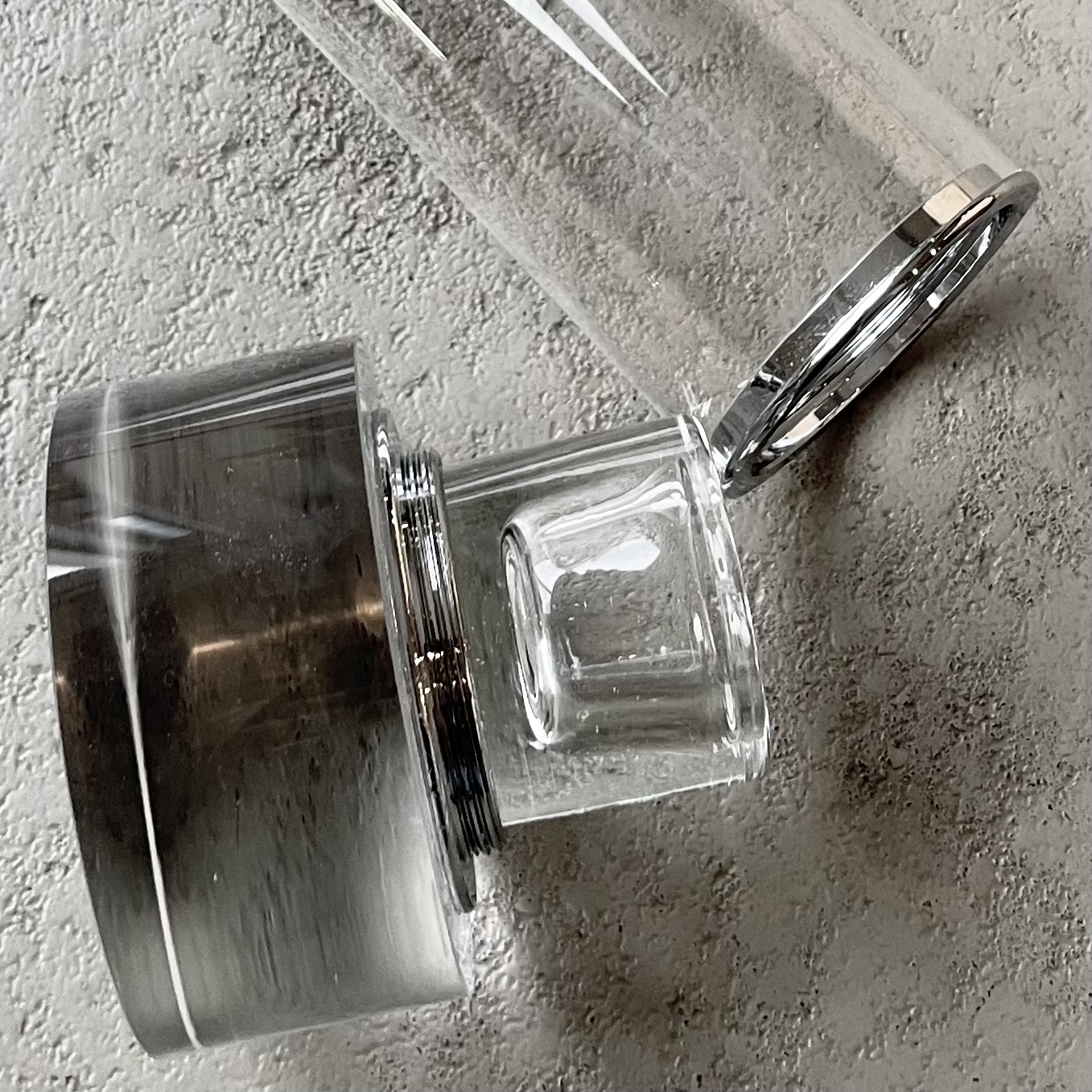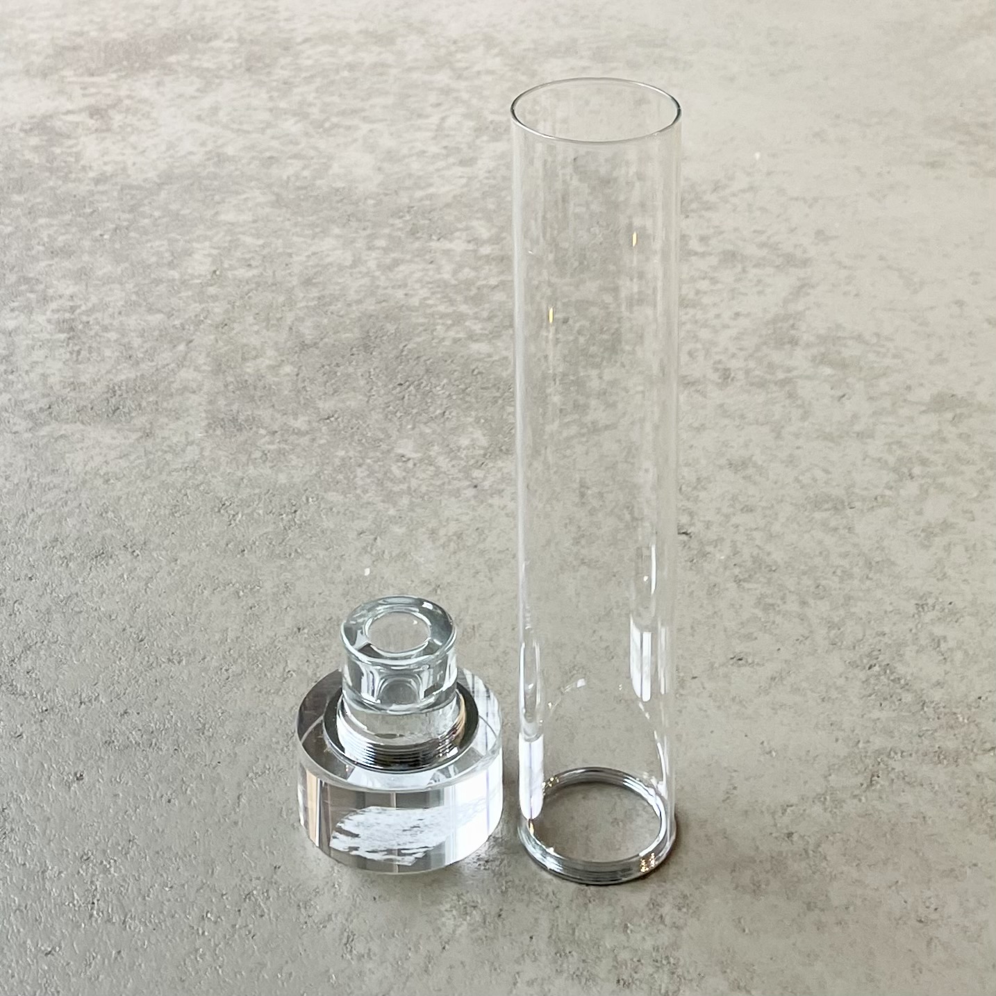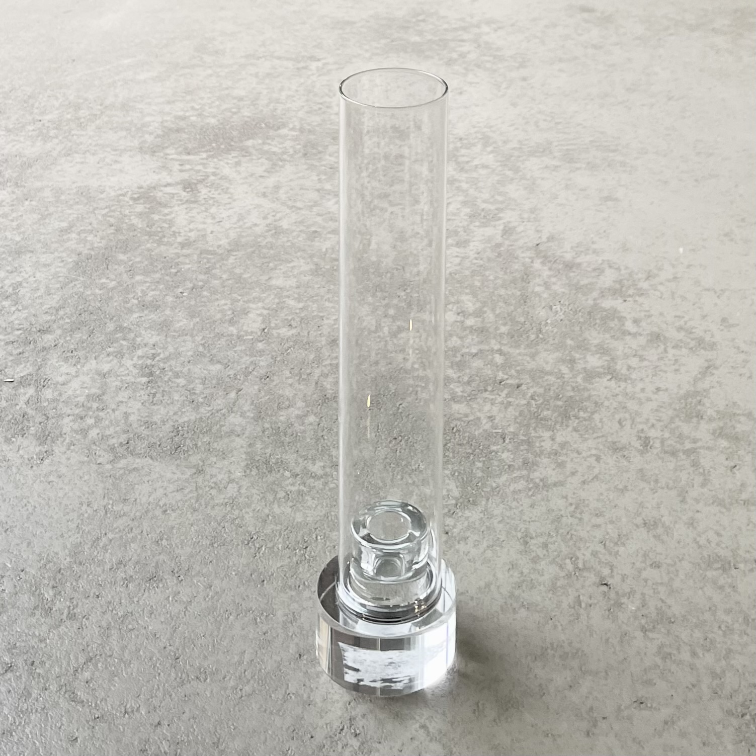 Glaskerzenhalter bestehend aus zwei Teilen, welche miteinander verschraubt werden. Für den Einsatz von handelsüblichen Haushaltskerzen. Lieferung erfolgt ohne Kerze!