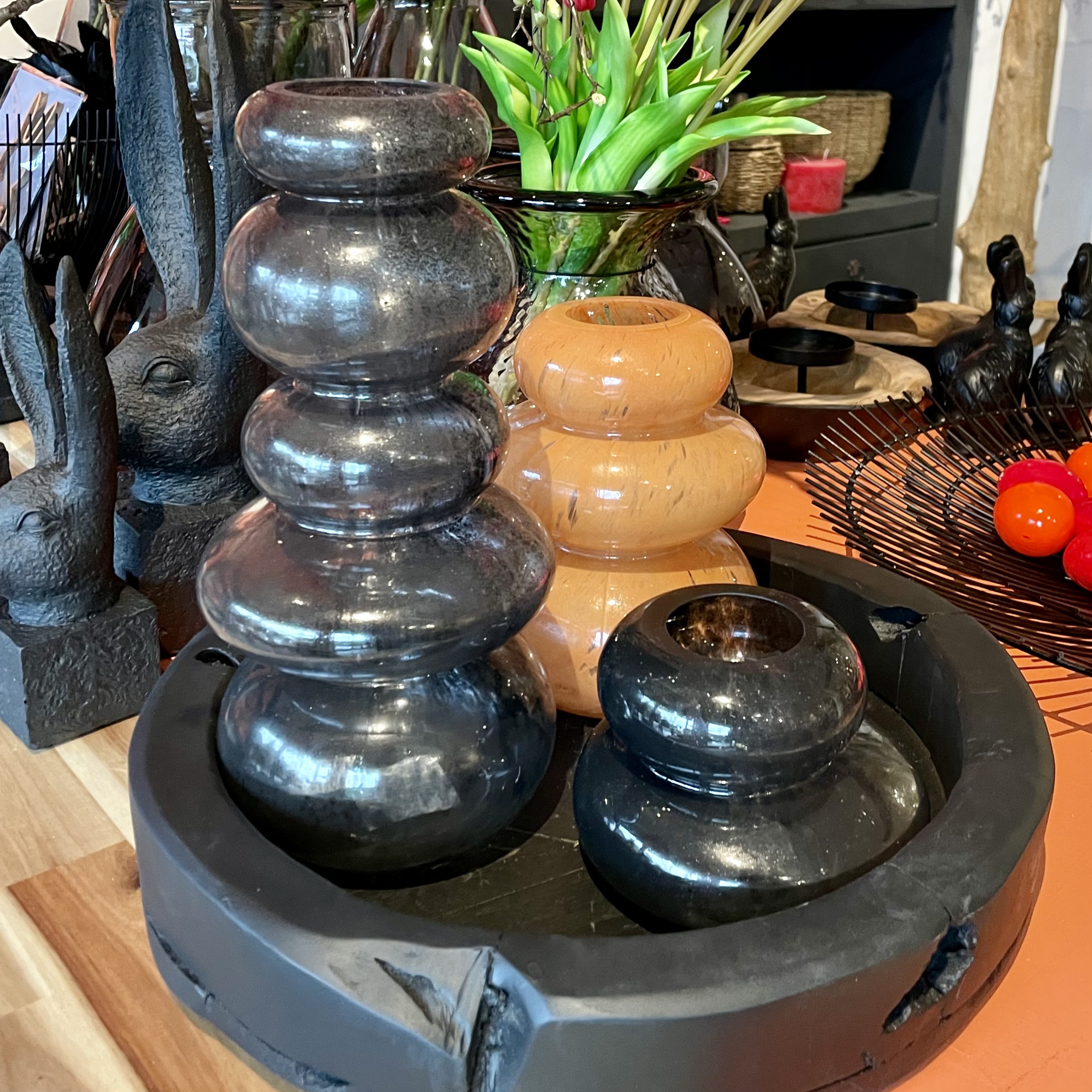 Glas-Vase für jeden Platz, erinnert an gestapelte Steine, leicht transparent. Auch als Gruppe mit zwei weiteren Varianten sehr dekorativ.