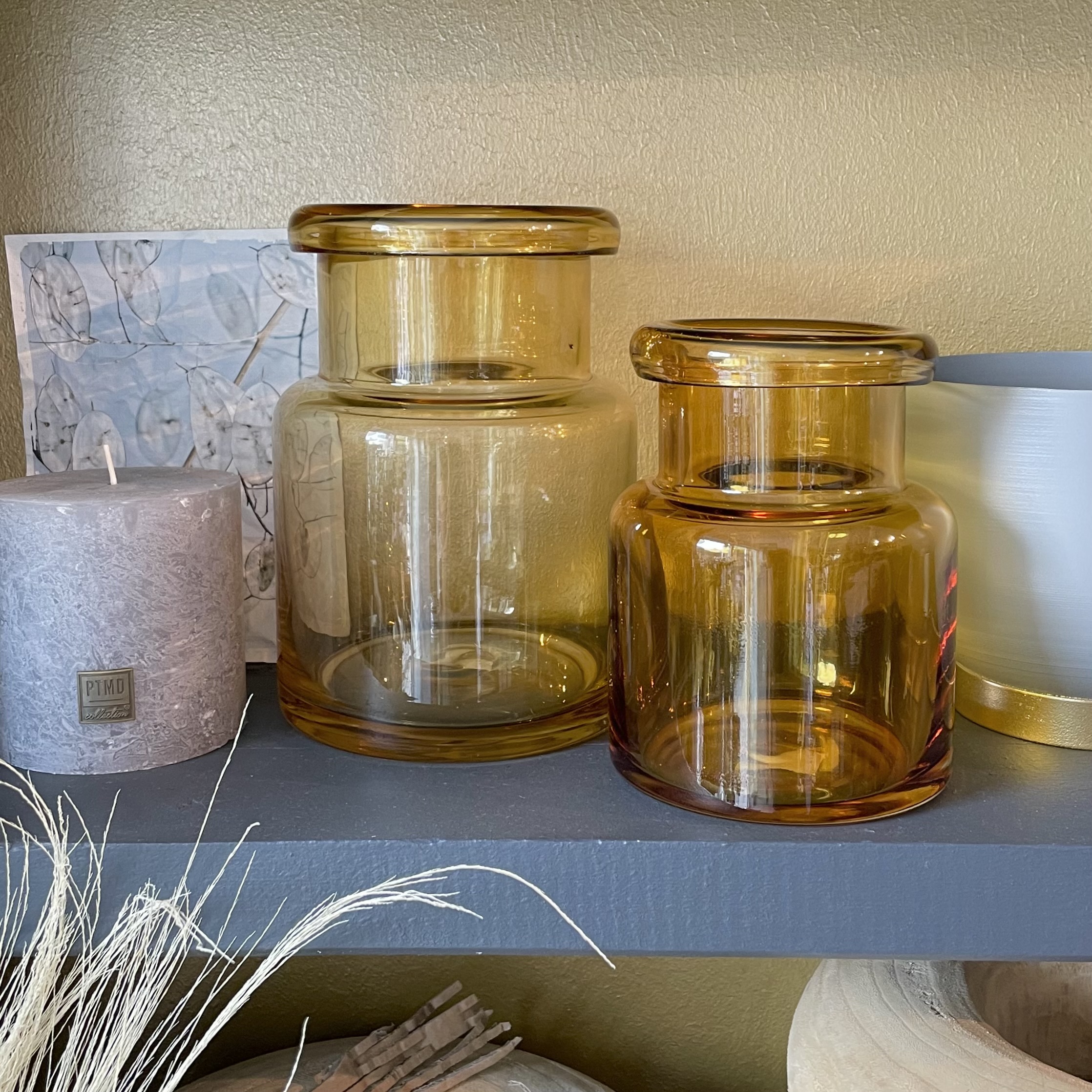 Dickes, schweres Glas in einem warmen Gelbton, gut kombinierbar.