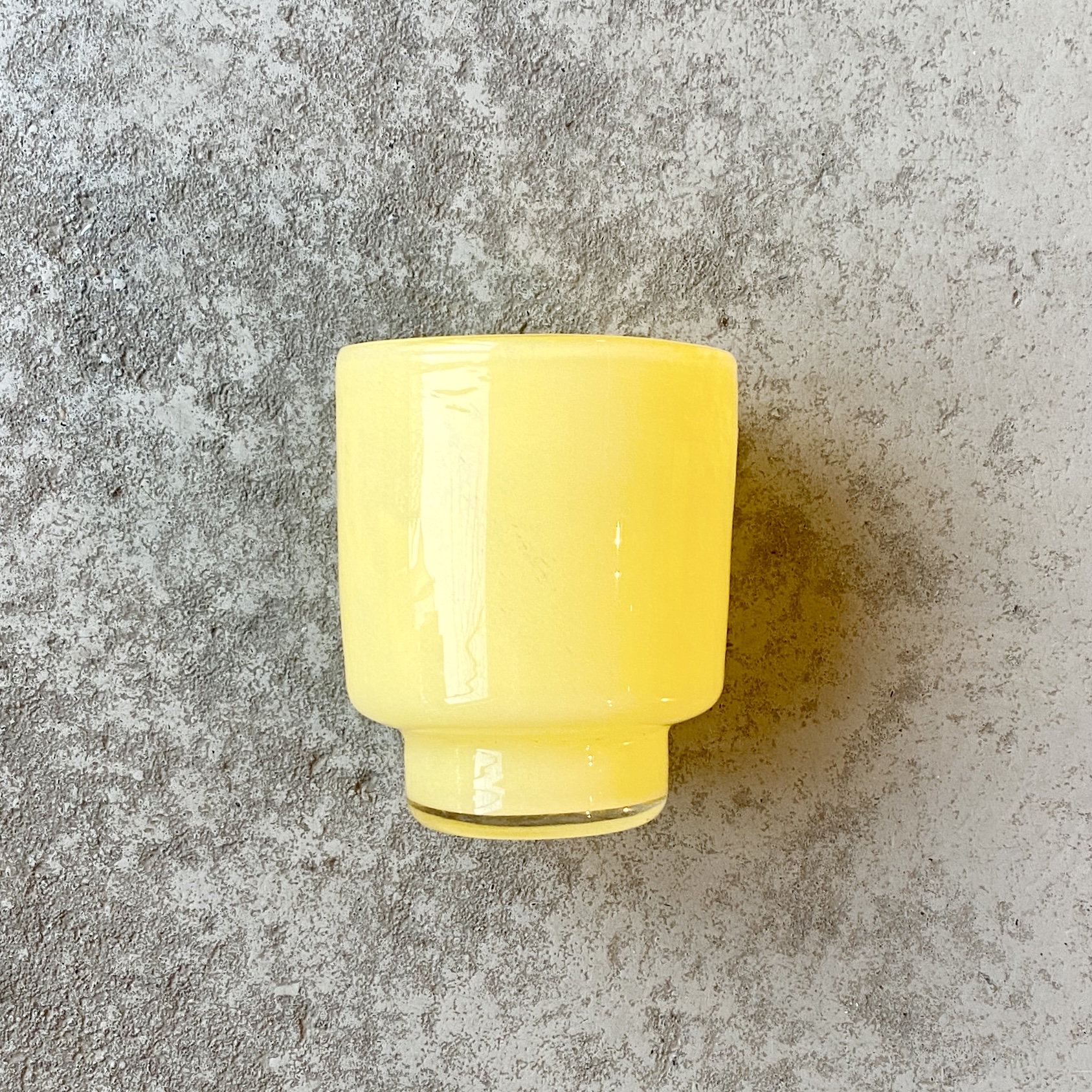Windlichtglas in Gelb für viele Kranzgestaltungen und passend zum Dacia-Papierkranz, oder solo als Vase. Sockel 2,5cm hoch, 6,5cm breit.