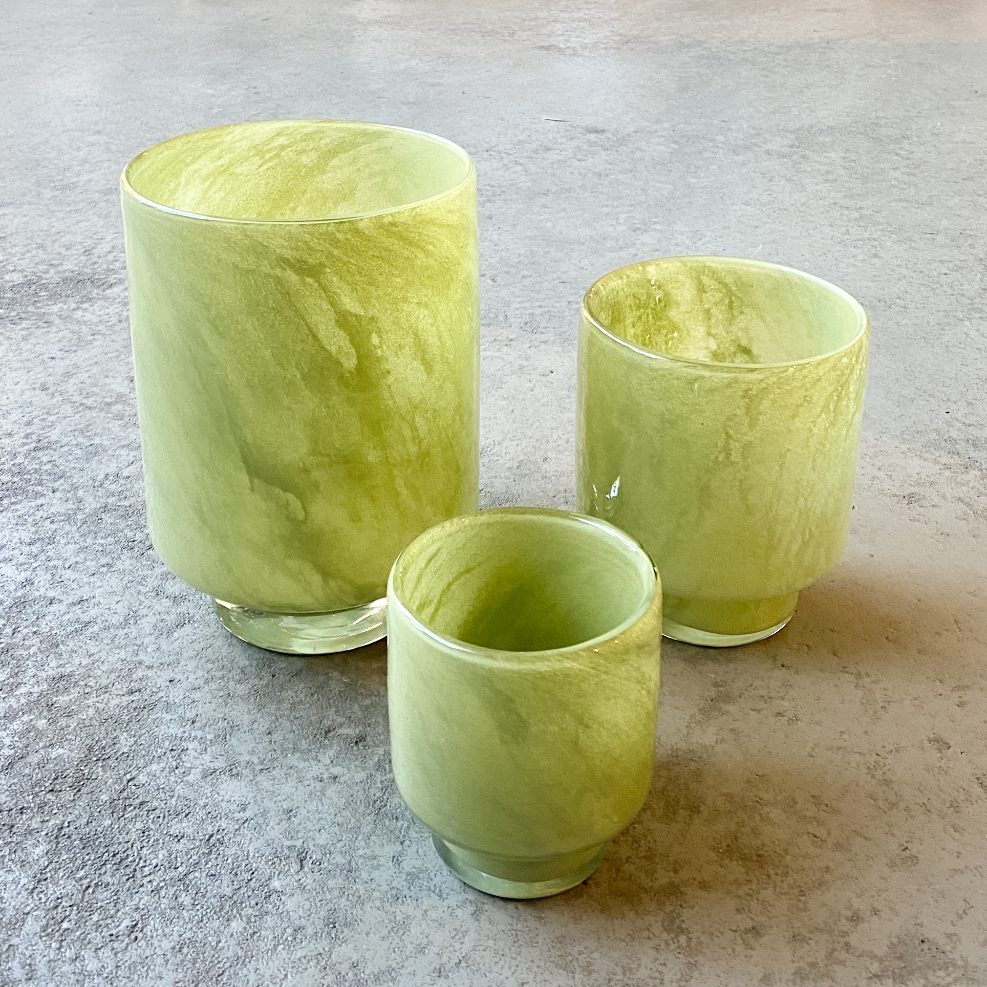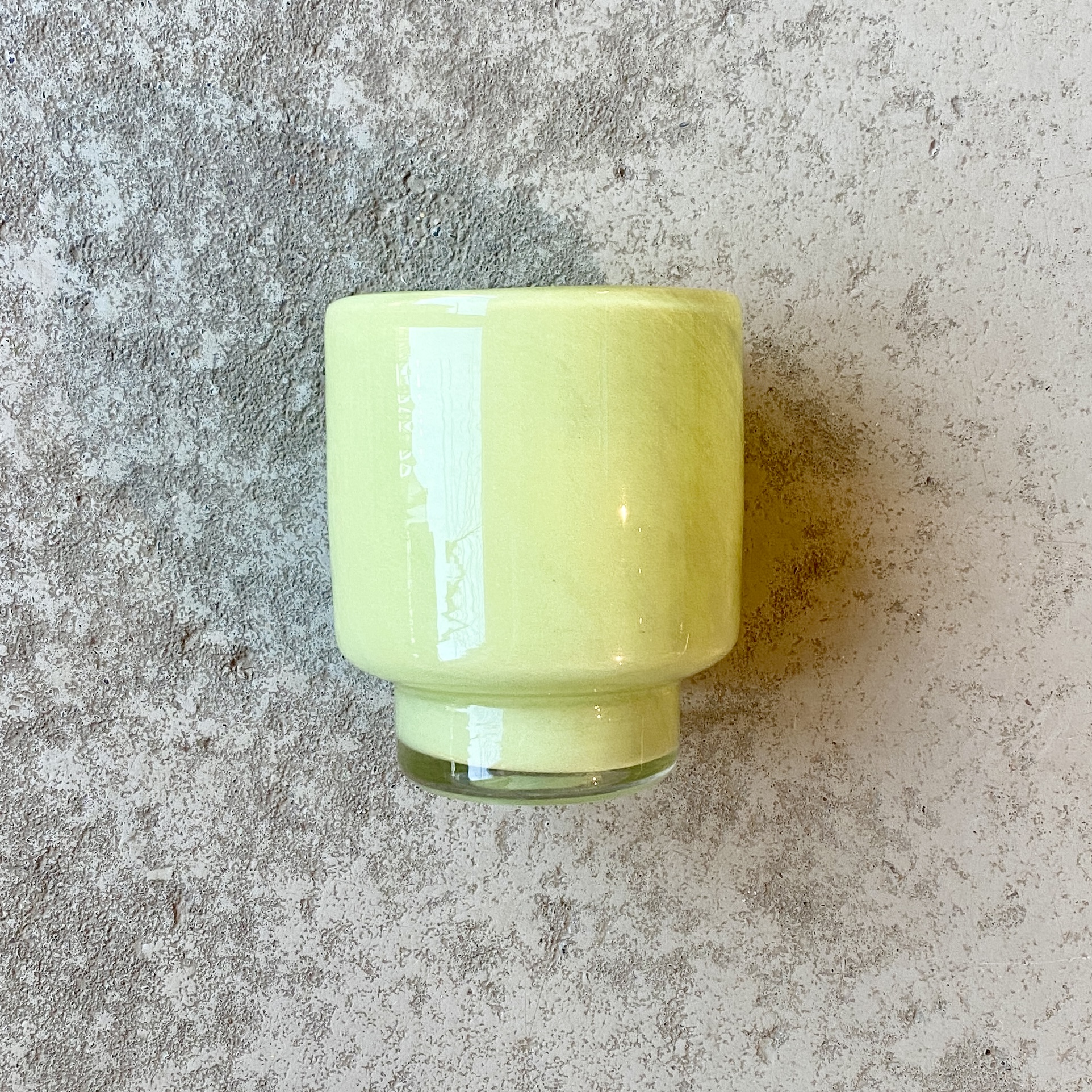 Windlichtglas in Hellgrün für viele Kranzgestaltungen und passend zum Dacia-Papierkranz, oder solo als Vase. Sockel 2,5cm hoch, 6,5cm breit.
