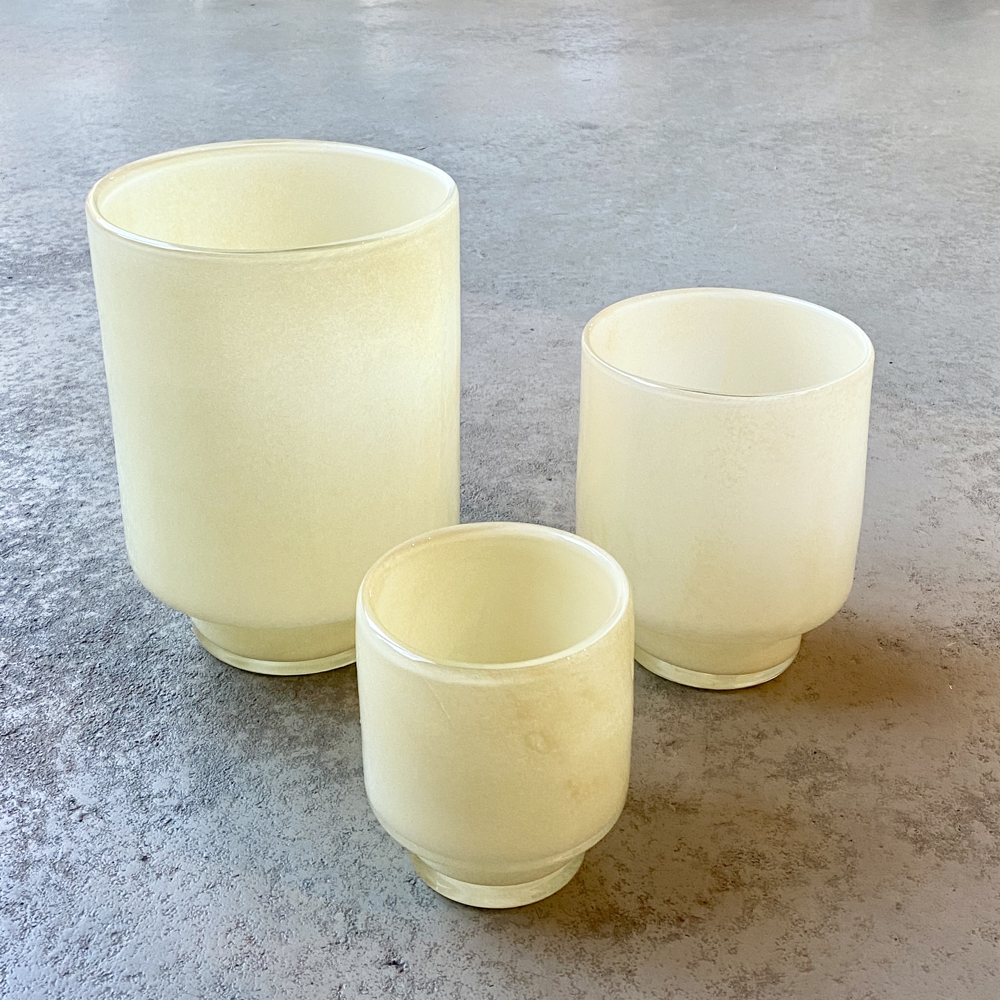 Windlichtglas in Creme für viele Kranzgestaltungen und passend zum Dacia-Papierkranz, oder solo als Vase. Sockel 3cm hoch, 8cm breit