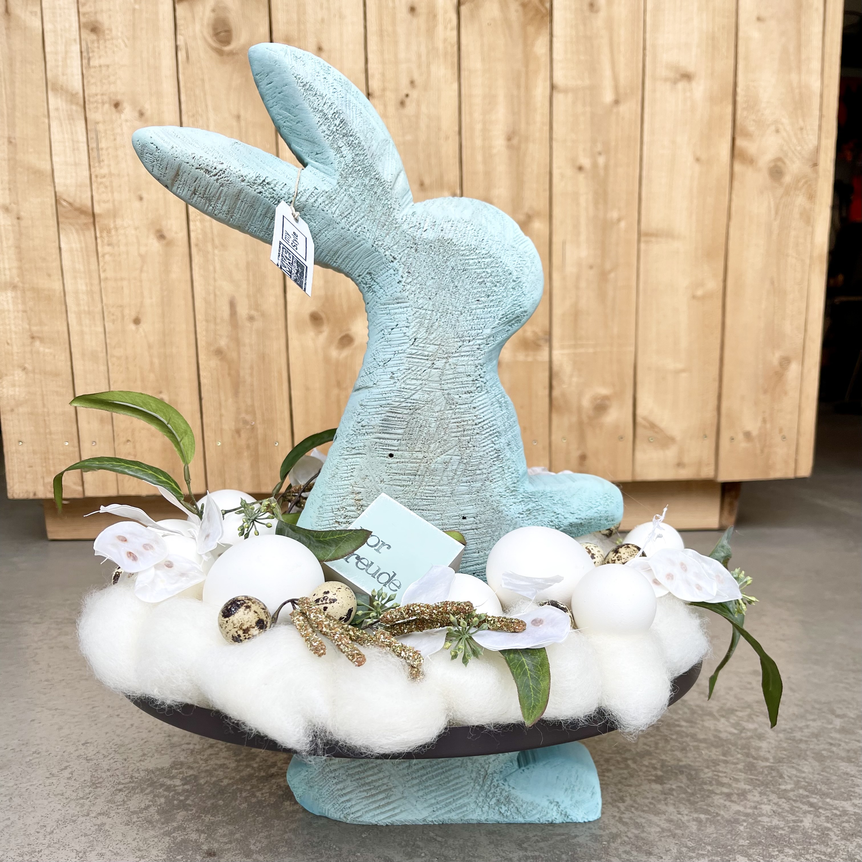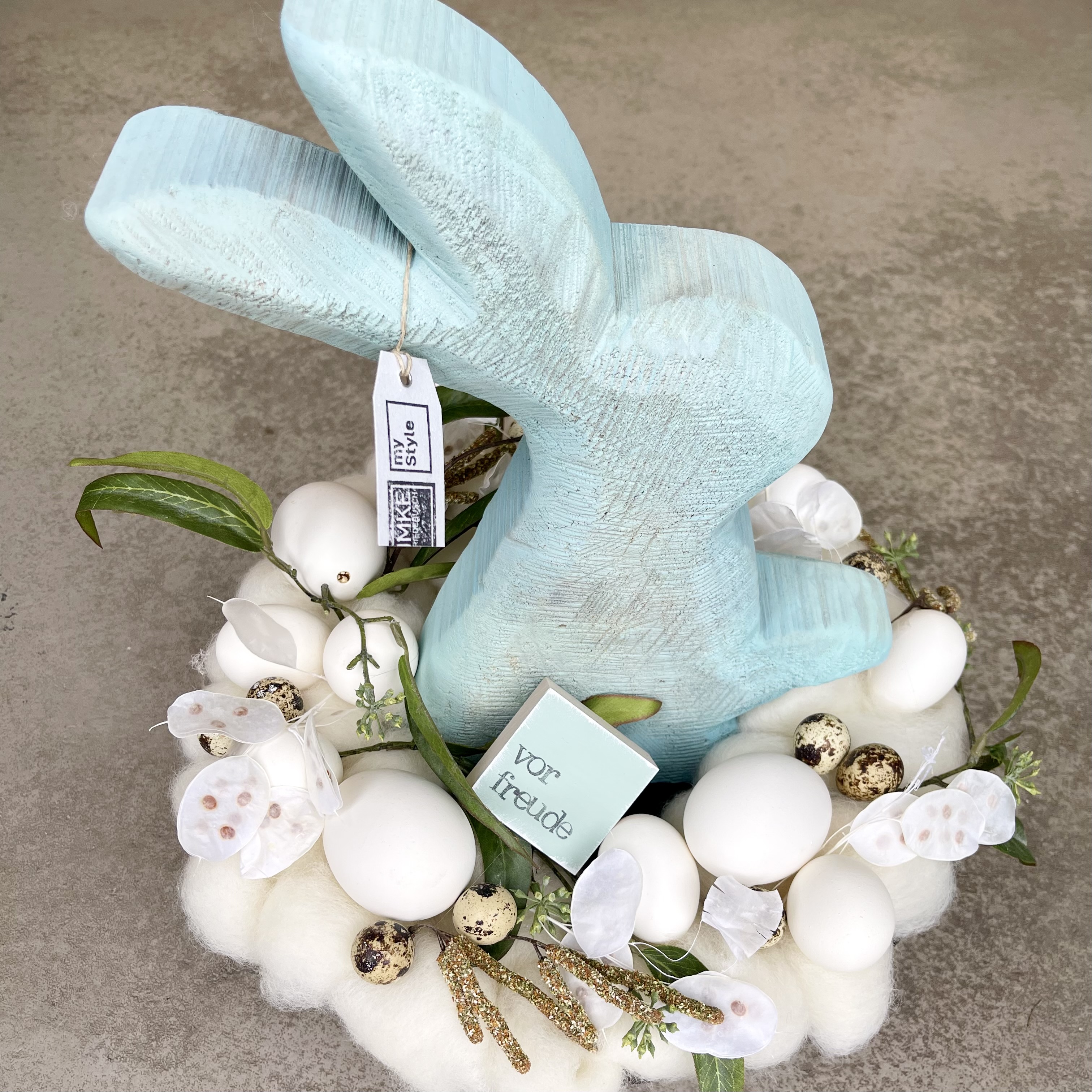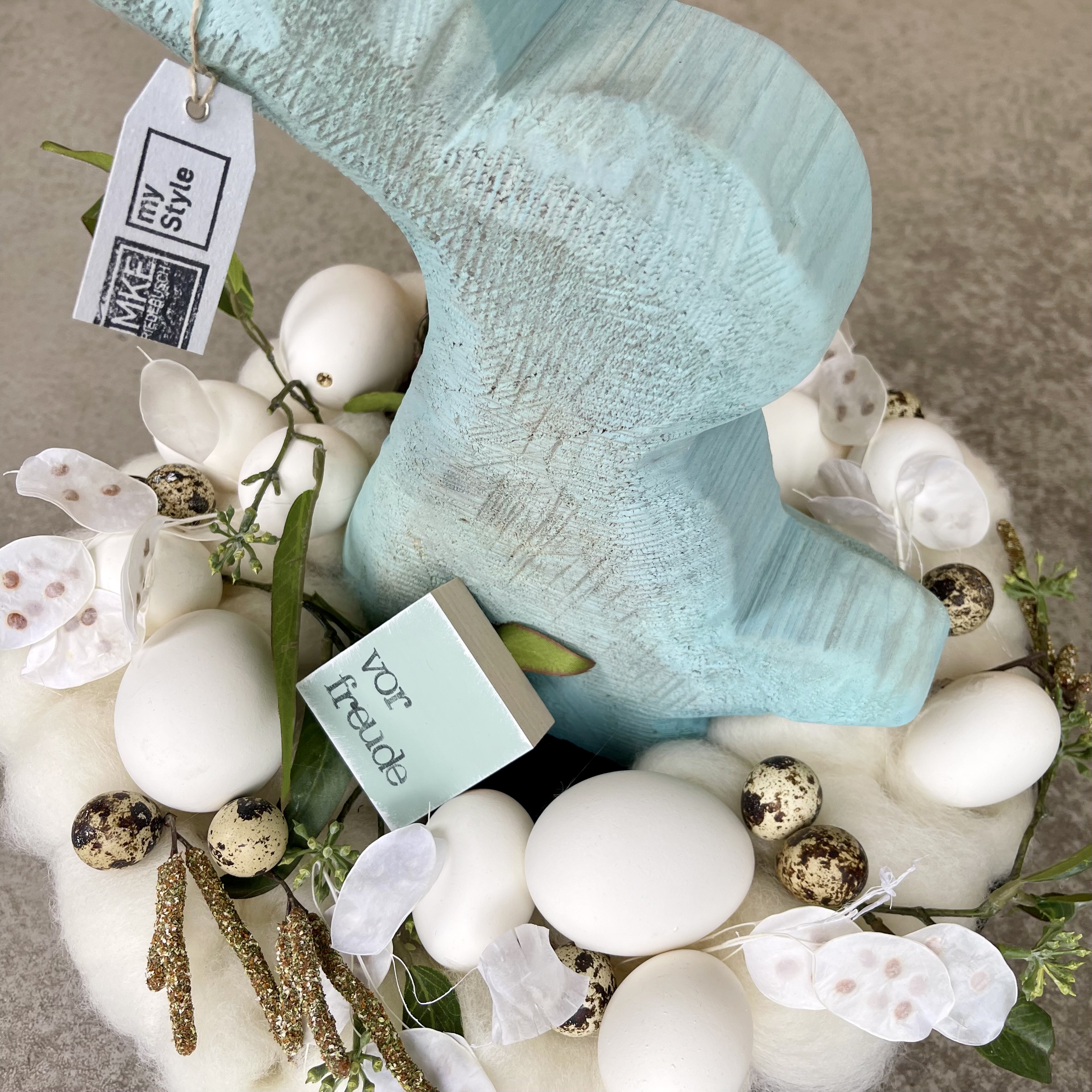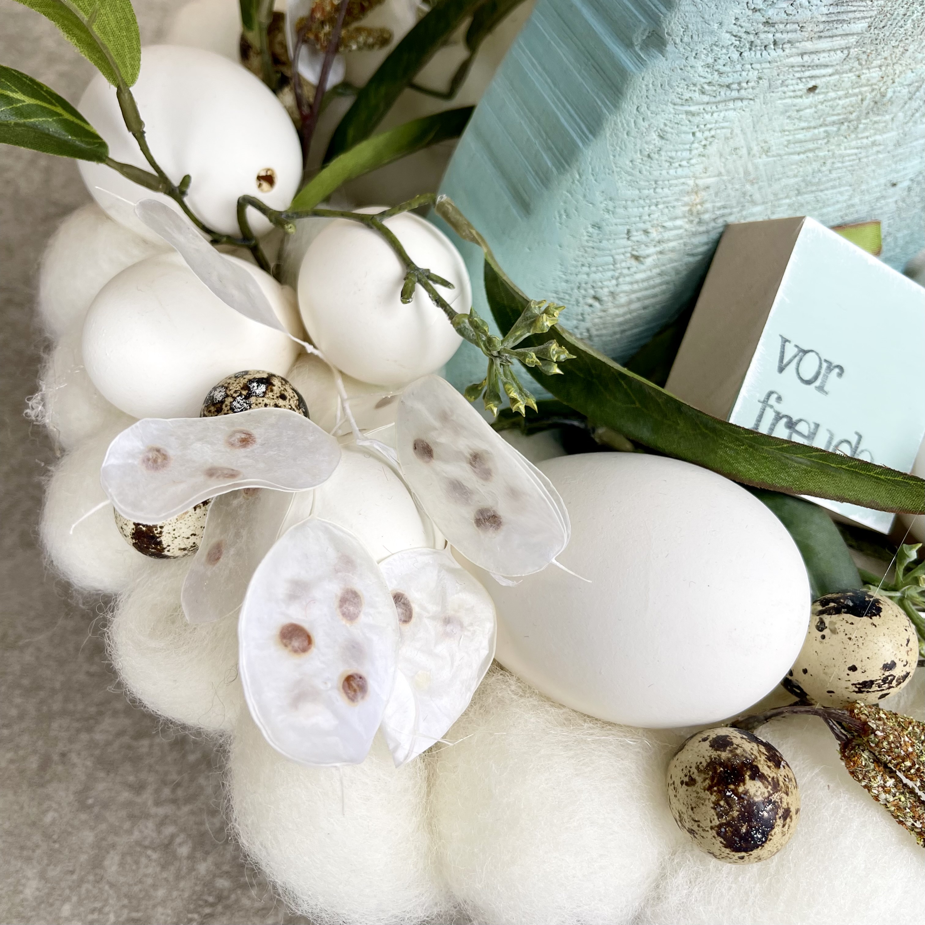 den Kranz aus gezupfter creme Wolle abnehmen, somit ist dieser auch als Tür- oder Wandkranz eine tolle Deko-