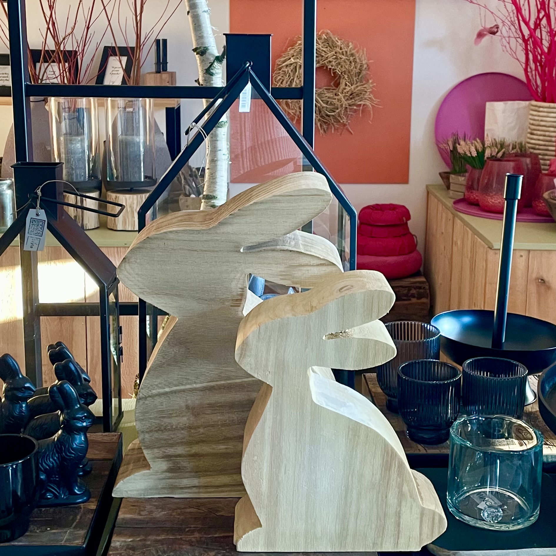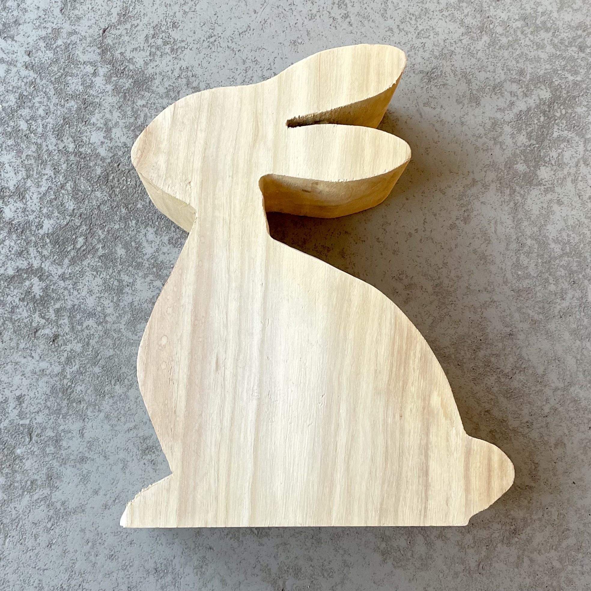 Natur-Holzhase zum Dekorieren mit kleinen Unebenheiten, unbehandelt.