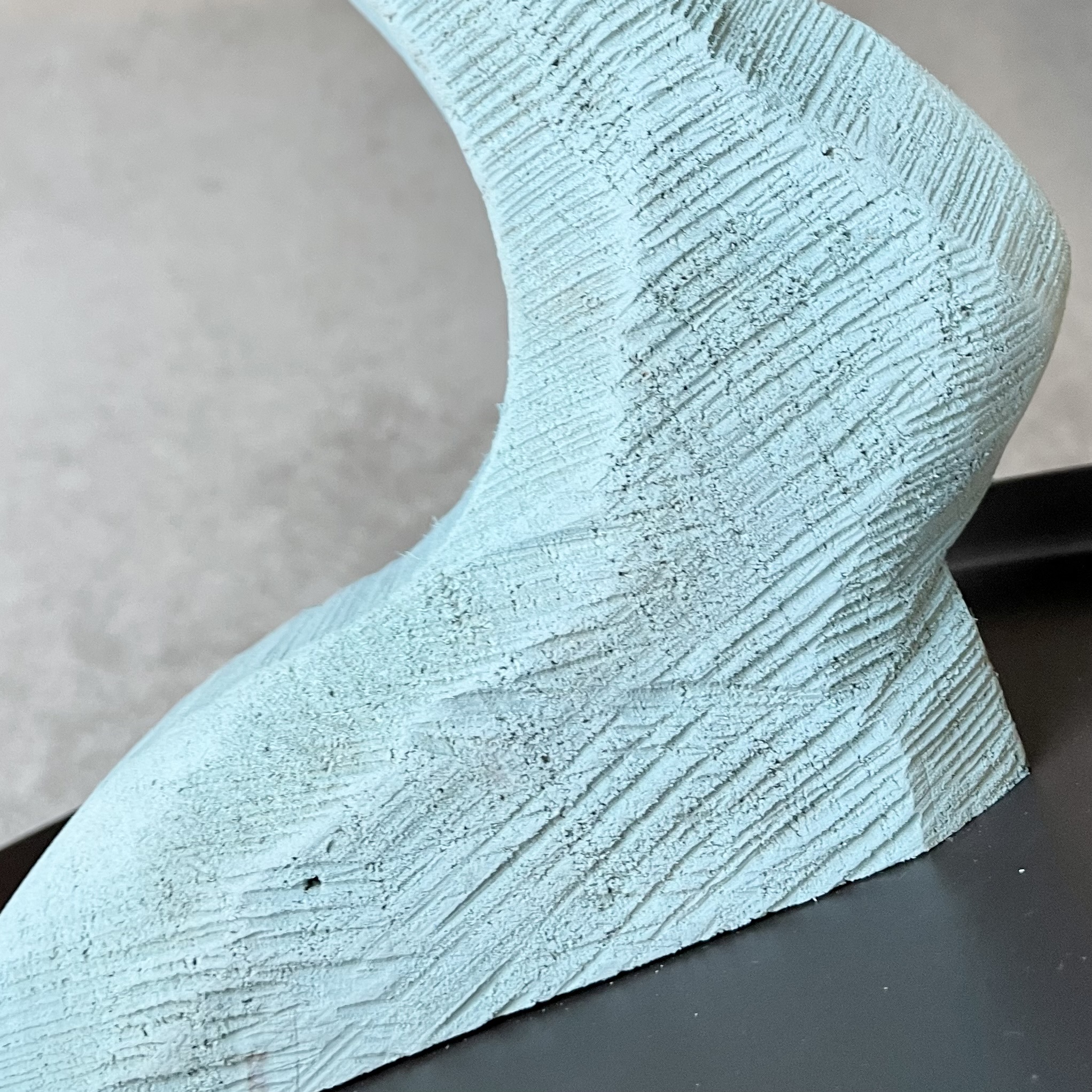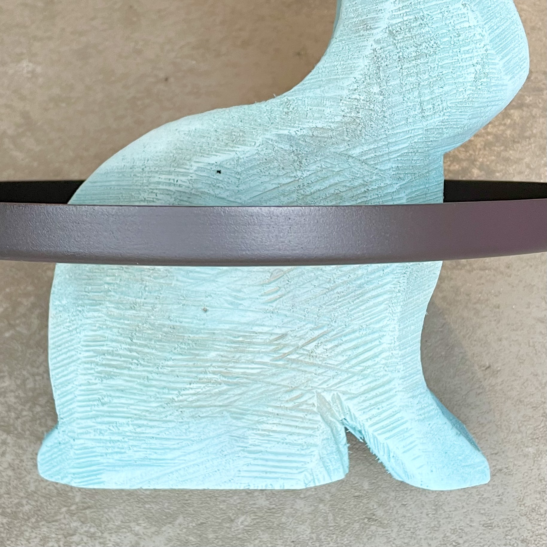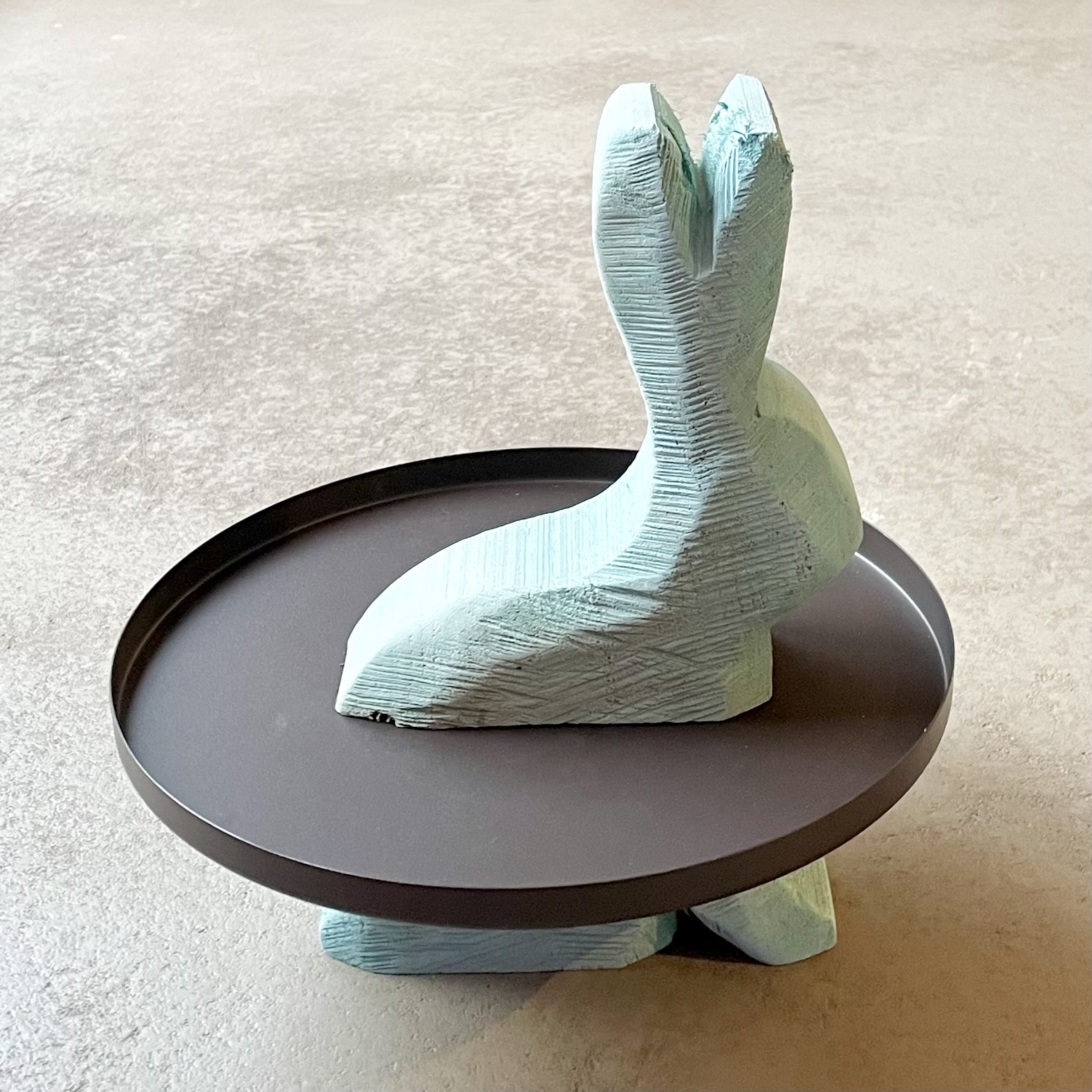 Holz/Metall-Etagere "Hase" H35cm, eisenbraun/blau