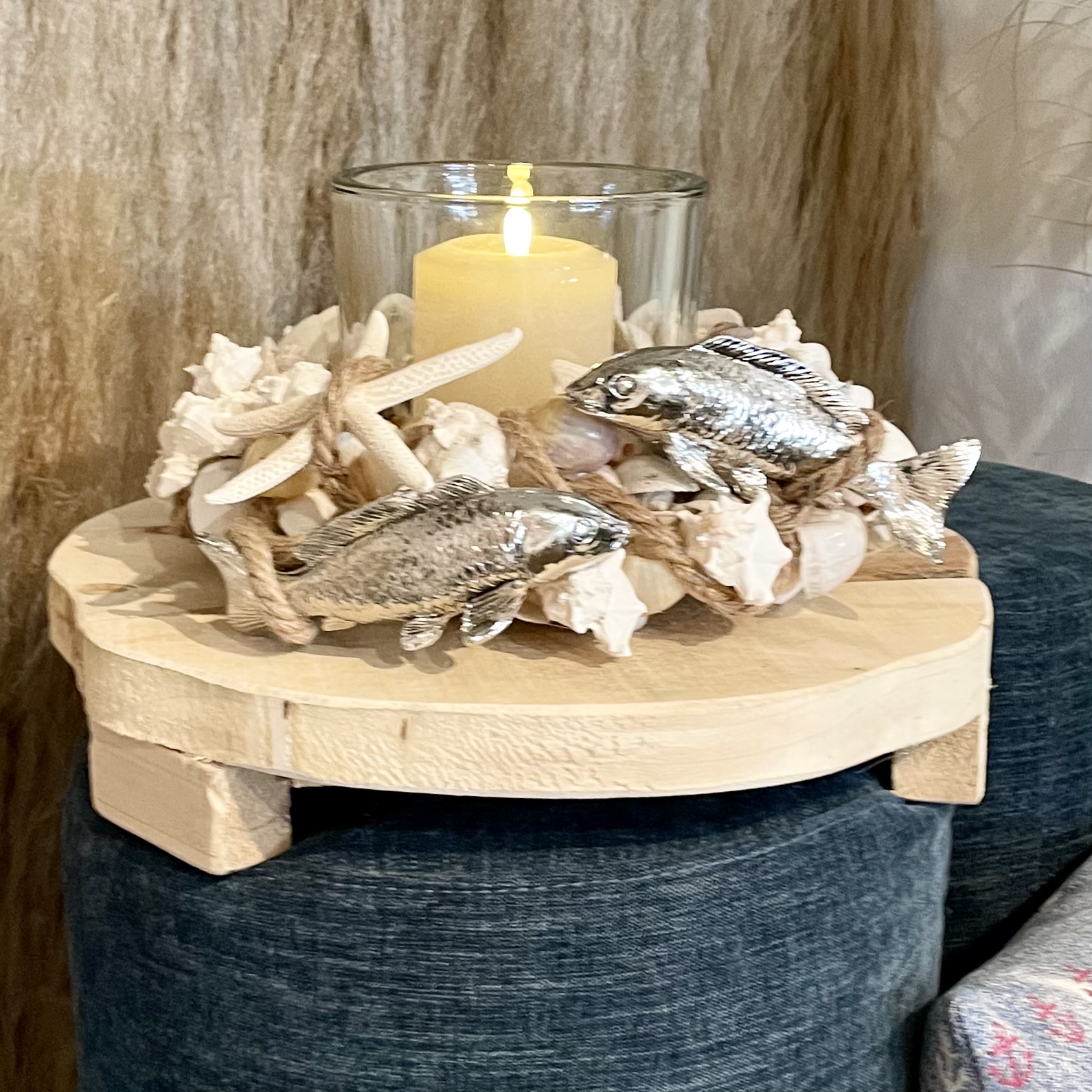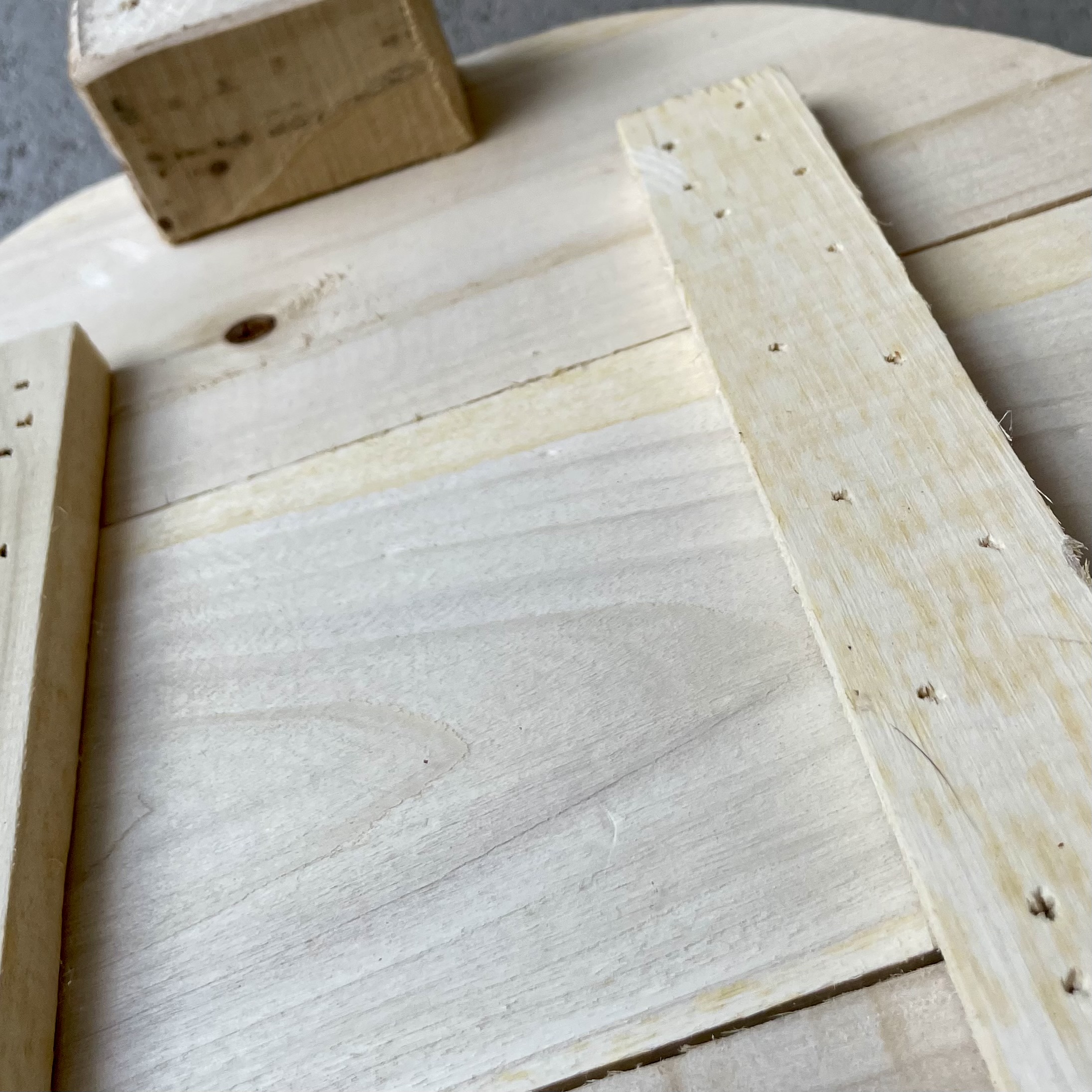 Holztablett rustikal mit drei Beinen, perfekte Unterlage zum Gestalten.