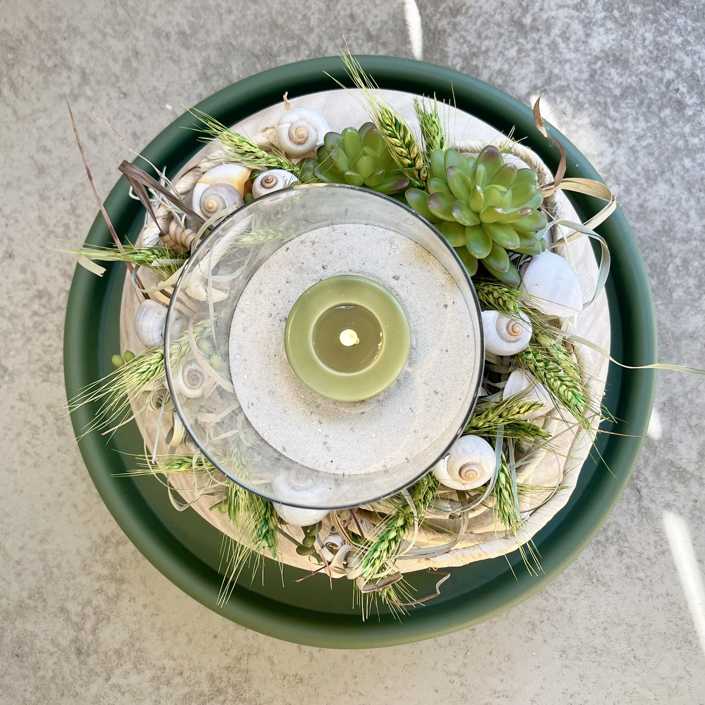 Sommerlich schlichter Klassiker, dieser Kranz passt überall hin, weil er so natürlich gestaltet ist mit Sukkulenten,