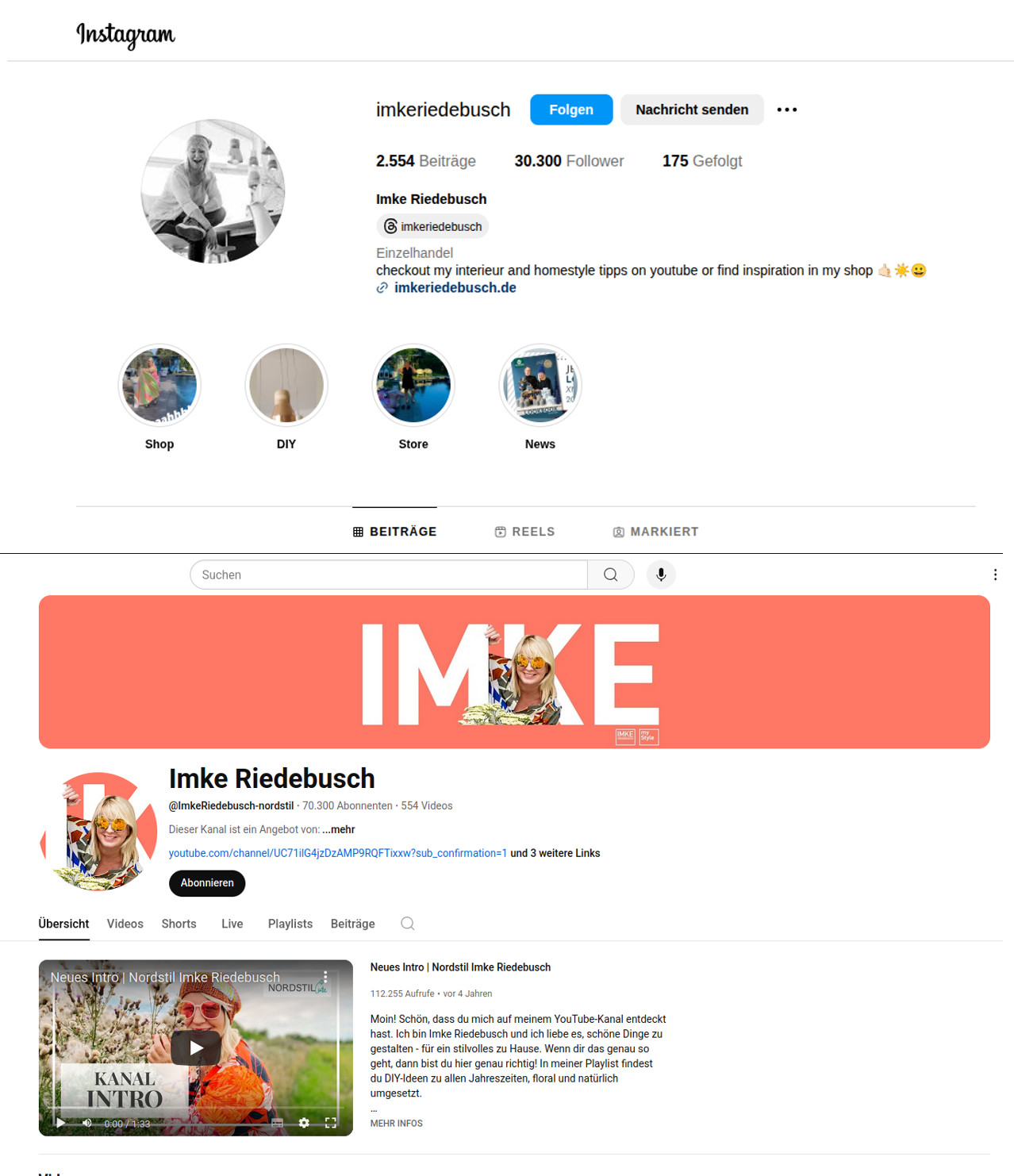 Planung, Aufbereitungen, Produktion von Social-Media-Content (Fotos/Text und Video) für Instagram, Facebook, Pinterest etc.