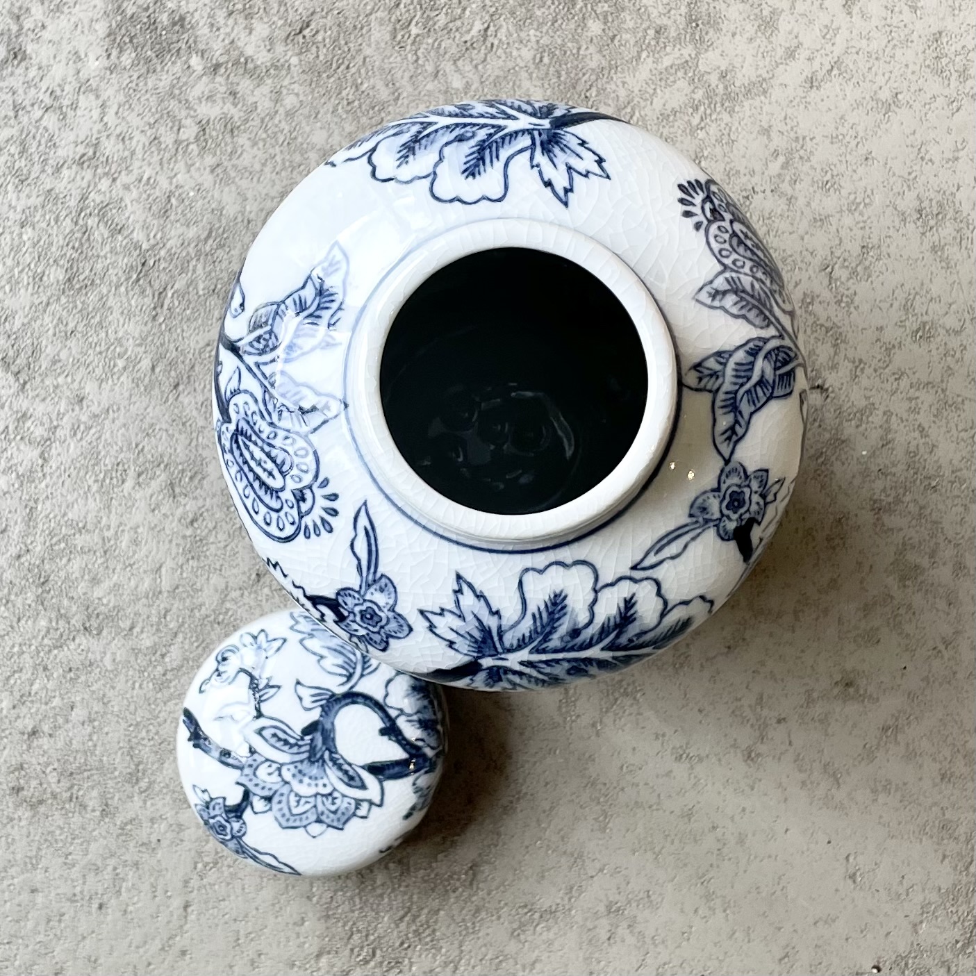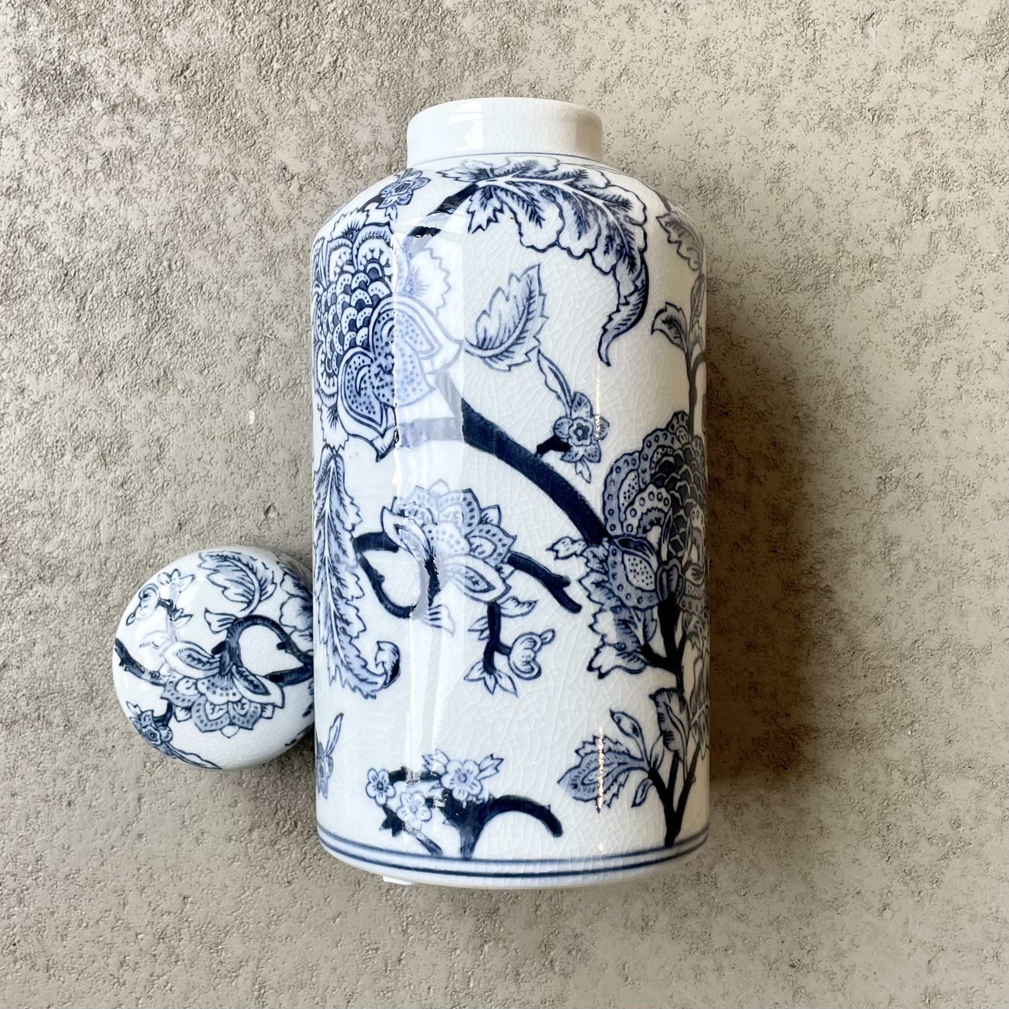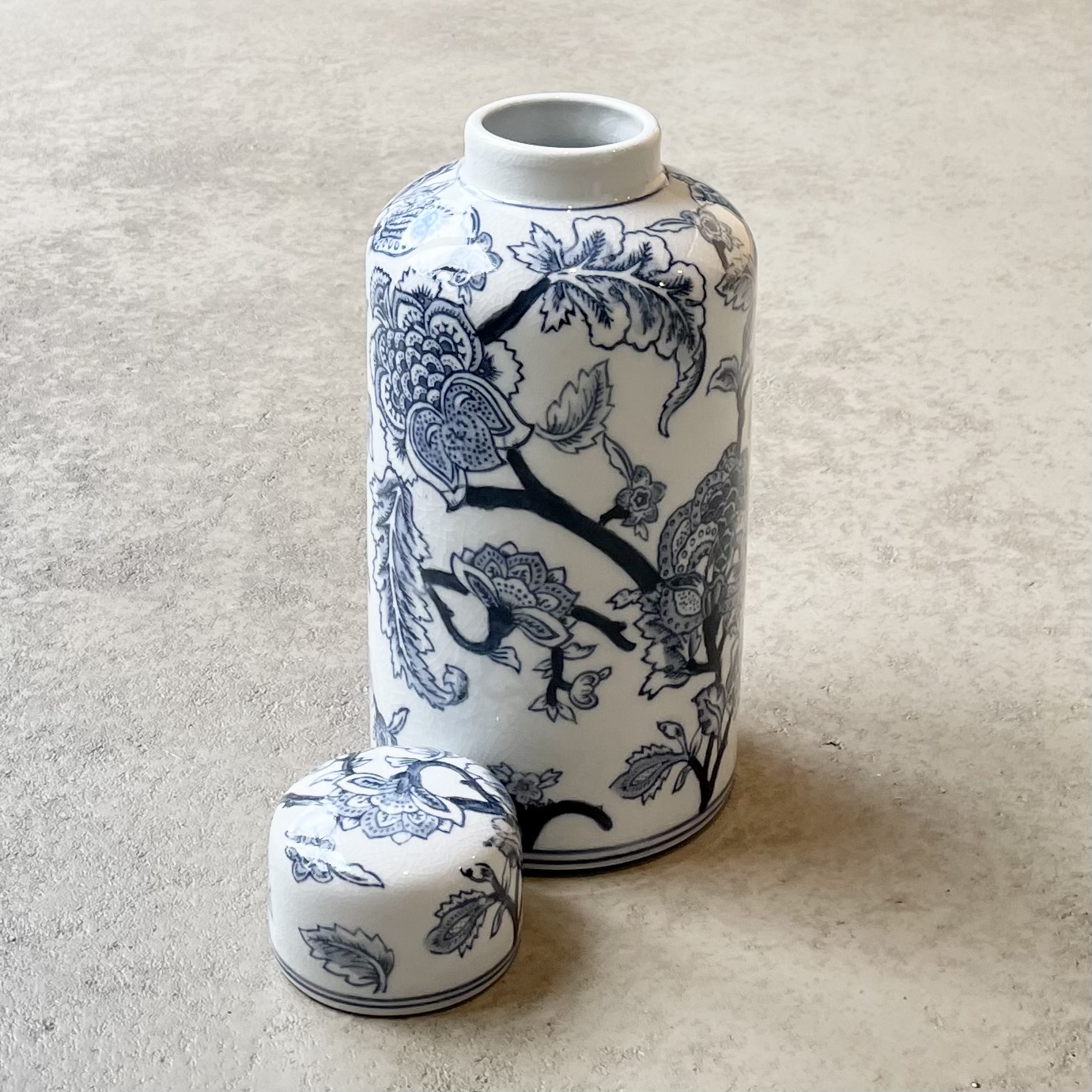 Keramik-Vase "Chinoiserie" mit Deckel D14cm, H29cm, blau