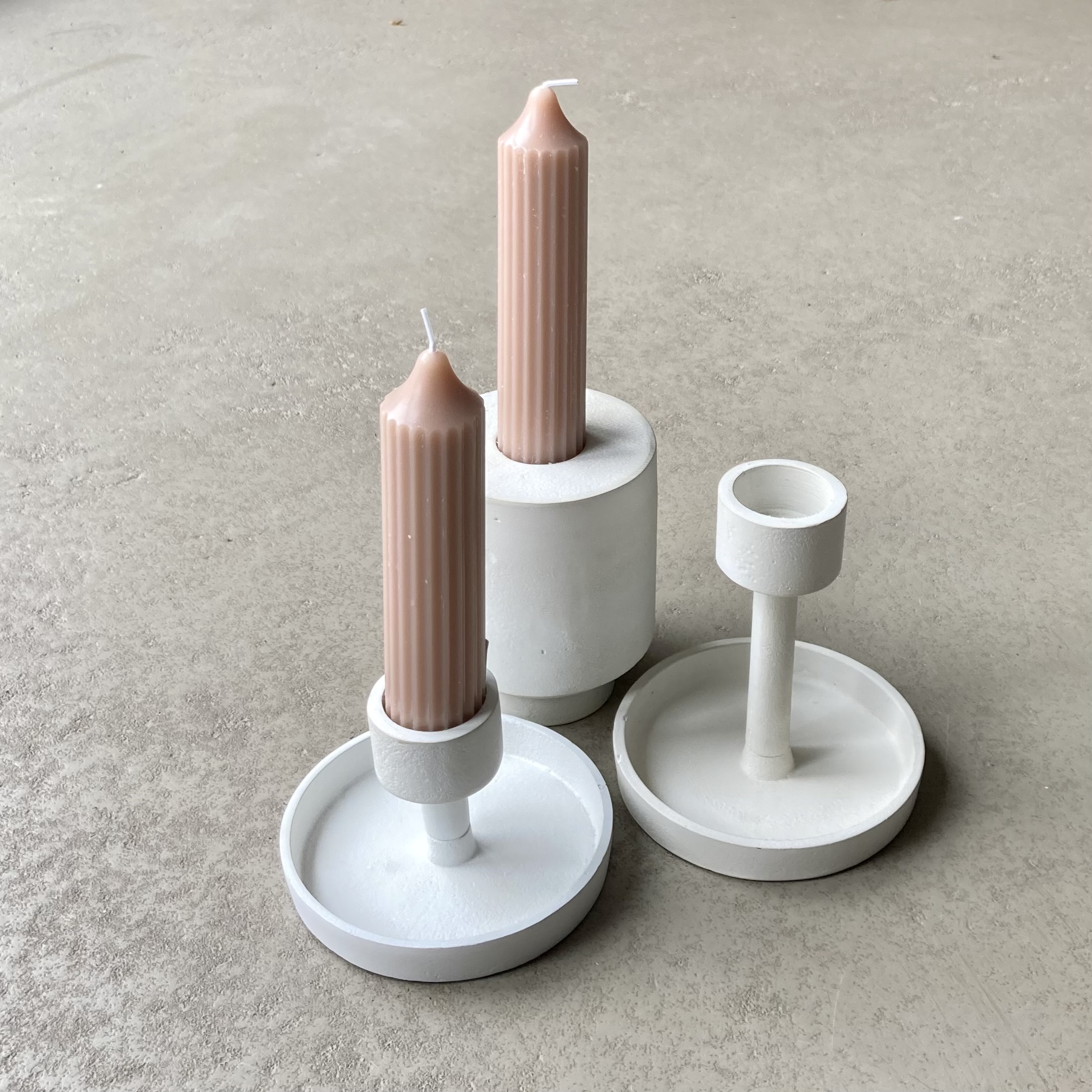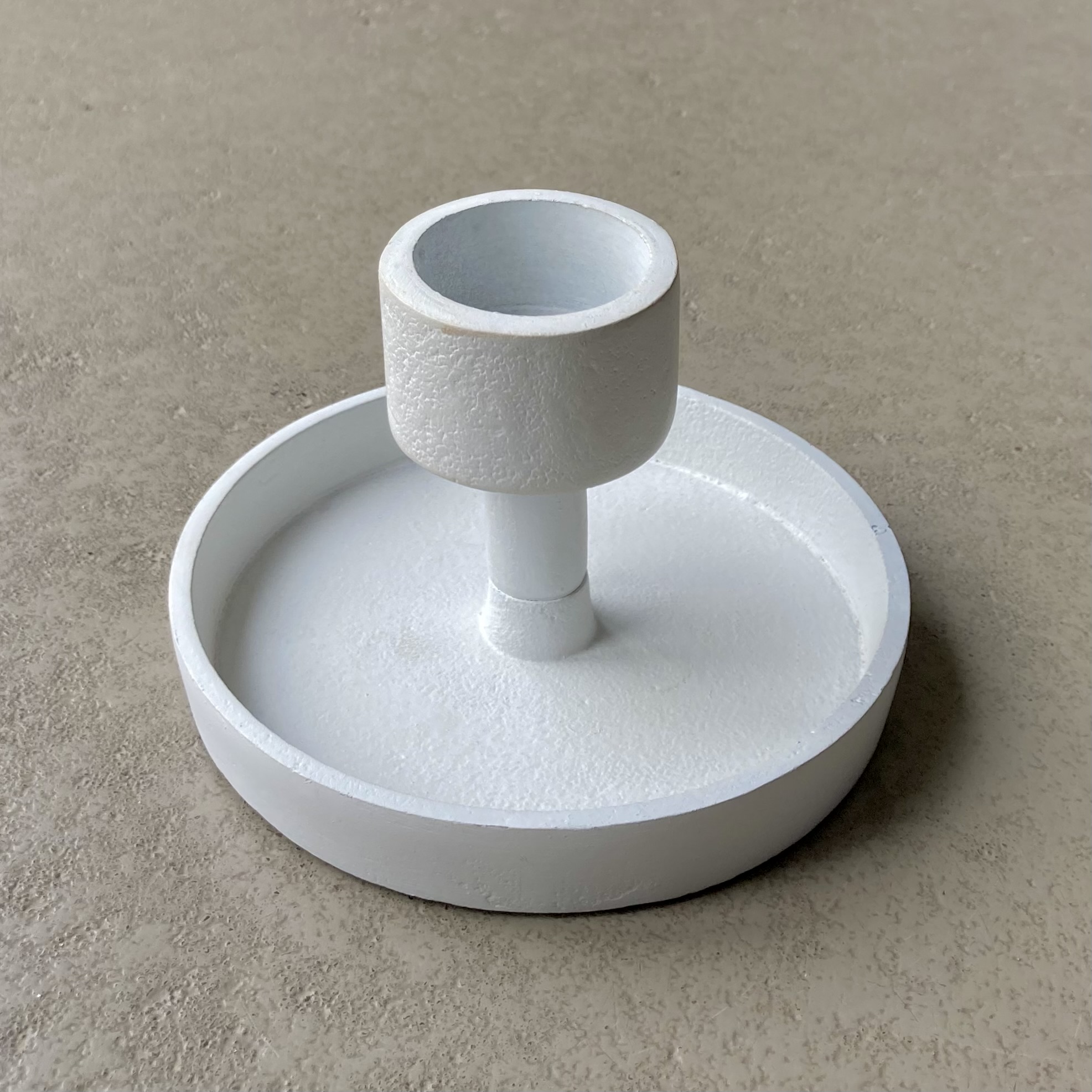 Kerzenhalter aus Gusseisen in Weiß passend zu unseren Stabkerzen mit 3cm Durchmesser. In zwei Größen lieferbar, als Gruppe besonders dekorativ.
