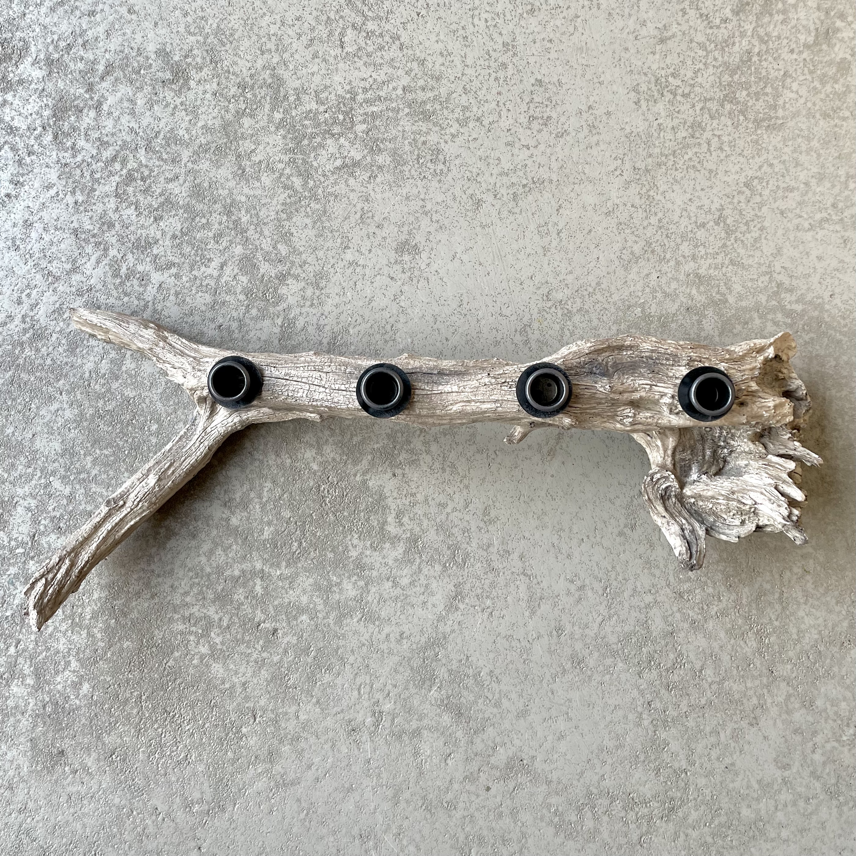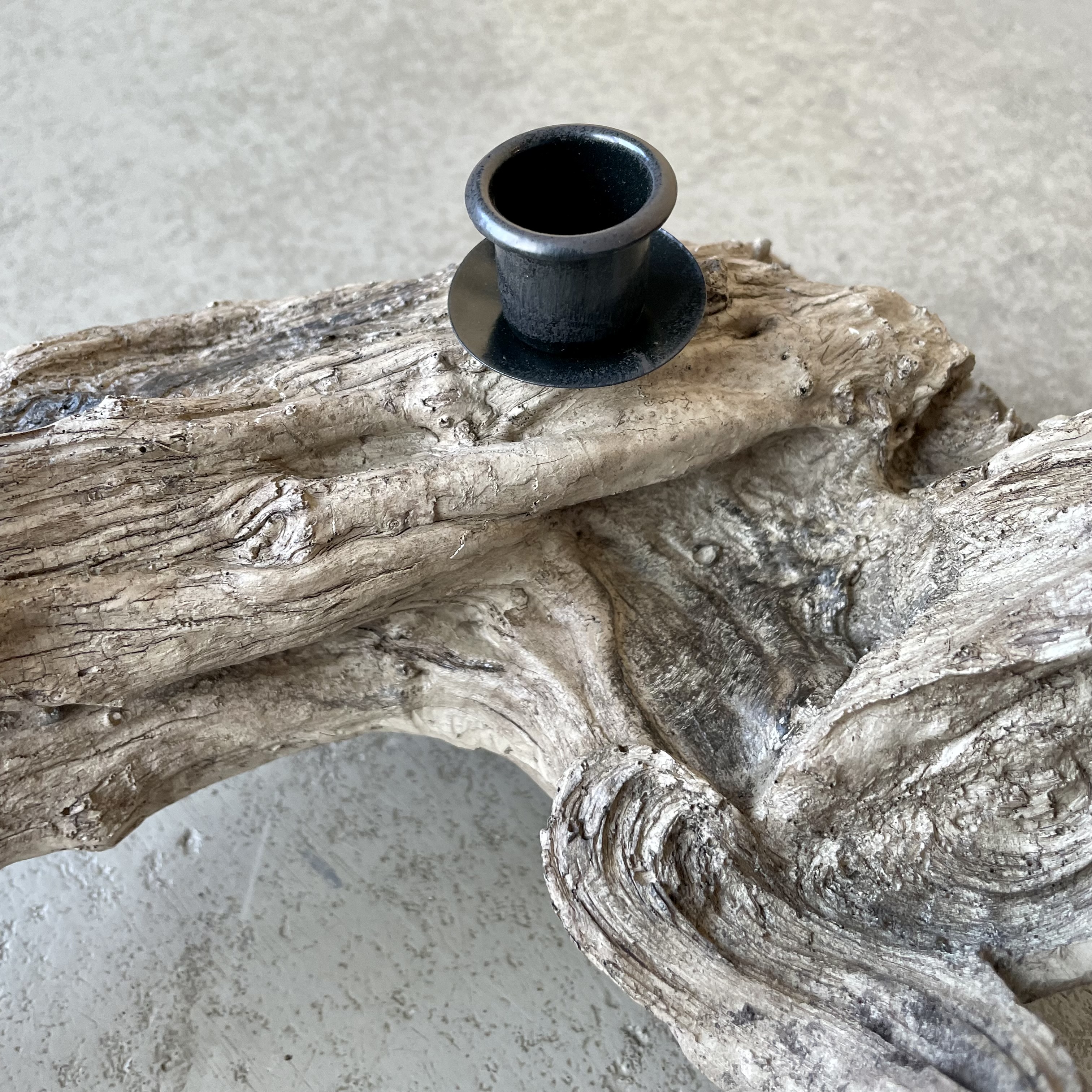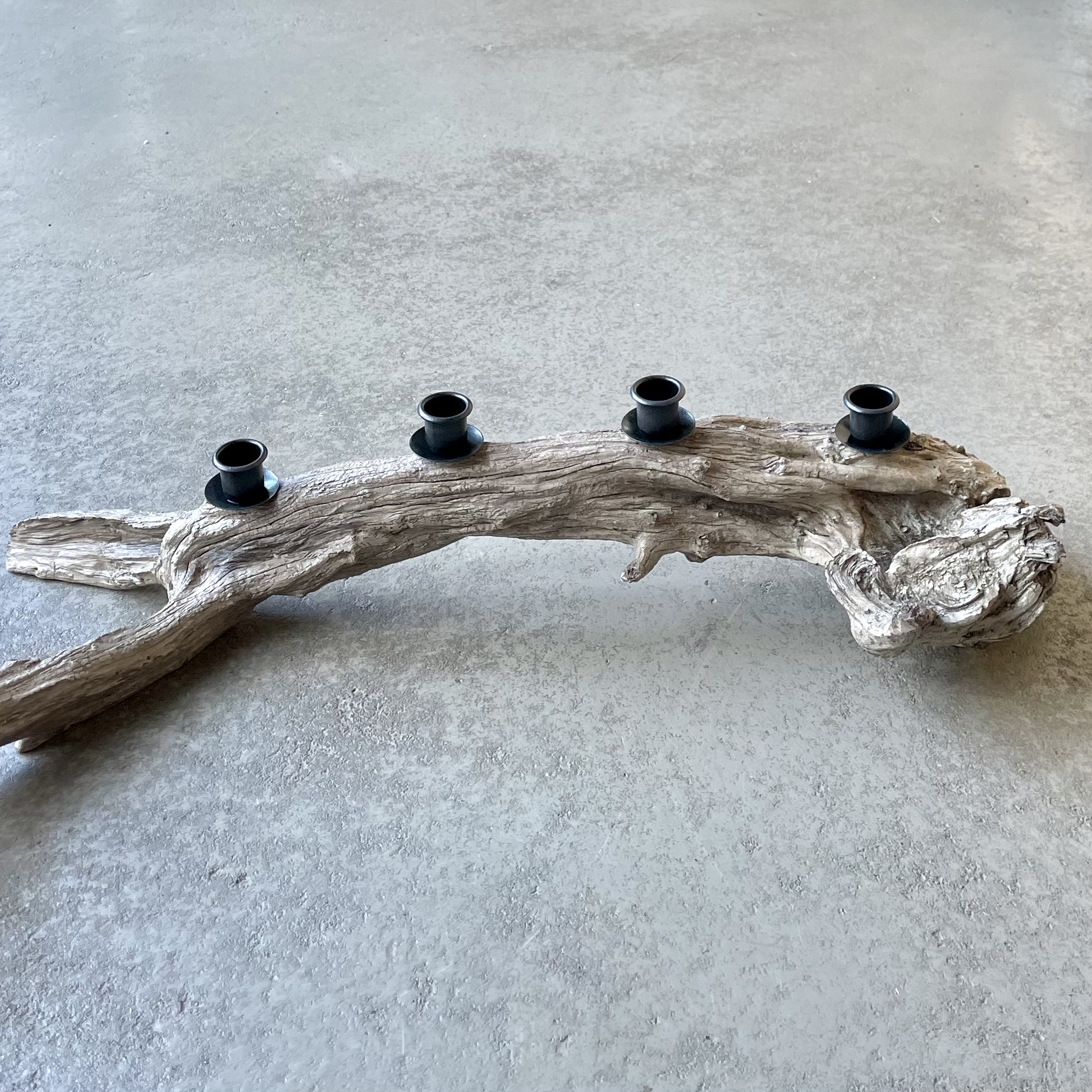 Kerzenhalter in Wurzeloptik aus Polyresin mit vier Haltern für handelsübliche Stabkerzen. Lieferung ohne Kerzen.