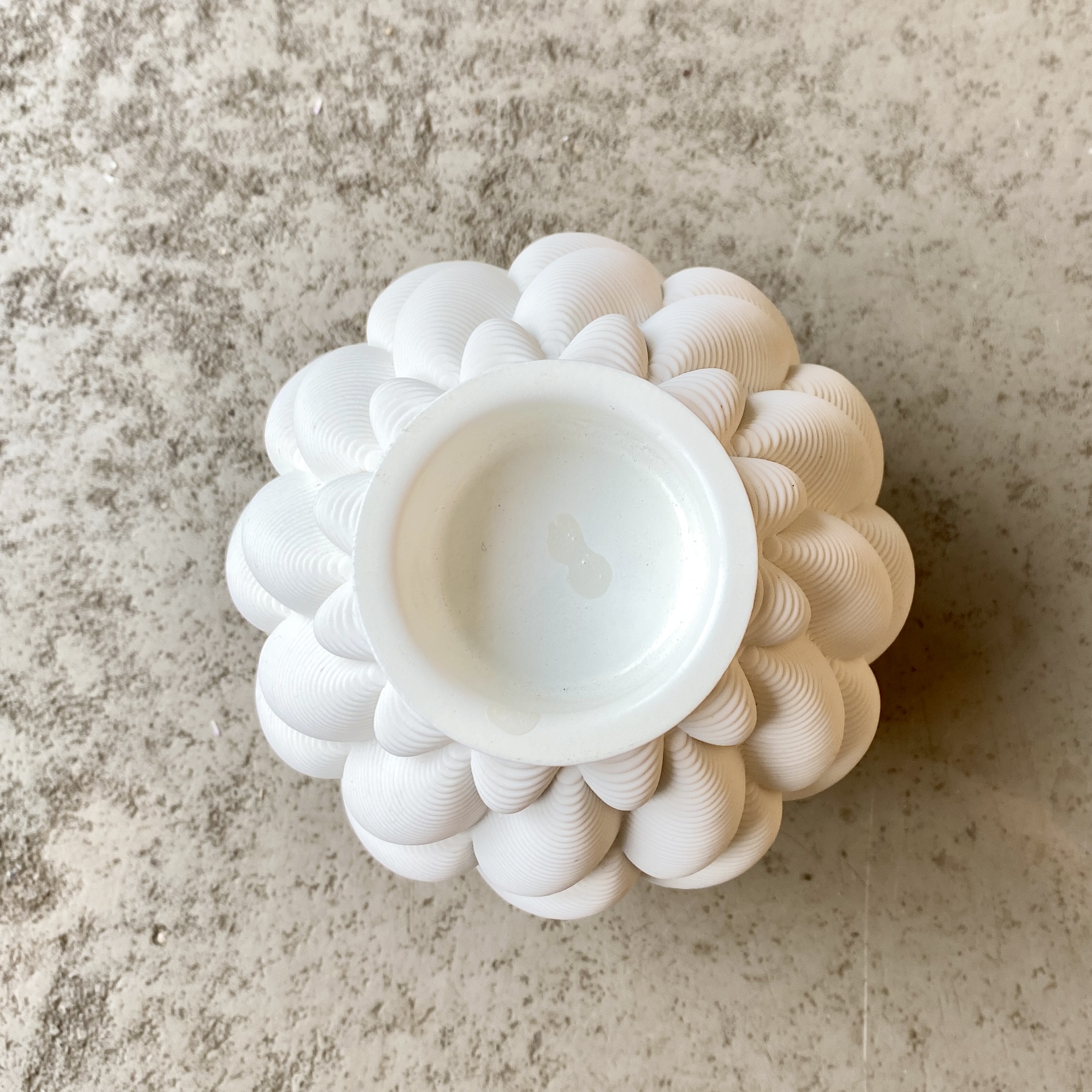 Kerzenständer Atlantis aus Keramik, filigran gearbeitet in weiß, 11cm hoch. Geeignet für Kerzen mit einem Durchmesser bis 3,7cm.