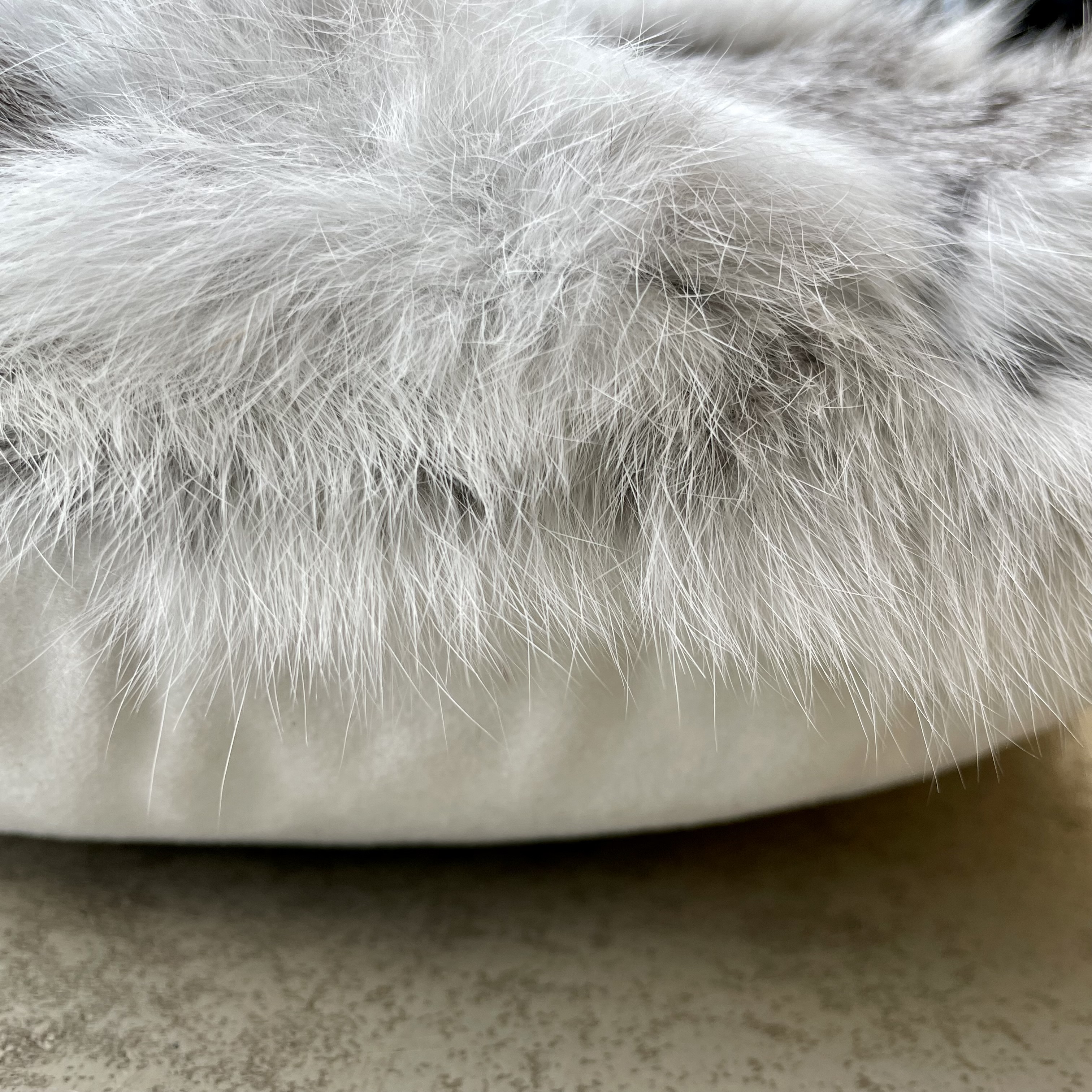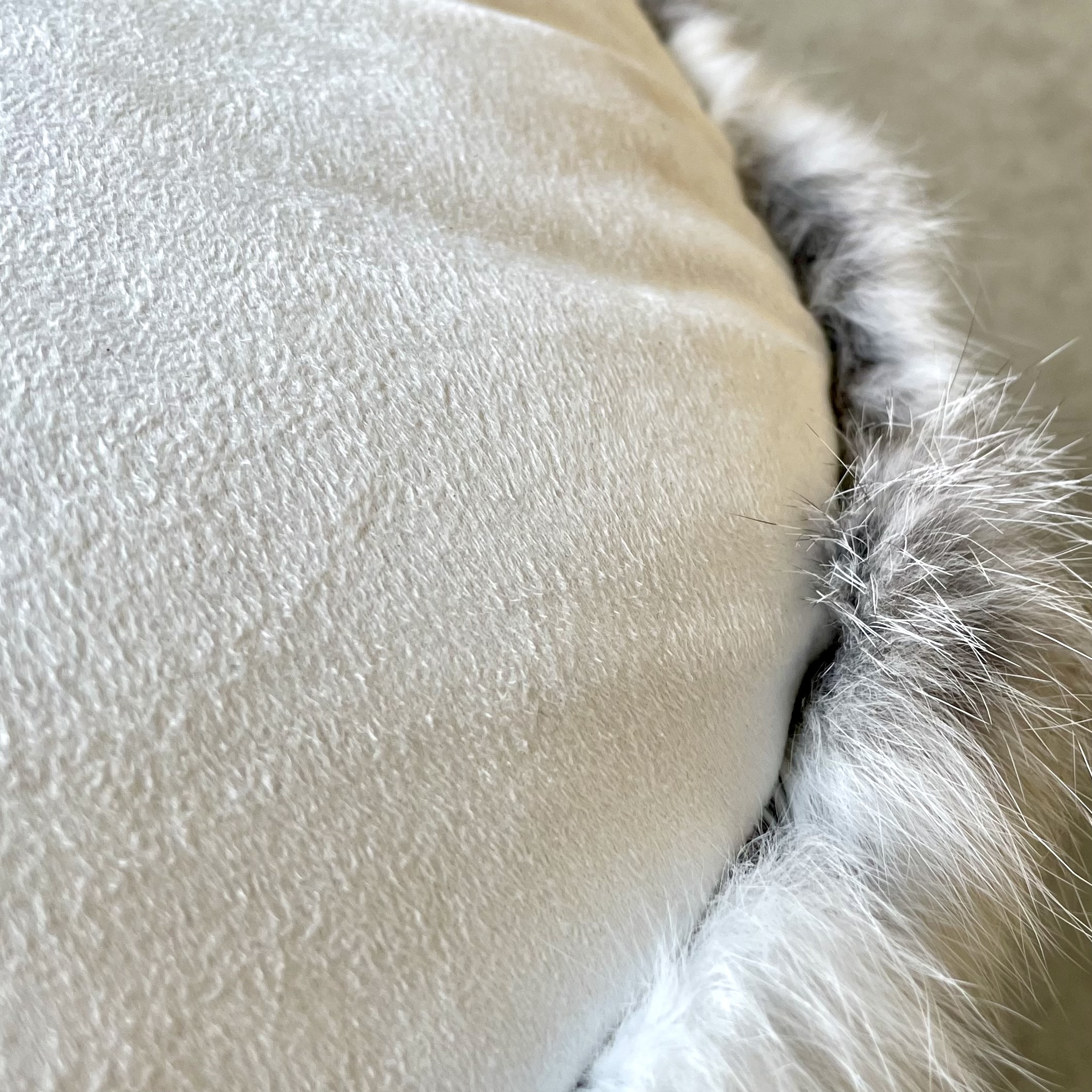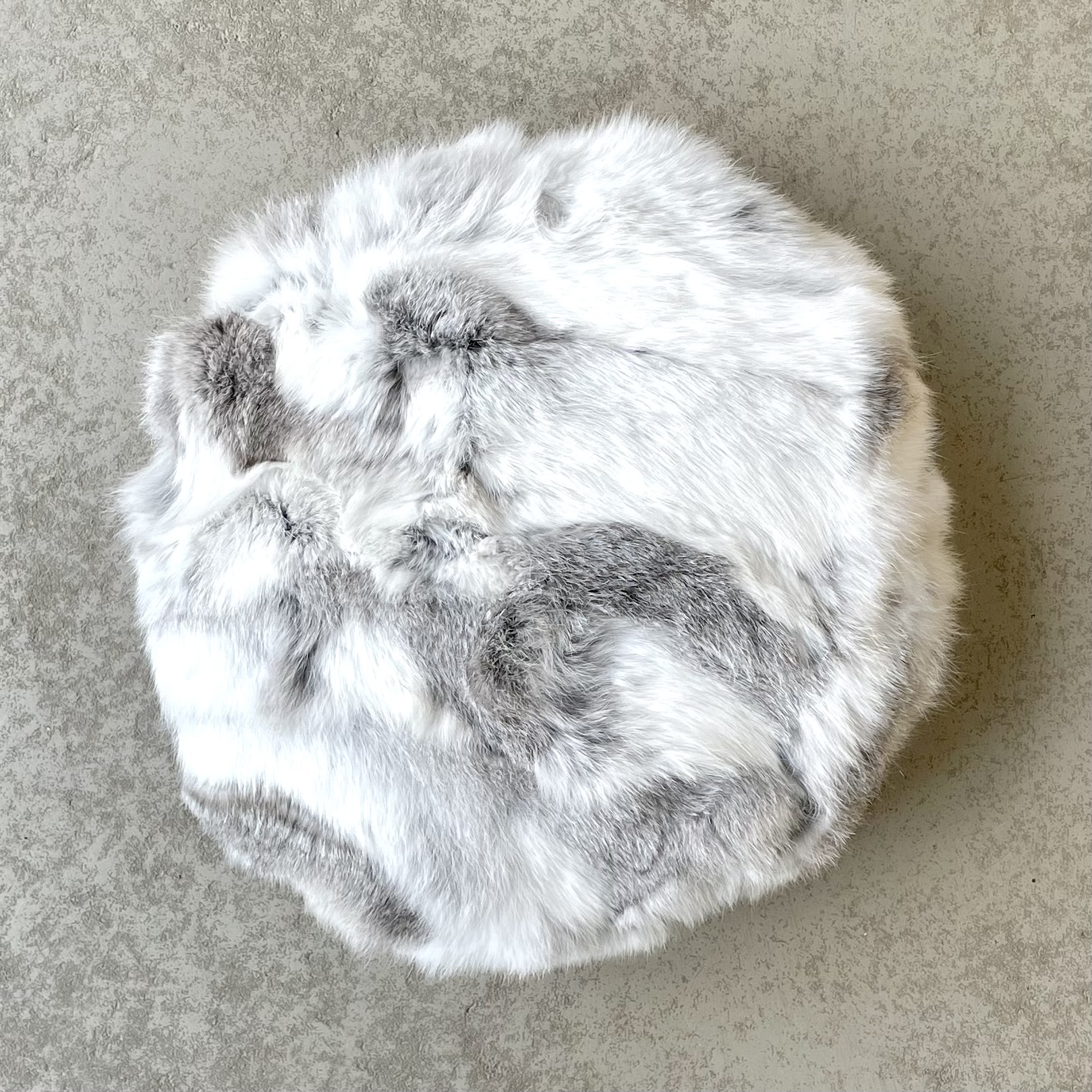 Rundes Kissen, Bezug aus Kaninchenfell.