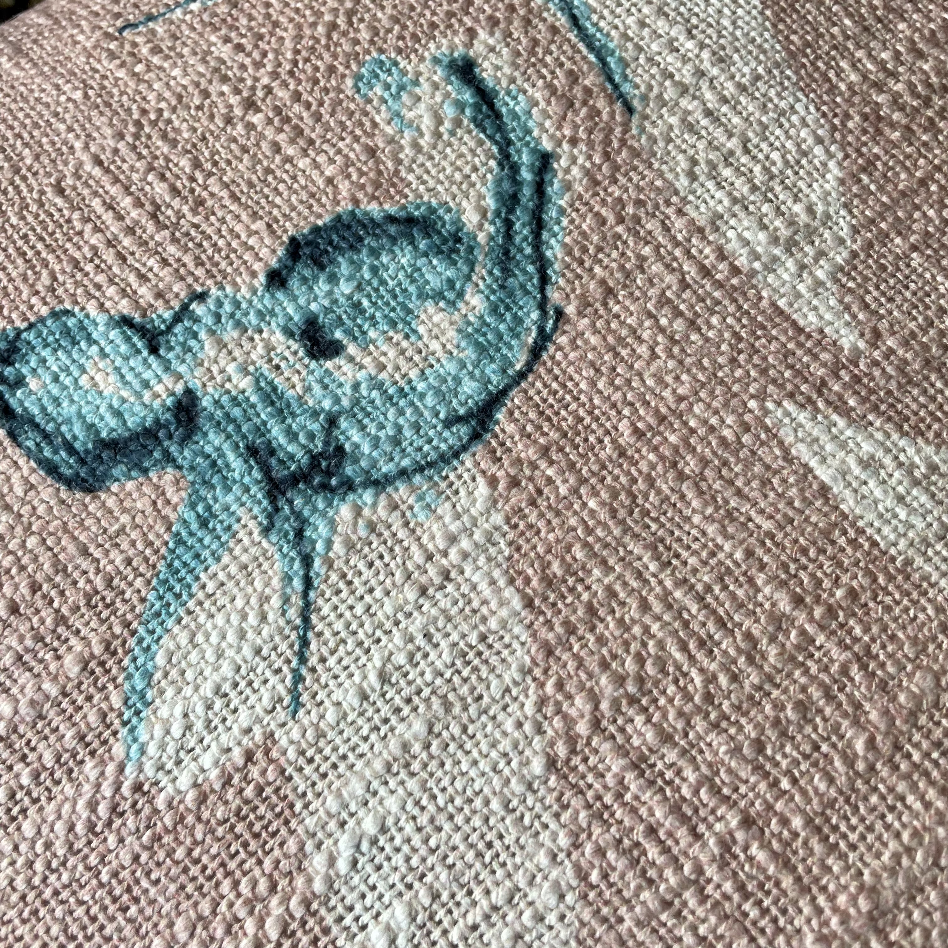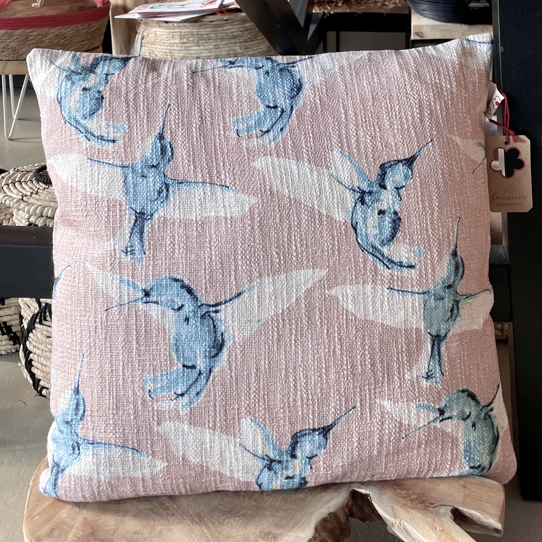 Tolles Kissen in Weboptik und schöner strahlender Farbe mit fliegenden Vögeln. Sieht in Kombination mit anderen Varianten aus dieser Kollektion sehr harmonisch und frisch aus.