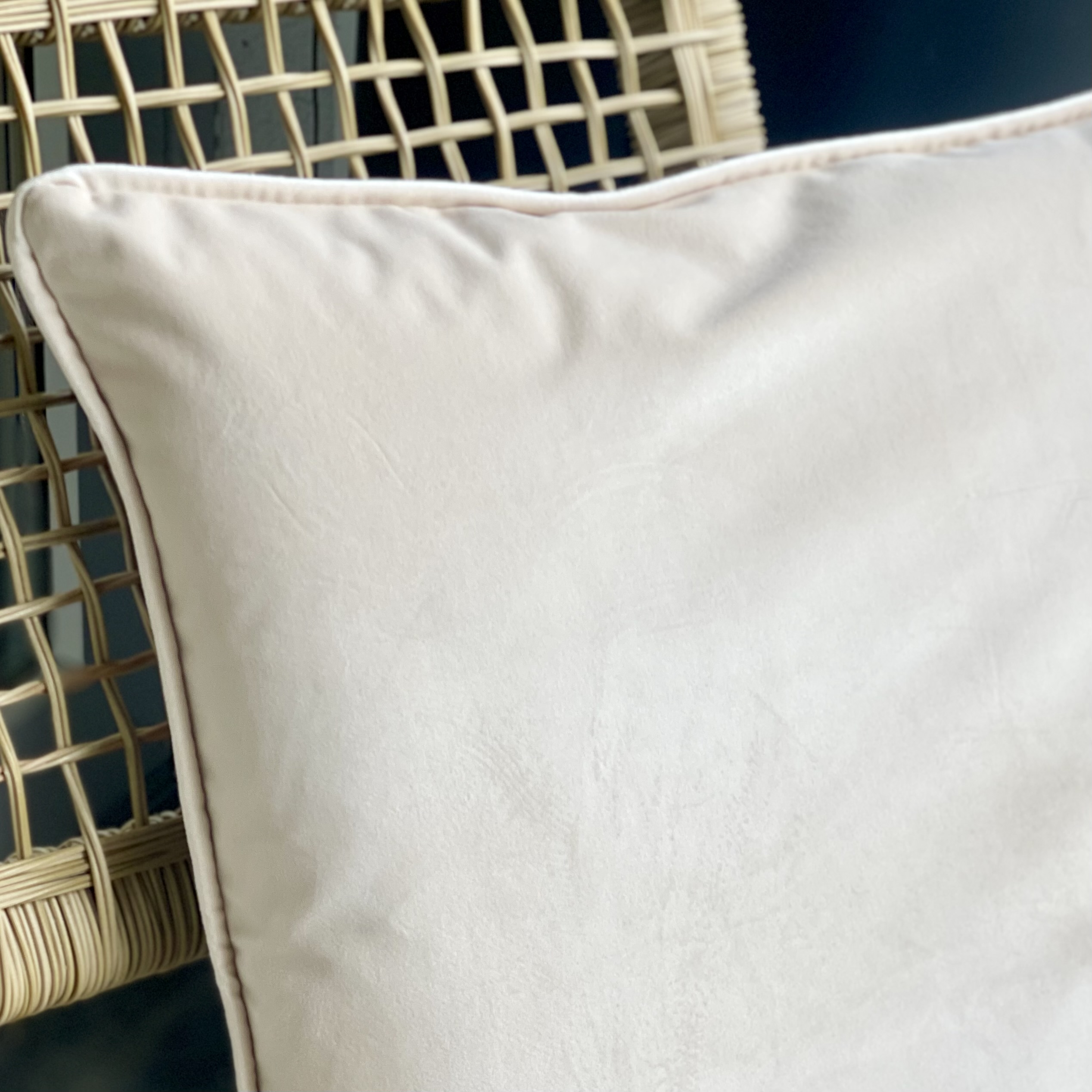 Winterliches Kissen aus Samt, vorne dunkel hinten hell, Taubenblau/Creme.