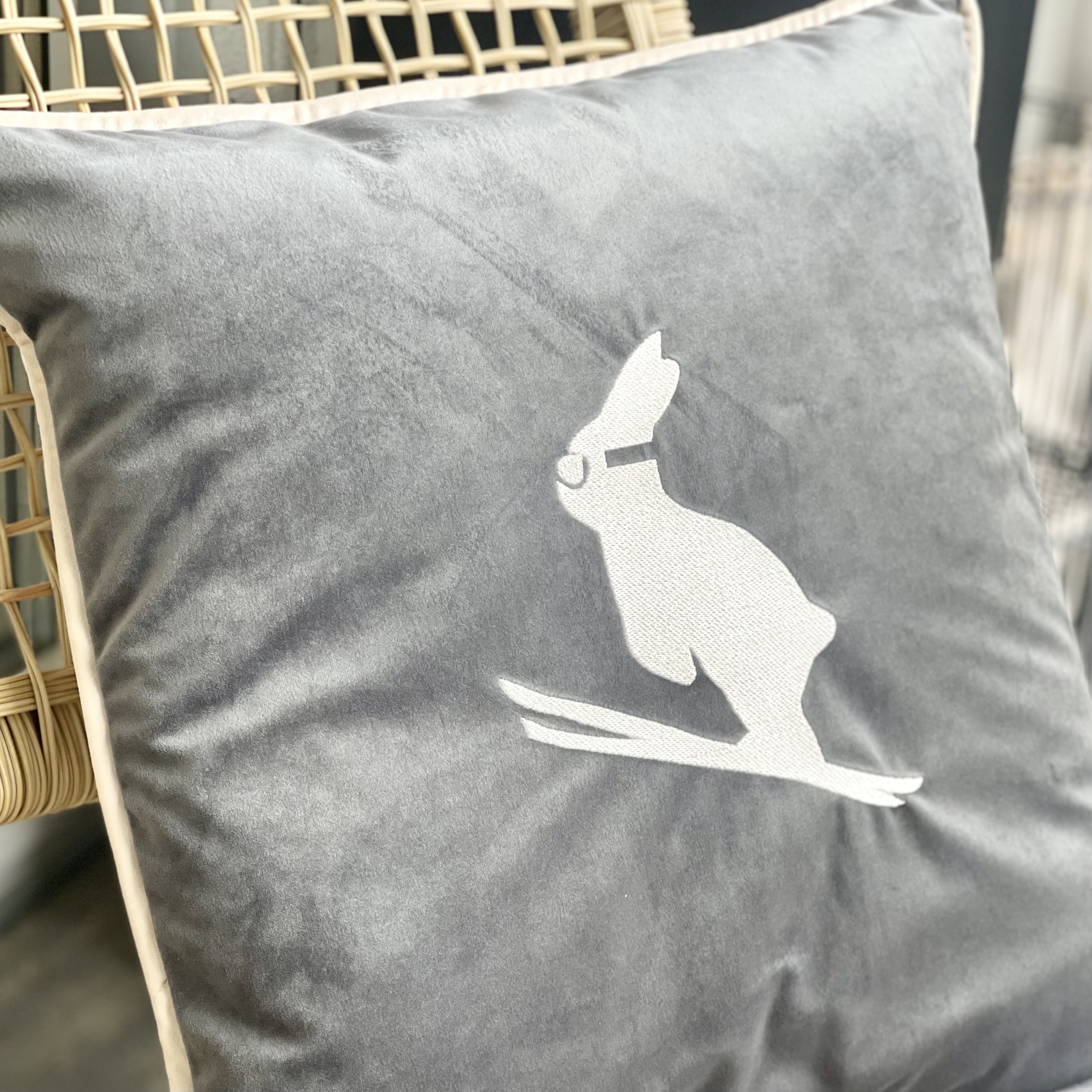 Kissen mit Füllung "Ski-Hase" 40*40cm, grau/creme samt