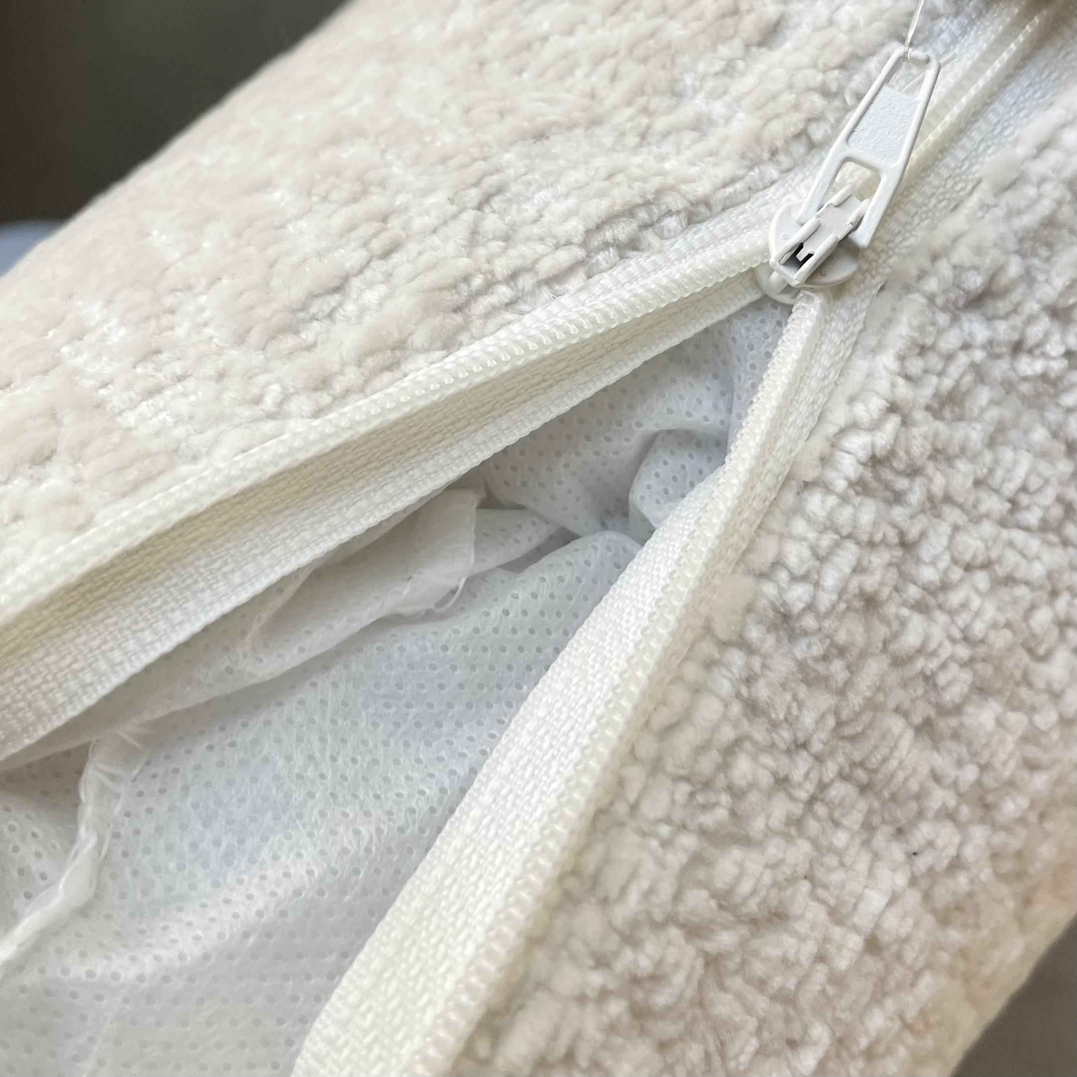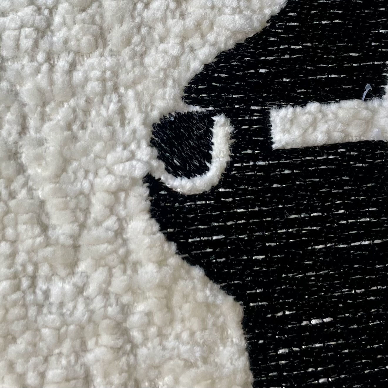 Winterliches Kissen aus Teddystoff aus Polyester in Creme mit Stickerei in Schwarz. Kleine Manufaktur aus Deutschland! Füllung Polyesterwatte