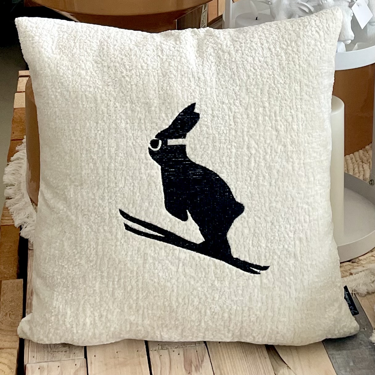 Kissen mit Füllung "Ski-Hase" 40x40cm, creme/schwarz