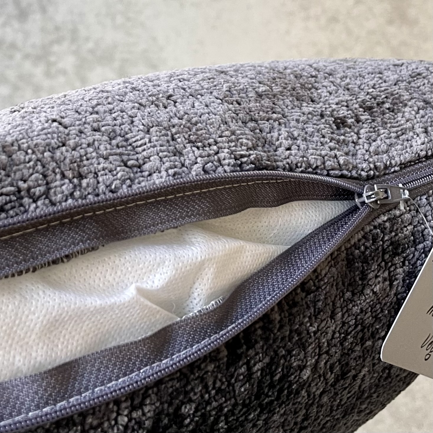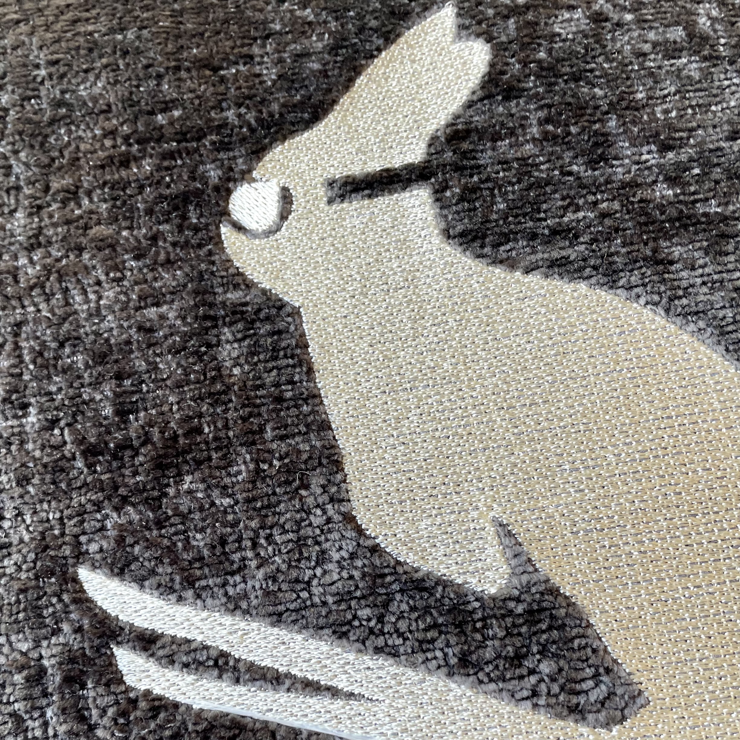 Winterliches Kissen aus Teddystoff aus Polyester in Grau mit Stickerei in Creme. Kleine Manufaktur aus Deutschland! Füllung Polyesterwatte