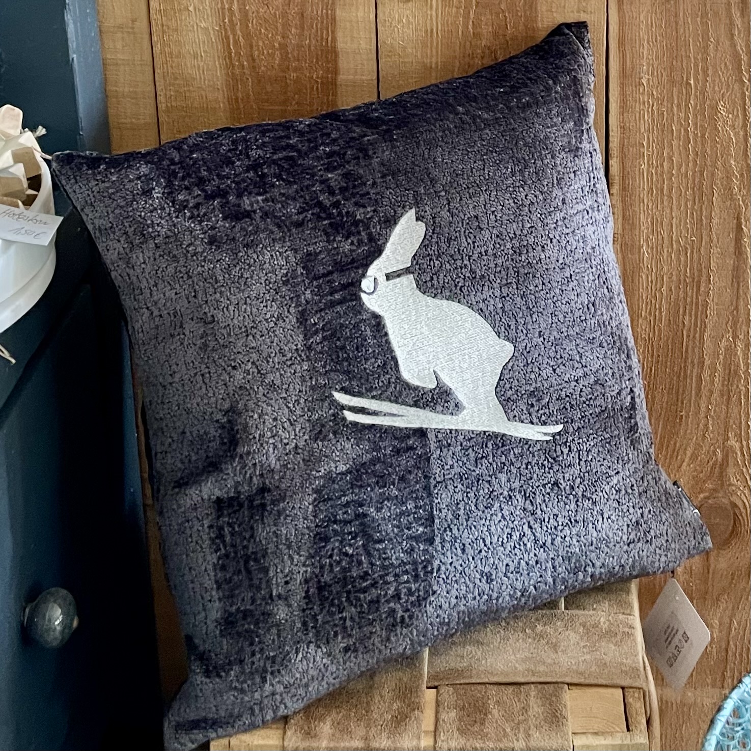 Kissen mit Füllung "Ski-Hase" 40x40cm, grau/creme