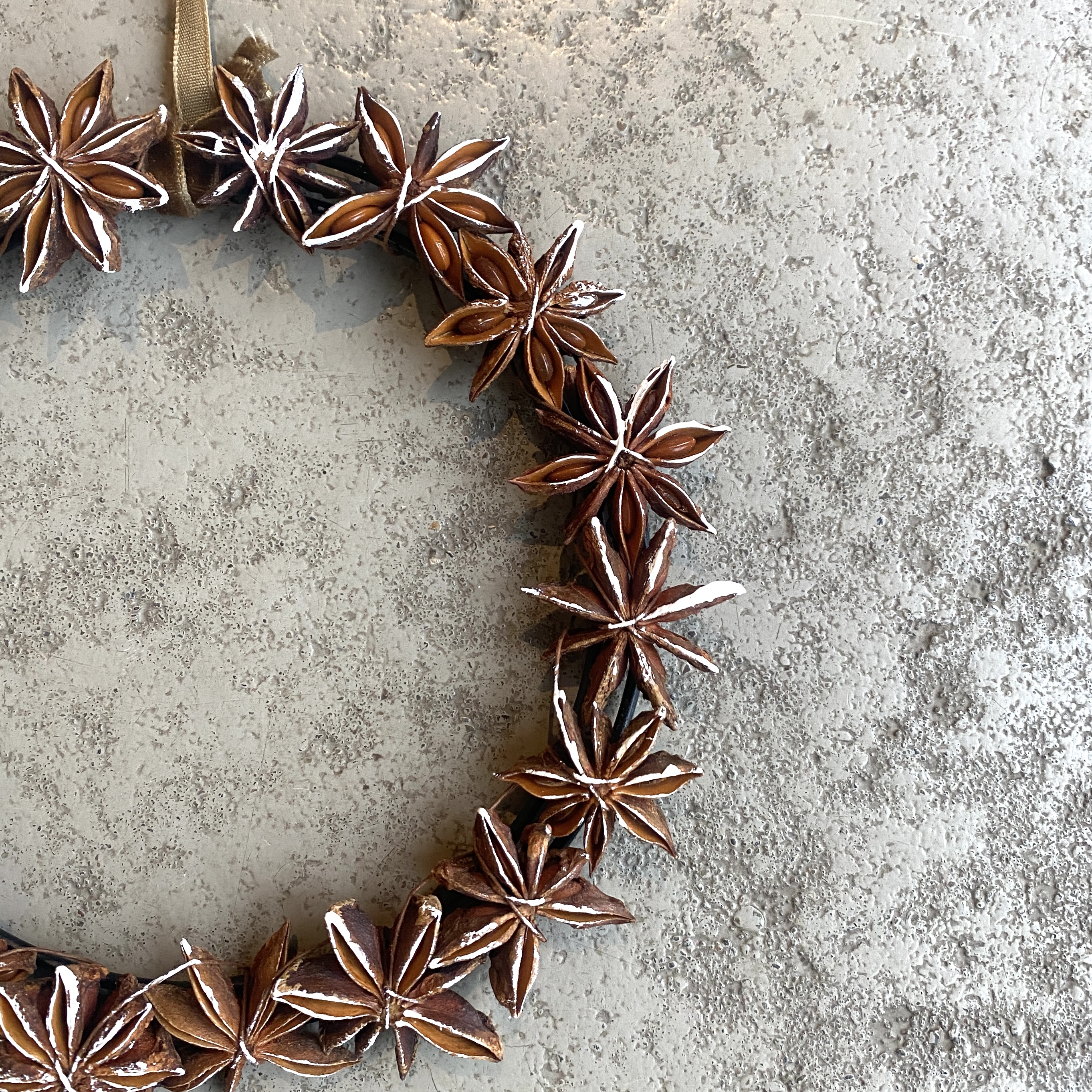 Kleiner natürlicher Kranz aus Anissternen auf Metallgestell. Duftet herrlich nach Anis.