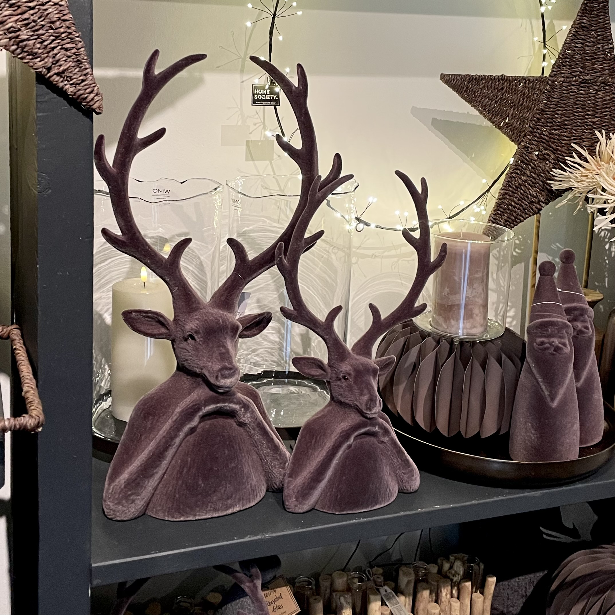 Dieser Herbsthirsch, Weihnachts- oder Winterhirsch ruht in sich und eignet sich hervorragend für Gestaltungen. Material: Kunststoff mit Velourüberzug