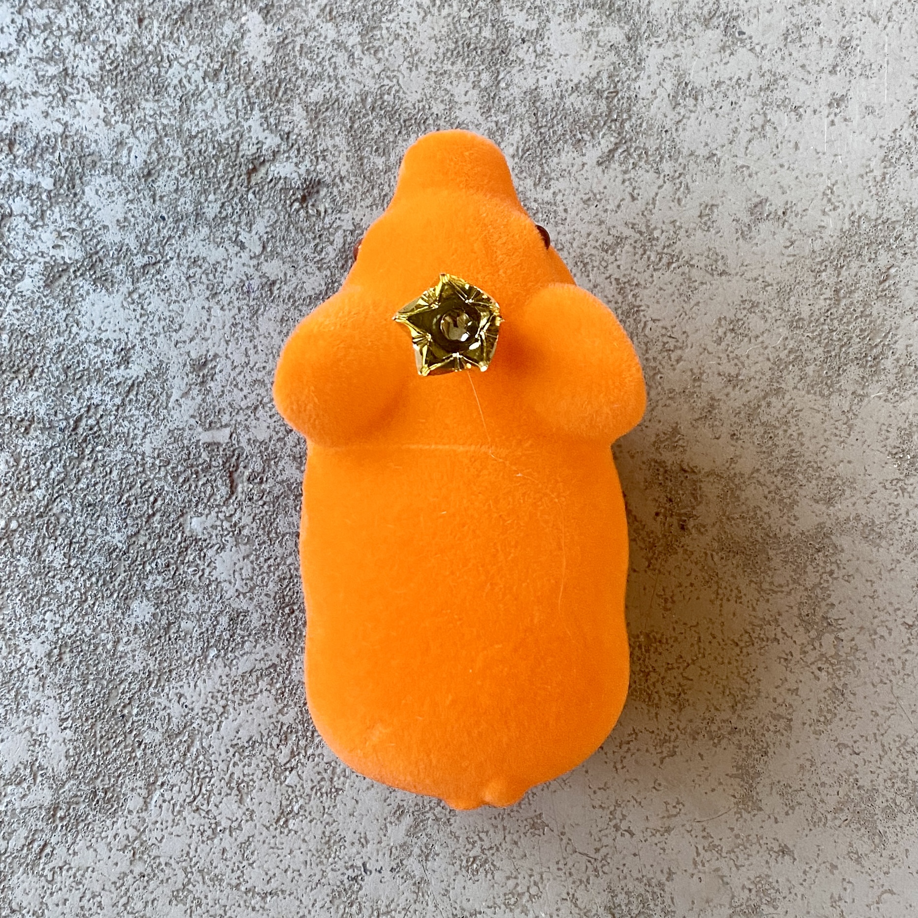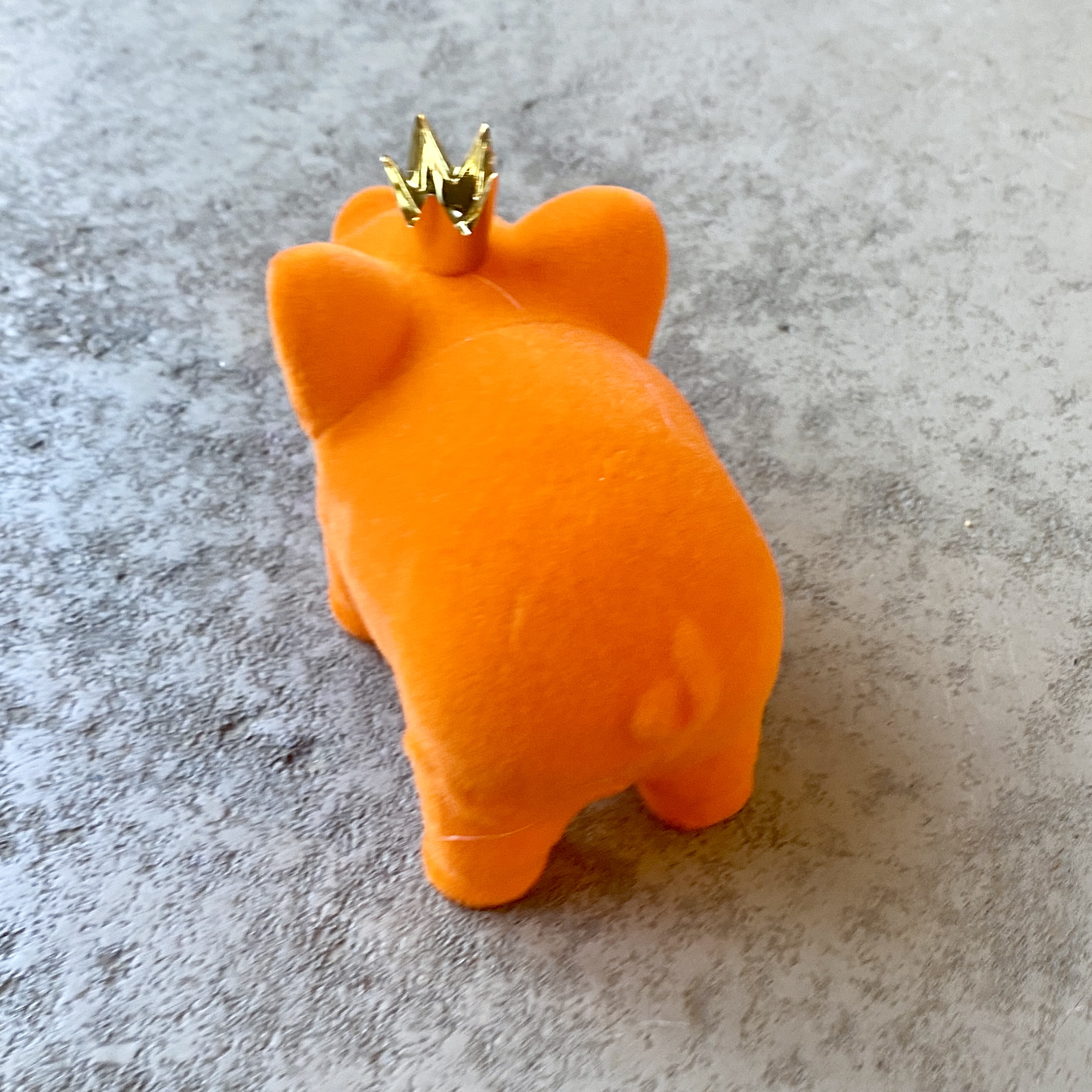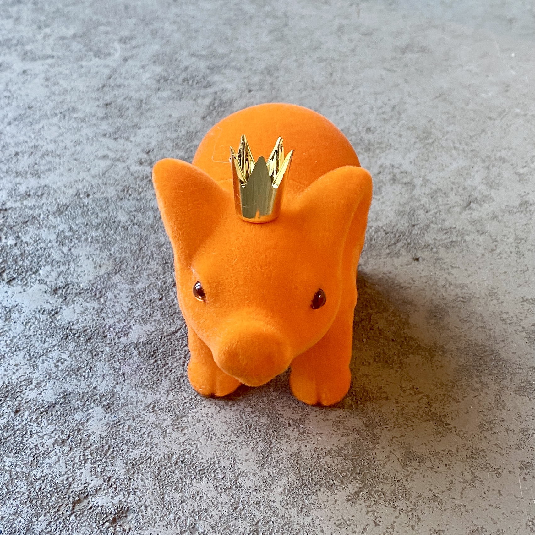 Süßes Glücksschwein mit Krone aus Kunststoff in Orange.