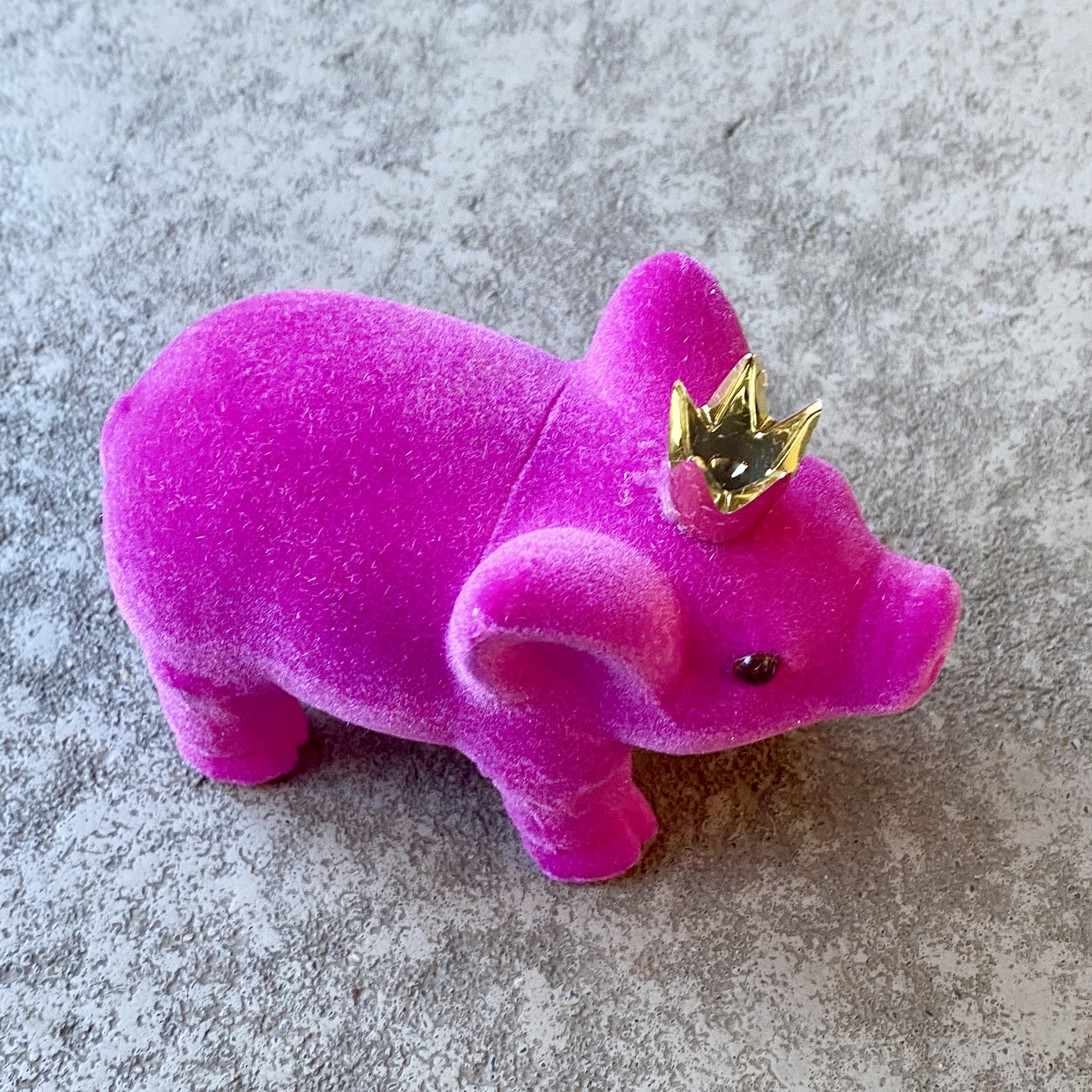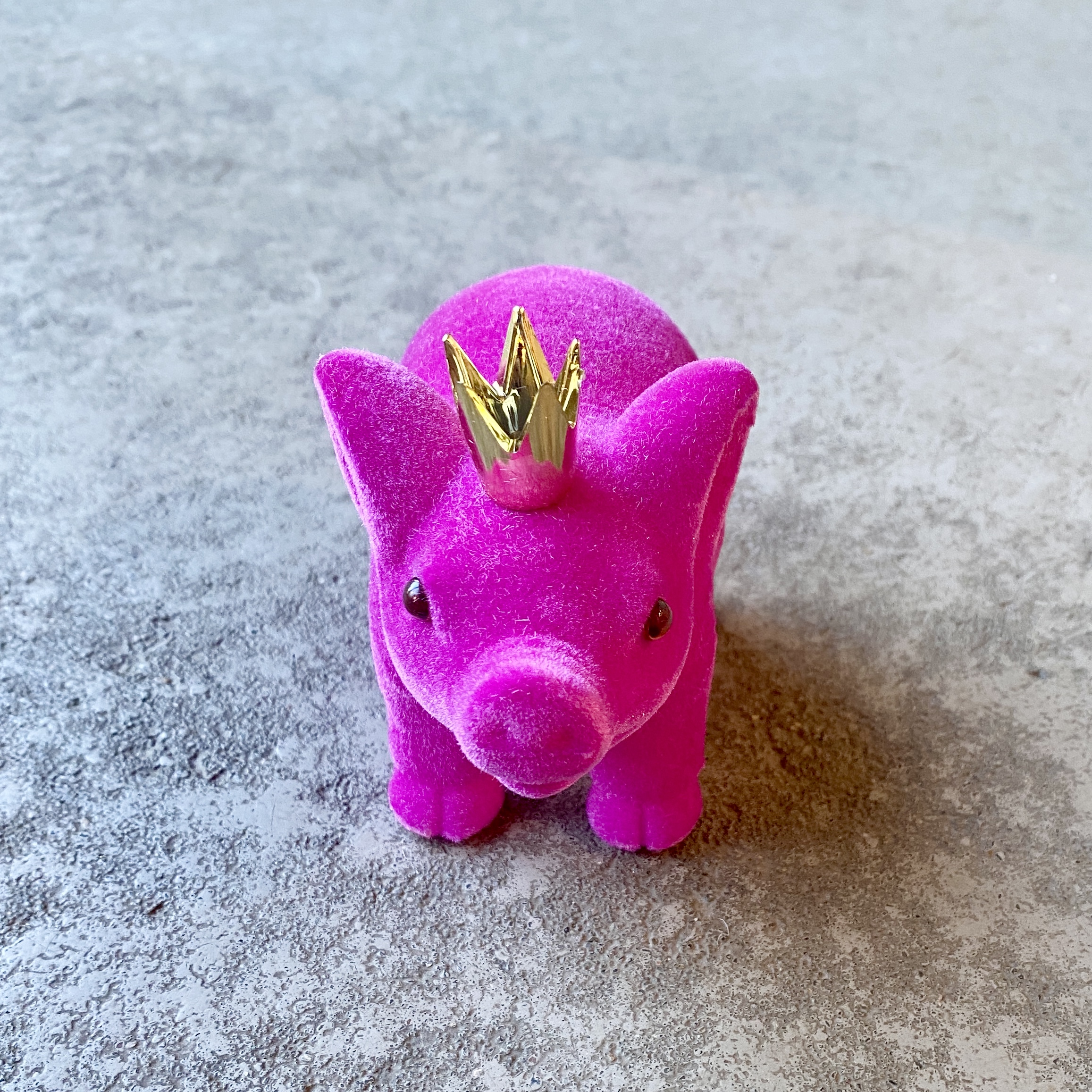 Süßes Glücksschwein mit Krone aus Kunststoff in Pink.