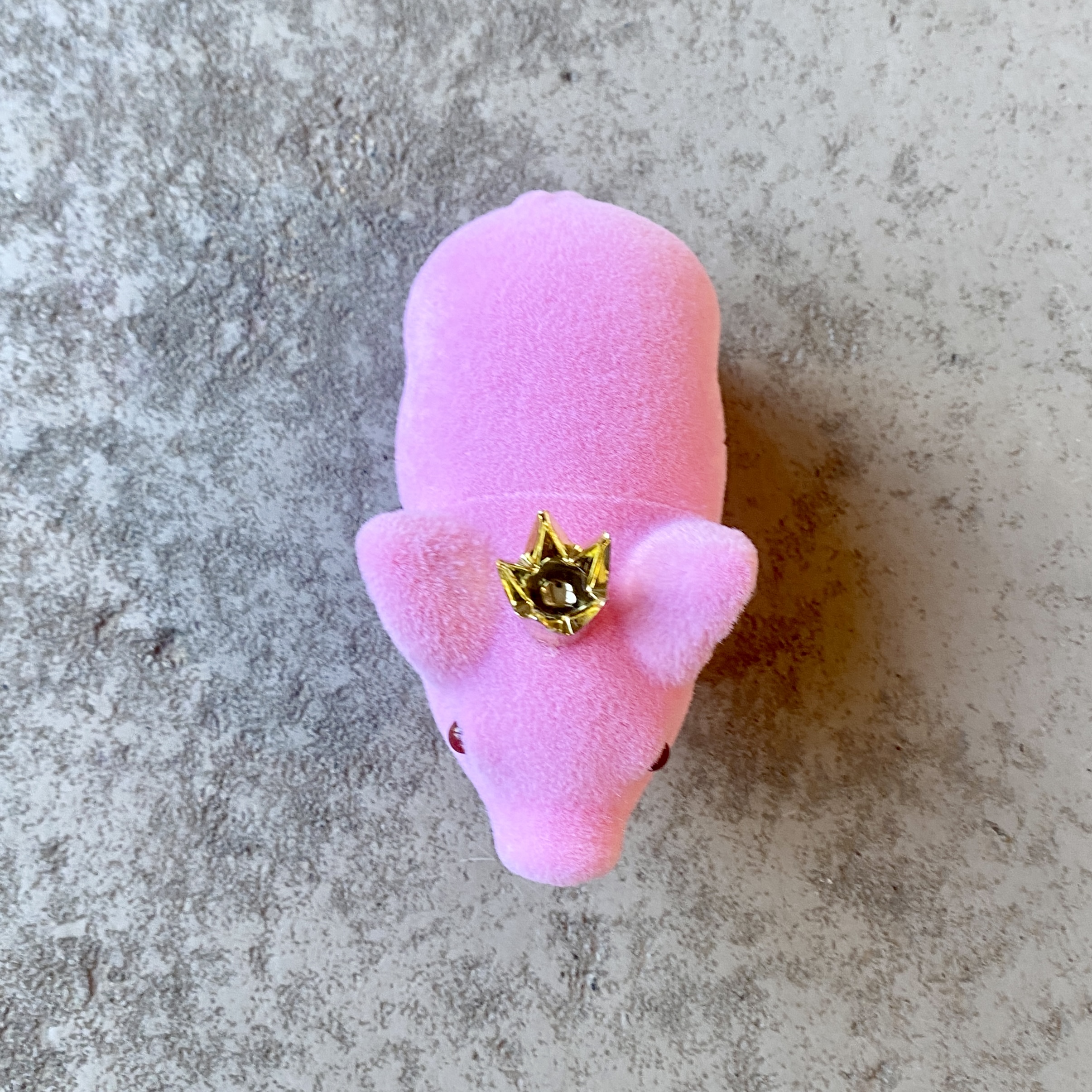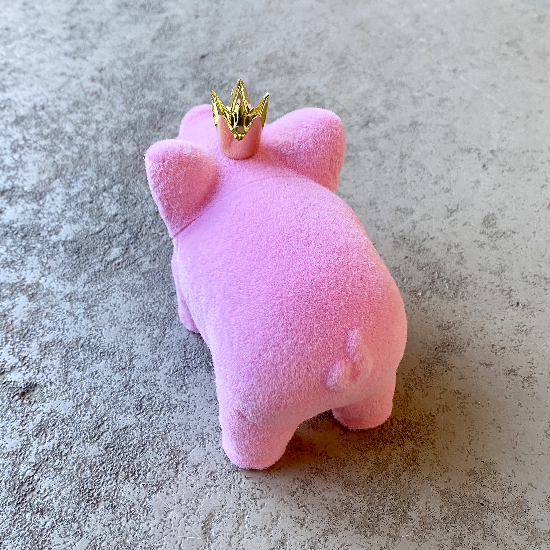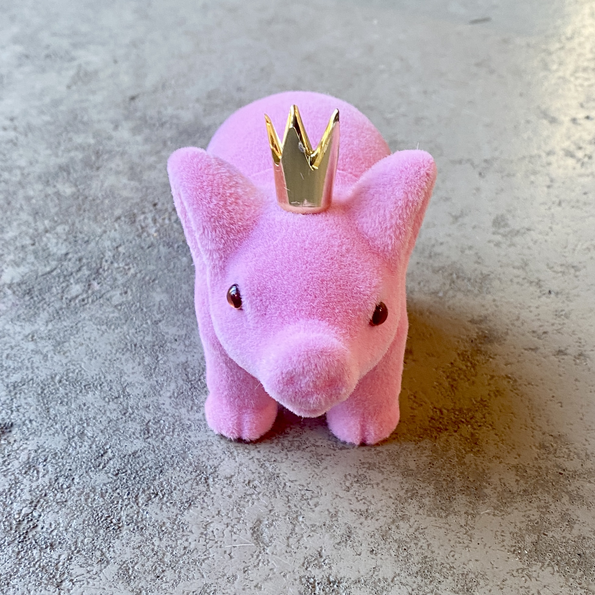 Süßes Glücksschwein mit Krone aus Kunststoff in Rosa.