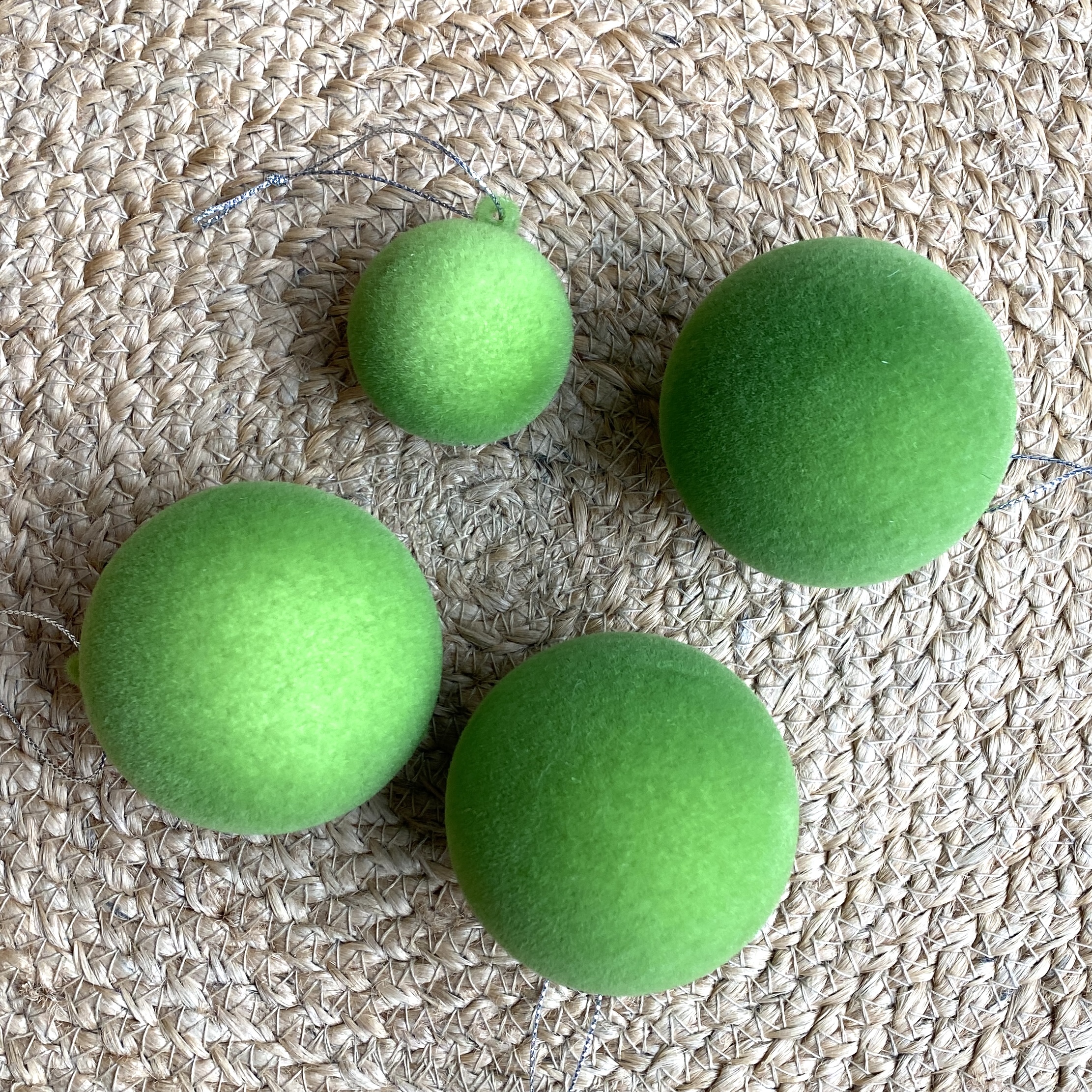 Eine leichte Baumkugel aus Kunststoff beflockt, samtig weich.